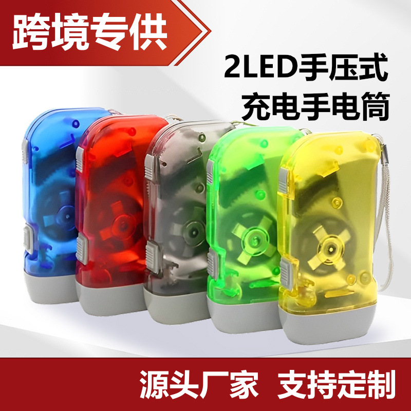 二灯自发电手电筒 手压发电手电批发塑料led手压电筒2灯摩擦电筒
