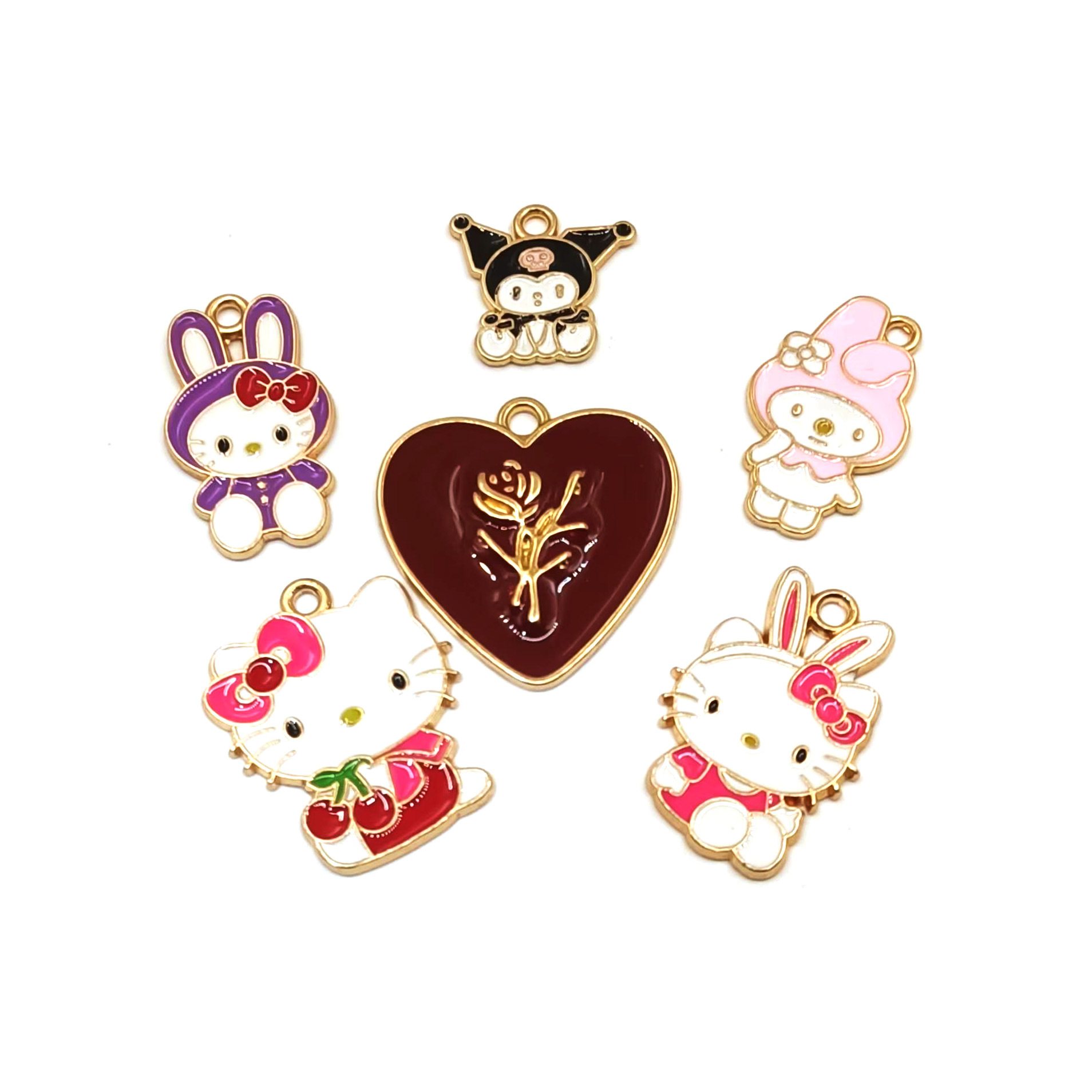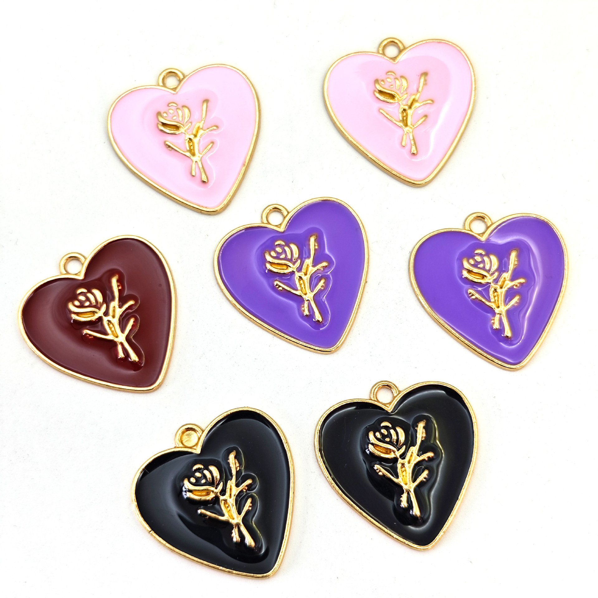 爱心玫瑰花郁金香合金滴油配件DIY饰品配饰钥匙扣手机链挂件