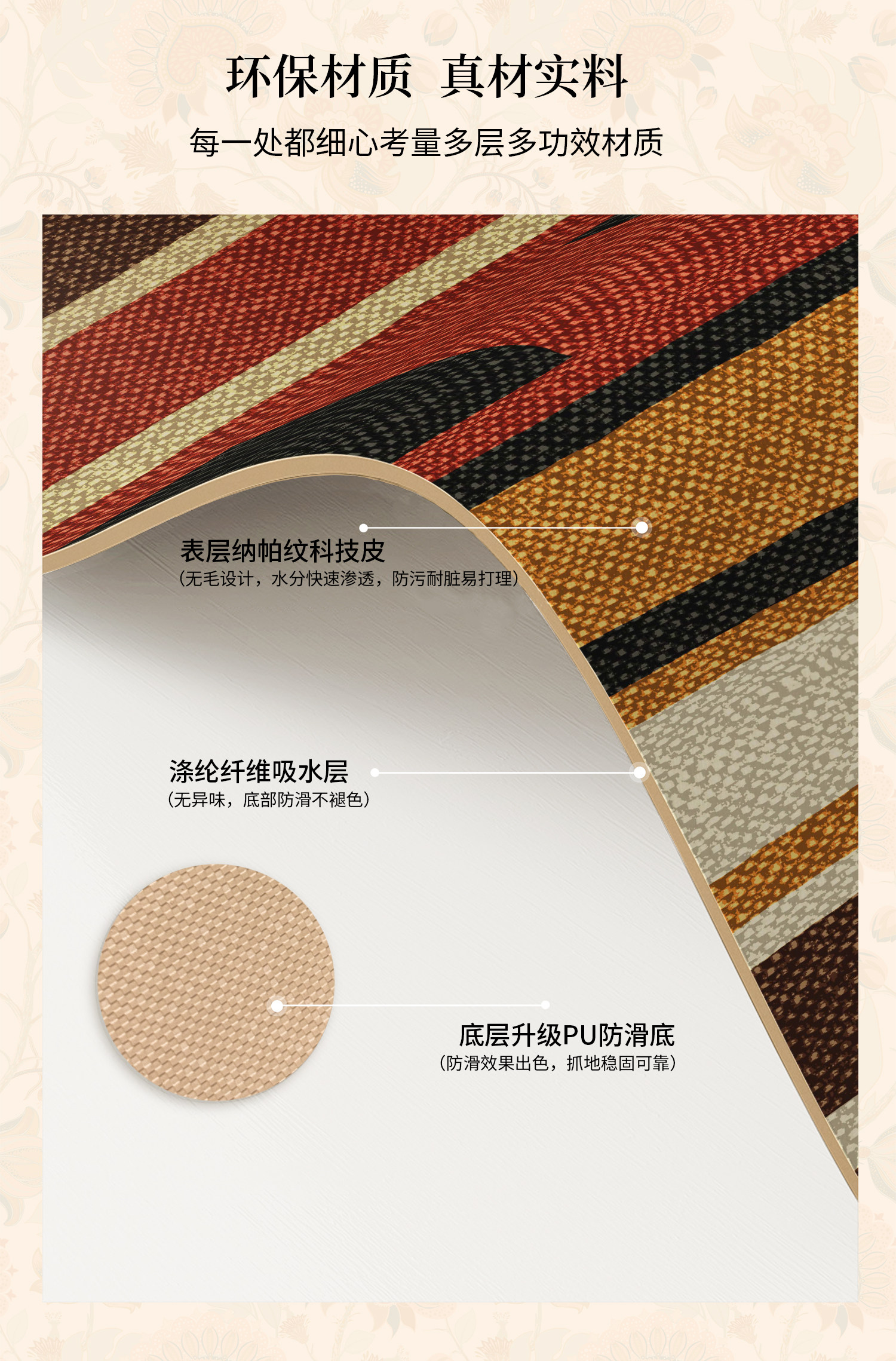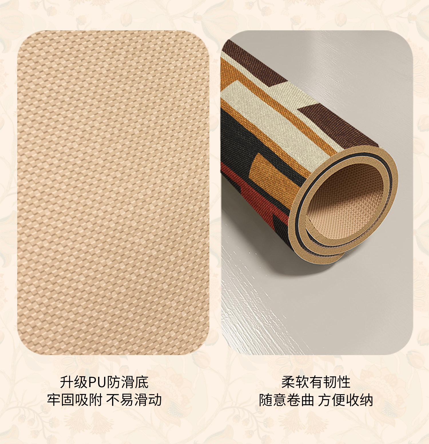 • 那集家居主营室内门垫,浴室垫,厨房垫,客卧地毯,室外镂空垫,瑜伽垫,儿童爬行垫,穆斯林朝拜地垫等各品类地垫。欢迎新老客户来店咨询洽谈。