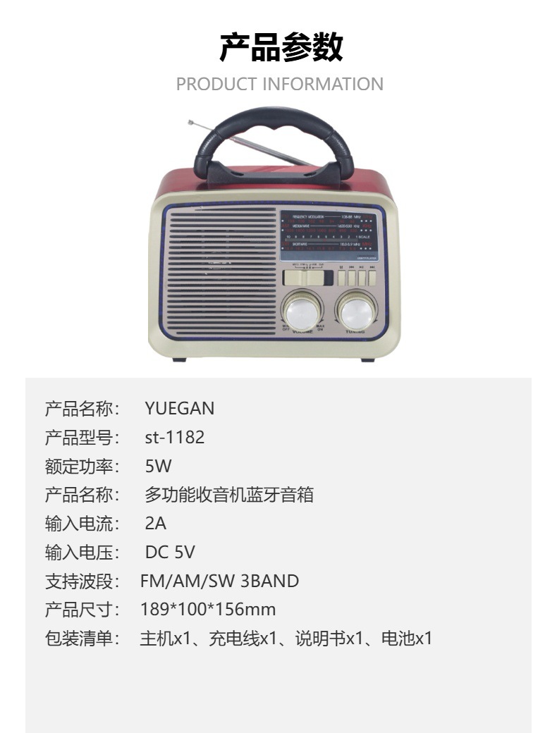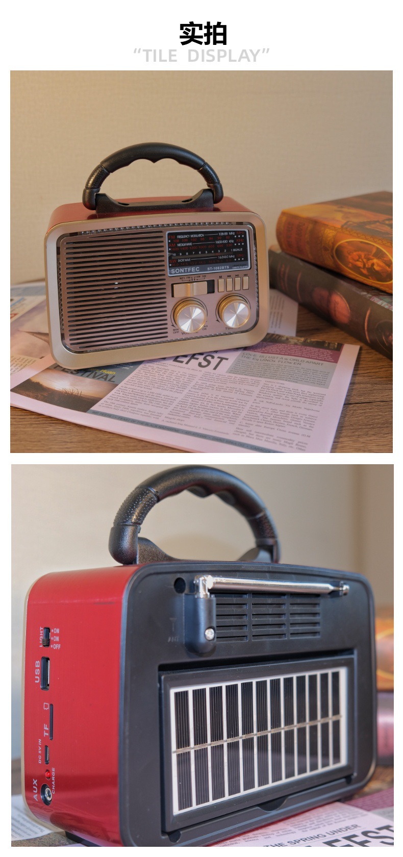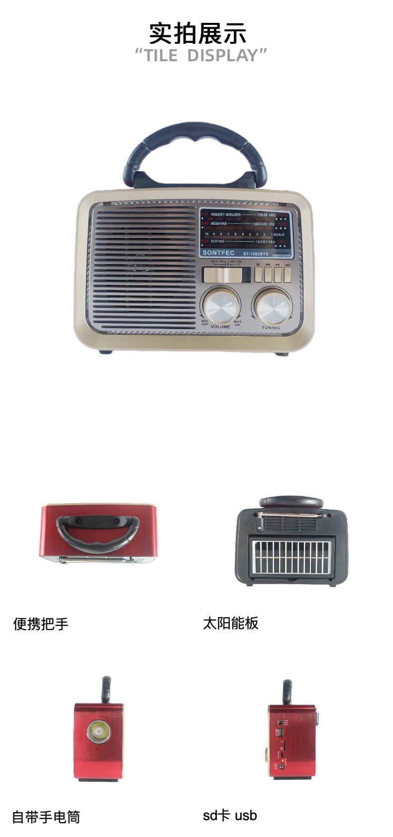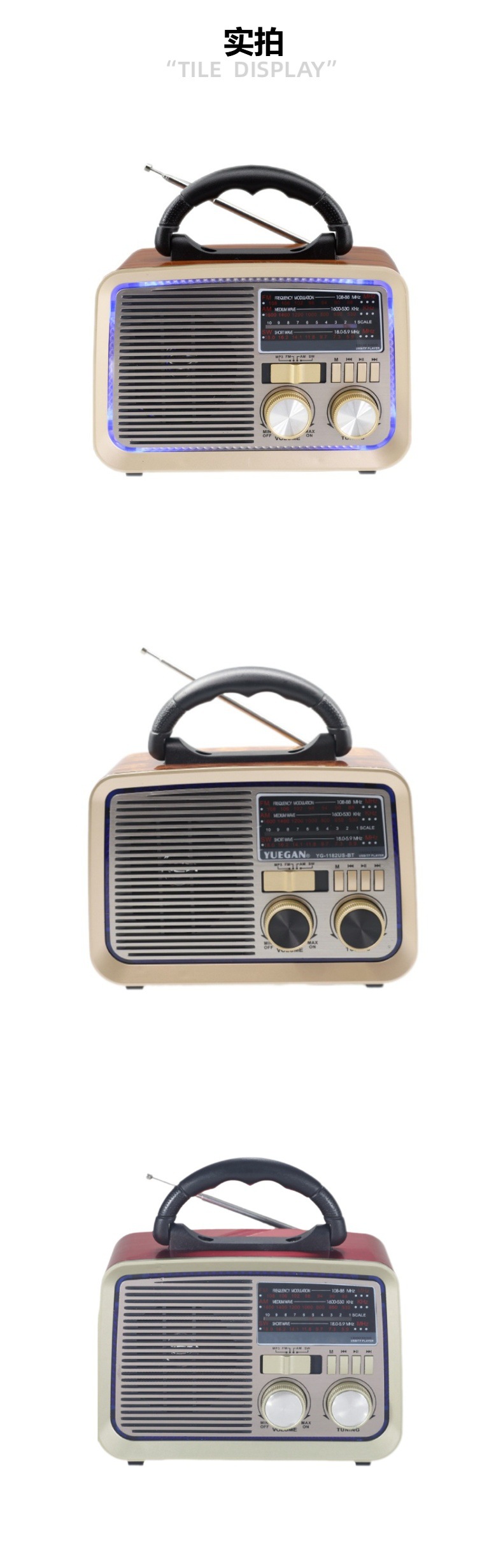 收音功能+蓝牙音响,USB/TF MP3