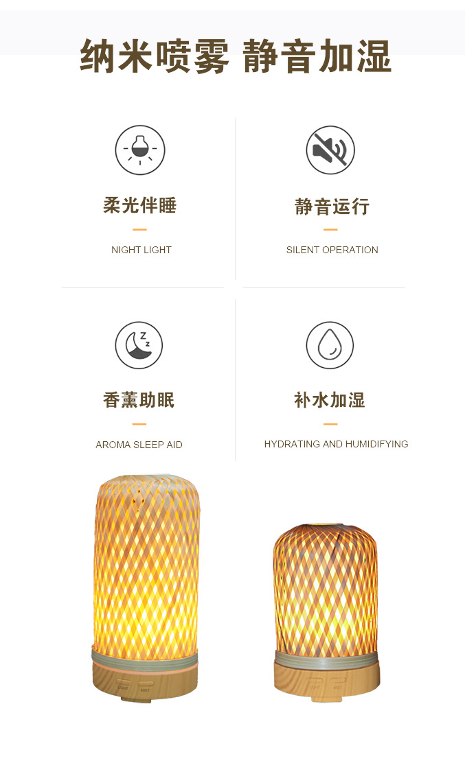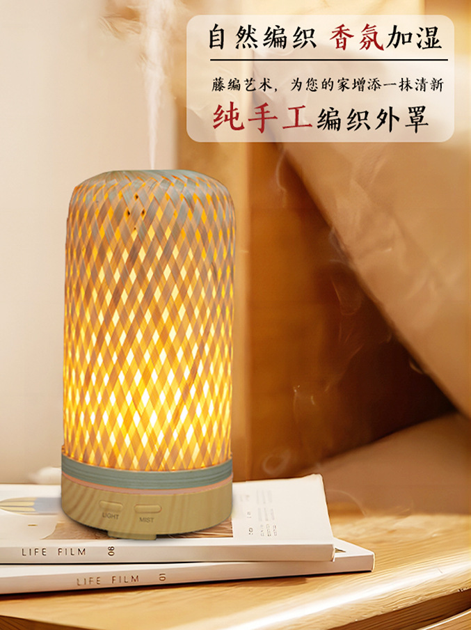 编织竹筐加湿器定制ODM卧室家用办公室小夜灯氛围灯OEM空气加湿器 English | 投诉