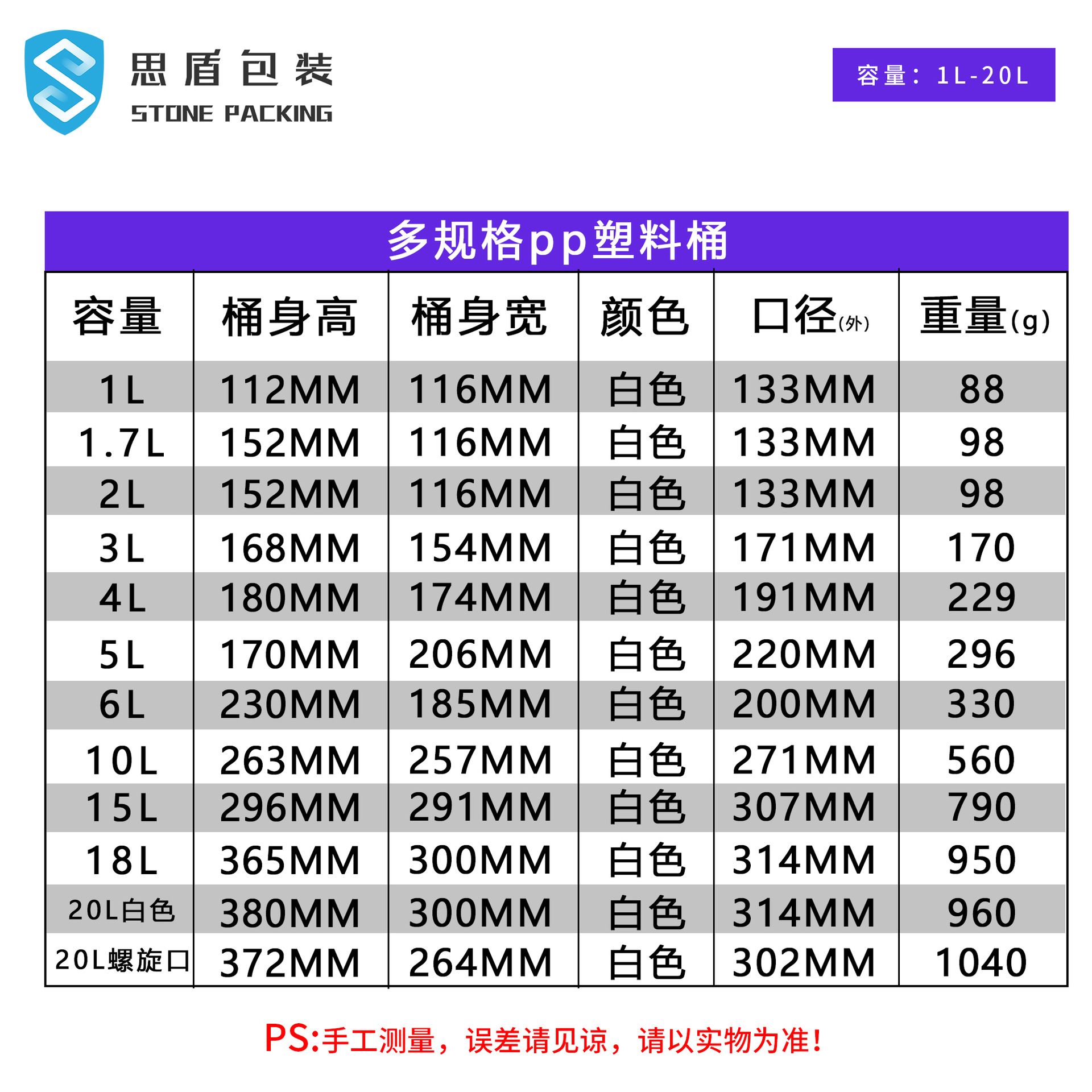 | 10L白色 | ¥891 | 9999995个可售 |