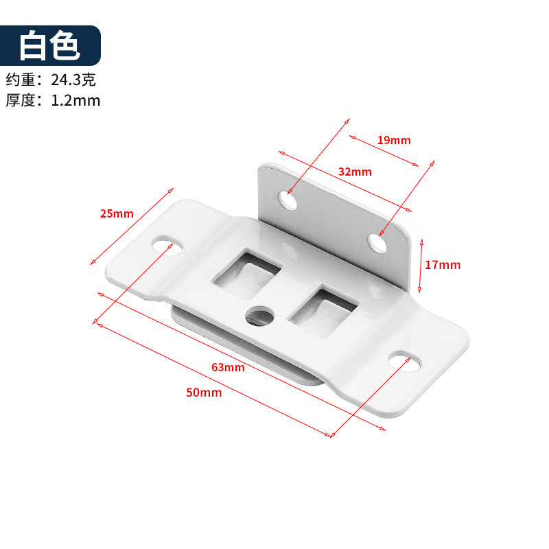材质: 铁 品牌: 海帝博斯 货号: TF-176 名称: 二合一插片 型号: TF-176 规格: 黑色【二合一插片】,白色【二合一插片】 适用范围: 家具板材 风格: 现代简约 工艺: 喷粉 重量: 0.5 kg/个 装箱信息:长宽高:10X10X10cm 装箱重量: 1KG 装箱数量:5pcs