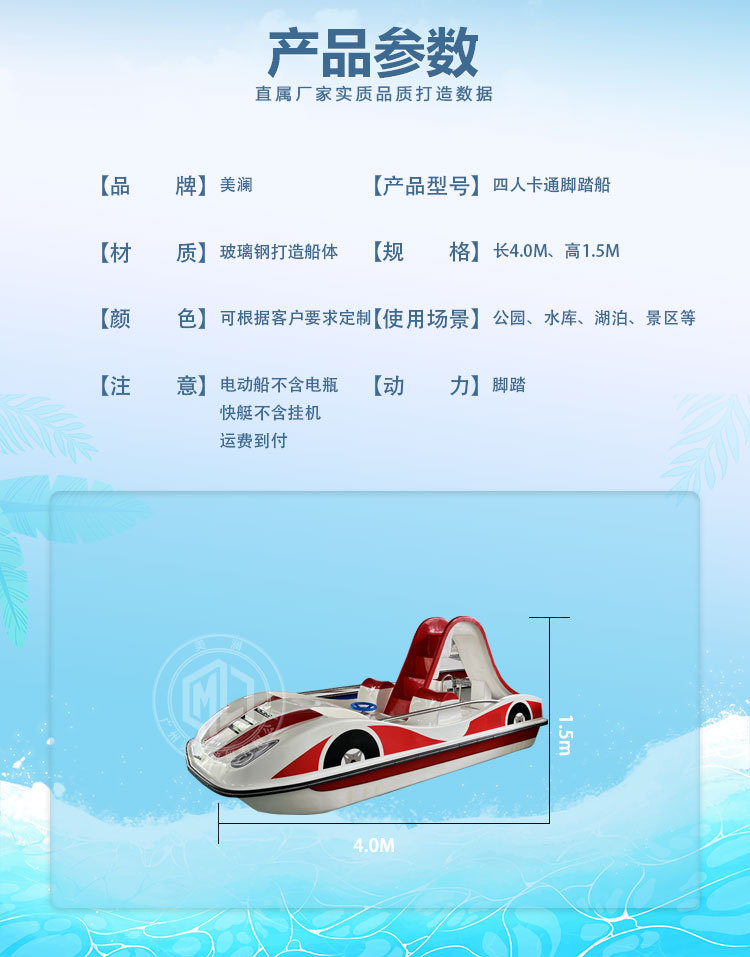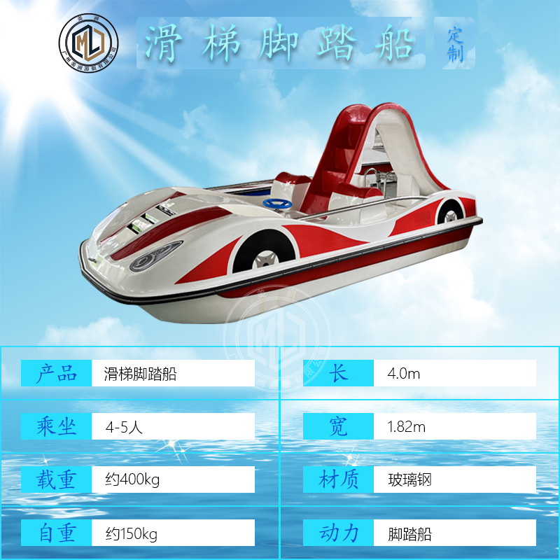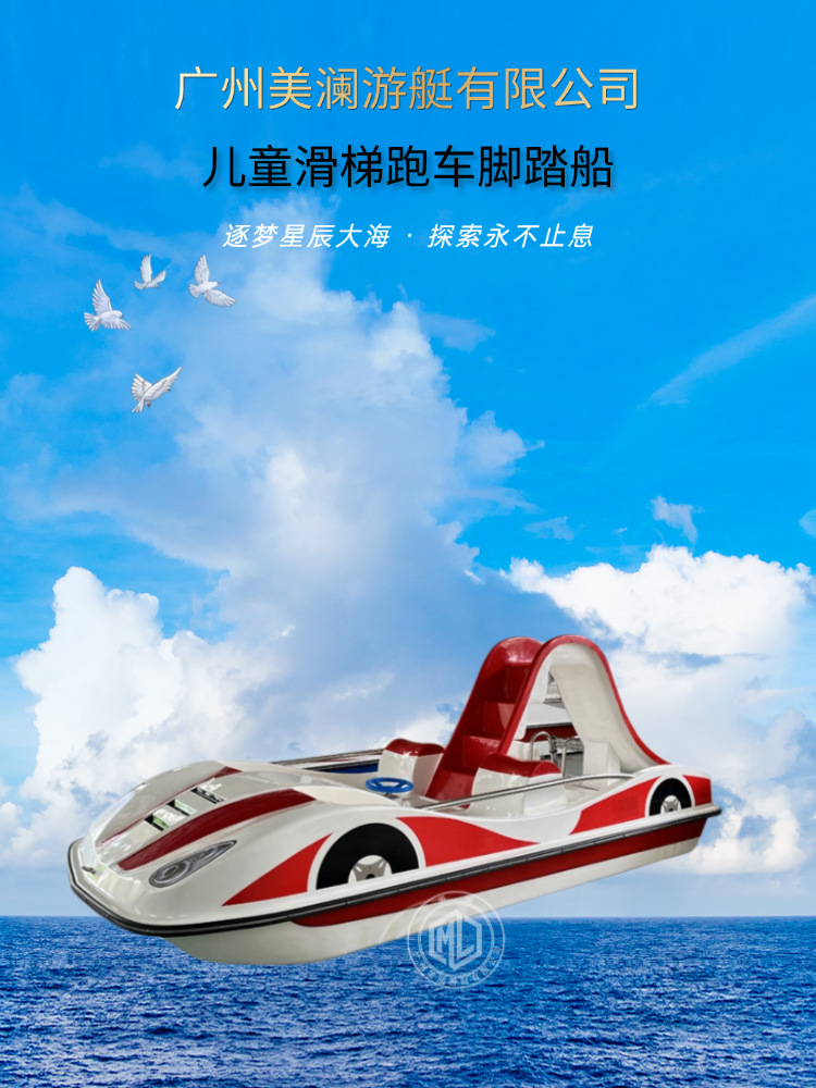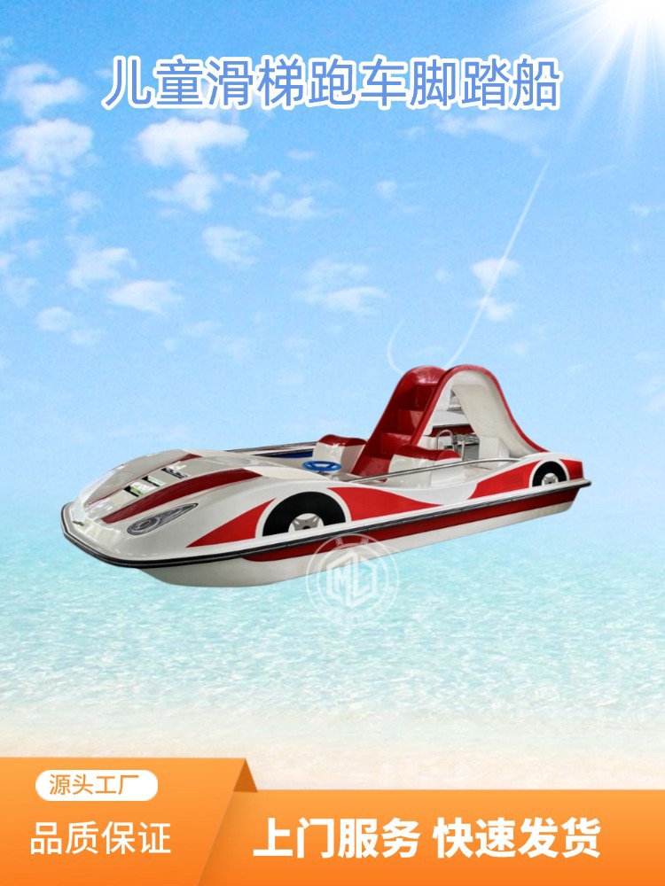 水上乐园网红跑车脚踏船湖泊儿童滑梯娱乐脚踏船电动船游乐船定制 投诉