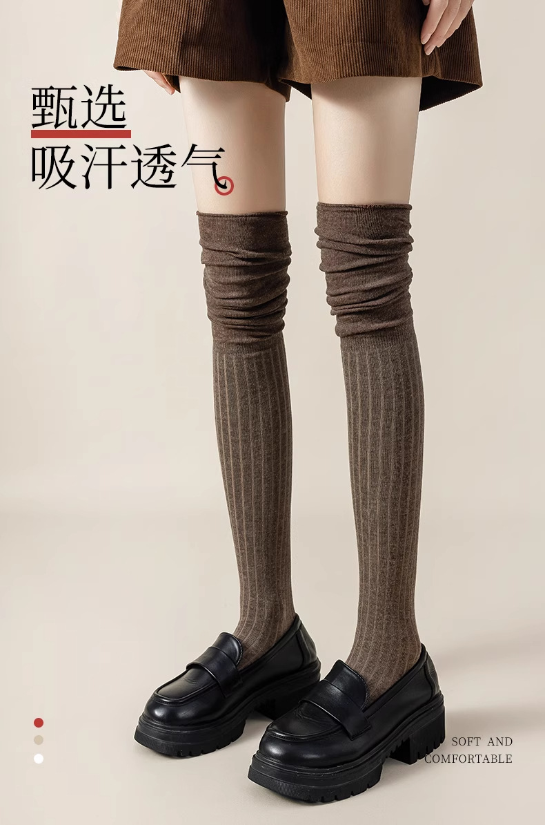 面料名称: 棉 功能: 抗菌,吸汗 图案: 纯色 适用性别: 女 筒高: 过膝袜 风格: 日系 重量: 0.1 kg/件