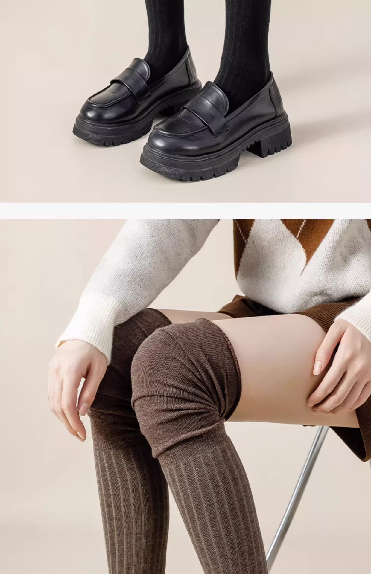 长靴过膝袜子女春秋款美拉德堆堆袜高筒大腿袜夏季防滑白色长筒袜 投诉