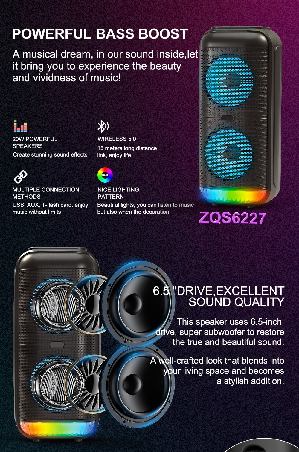 sing-e ZQS6227爆款手提小音响户外卡拉OK麦克风一体炫彩灯大音响
