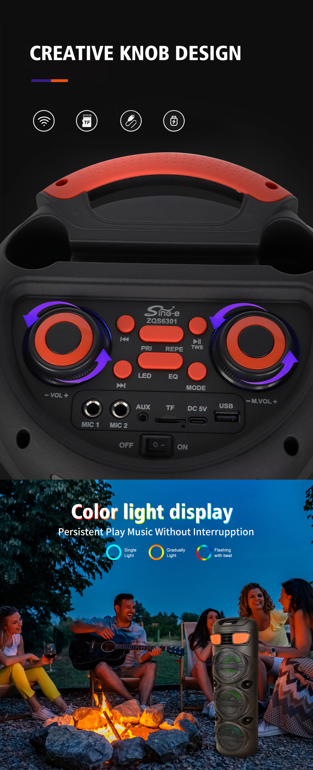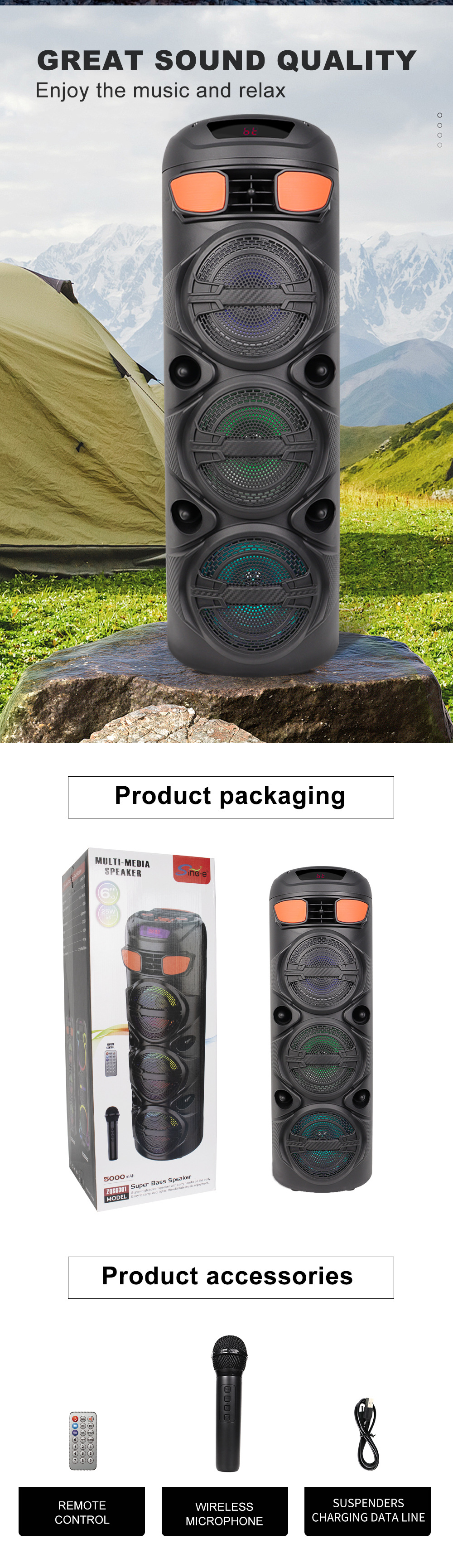 Sing-e ZQS6301多功能家用户外无线蓝牙音箱带麦克风收音机可插TF