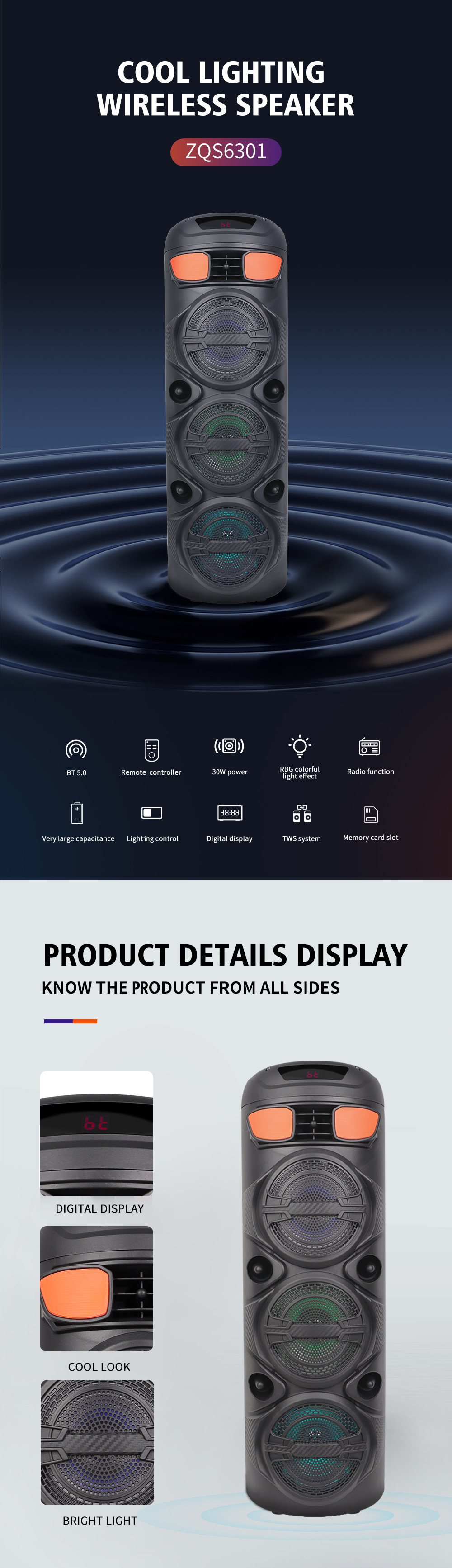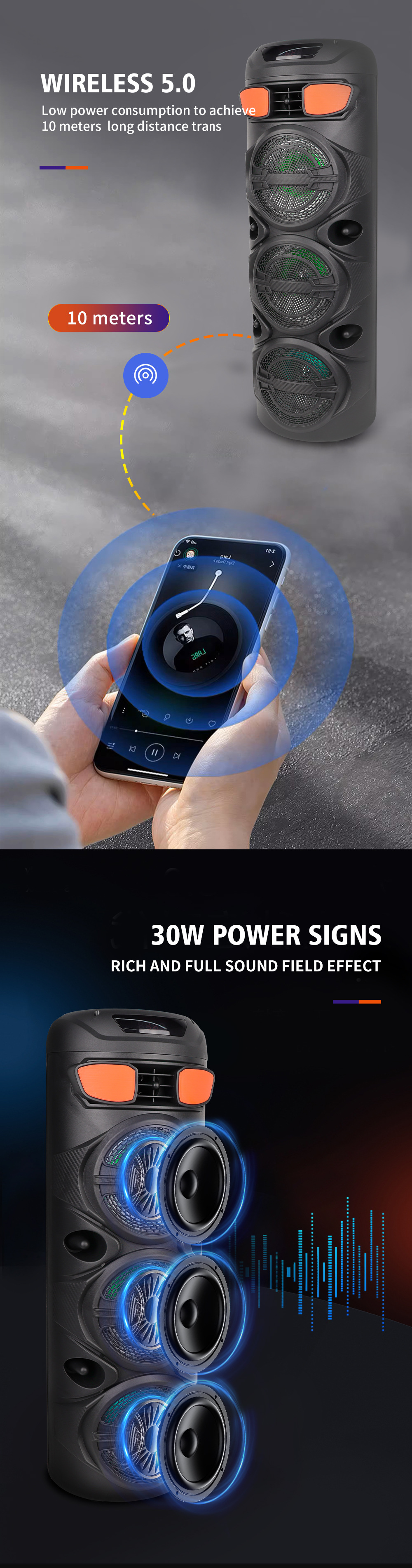 品牌: SING-E 上市时间: 2024 连接方式: 蓝牙连接 频响范围: 60Hz-15KHz 信噪比: ≥75dB 喇叭数: 2 有效距离: 15米 箱体材质: 塑料 外观尺寸: 268x258x710mm 售后服务: 咨询业务 重量: 0.5 kg/件 装箱信息:长宽高:10X10X10cm 装箱重量: 1KG 装箱数量:5pcs