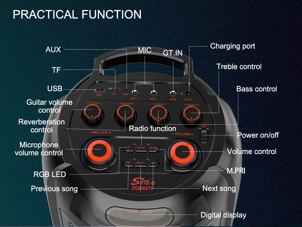 Sing-e ZQS8270户外广场舞演出活动蓝牙音箱带无线麦克FM USB功能