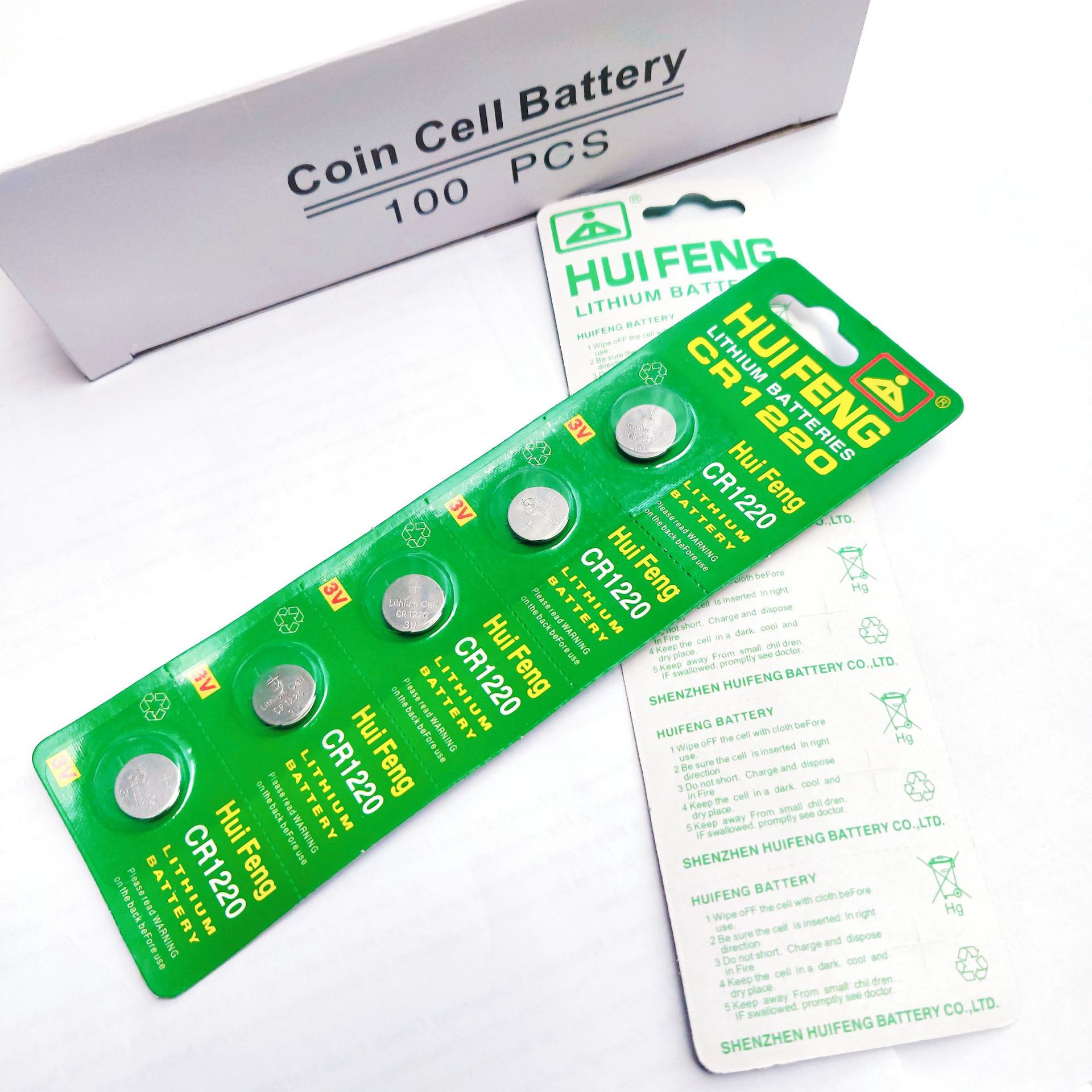 3V纽扣电池CR1220 927电池卡装 会丰吊卡 环保锂锰电池卡/盒100粒