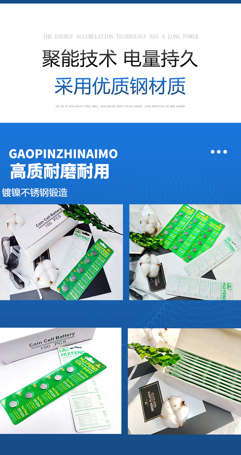 3V纽扣电池CR1220 927电池卡装 会丰吊卡 环保锂锰电池卡/盒100粒 投诉