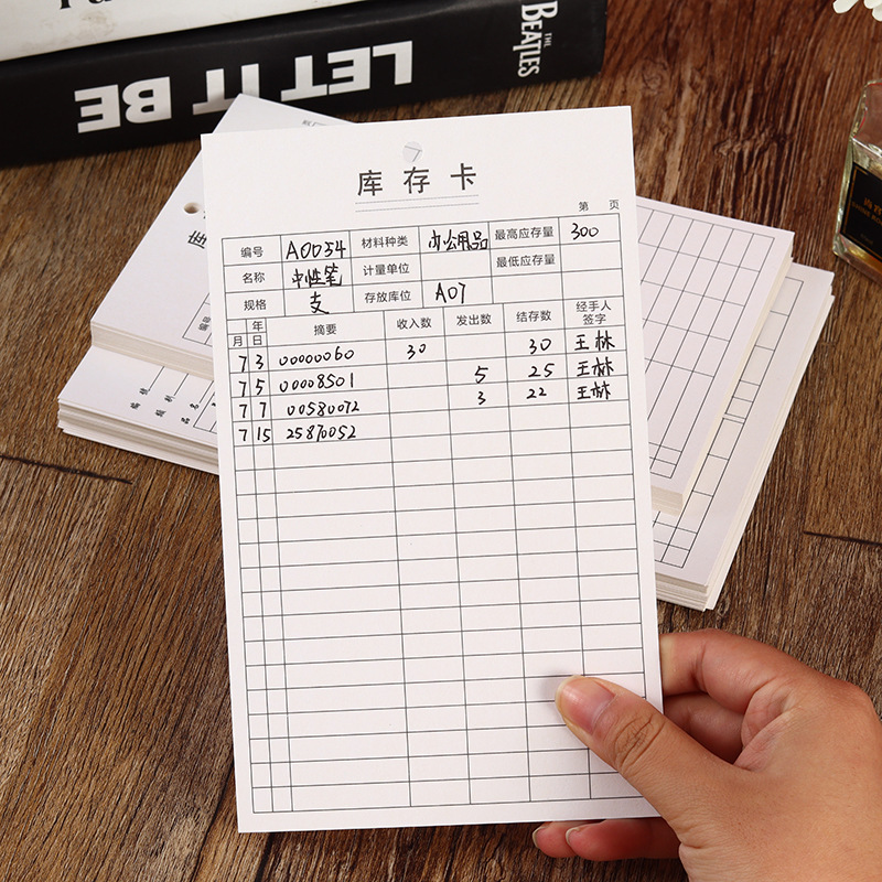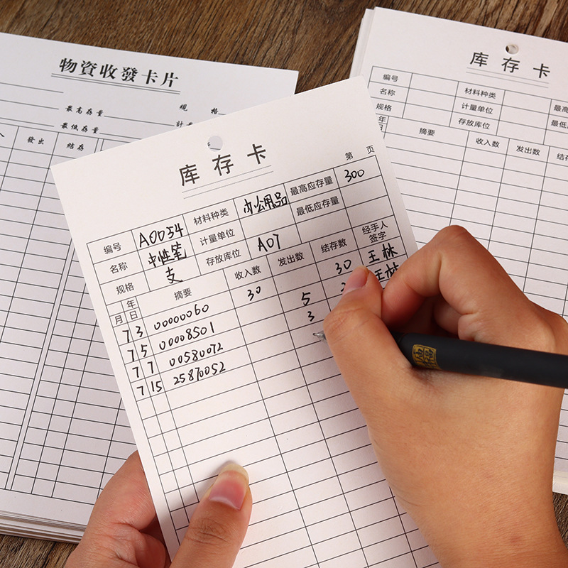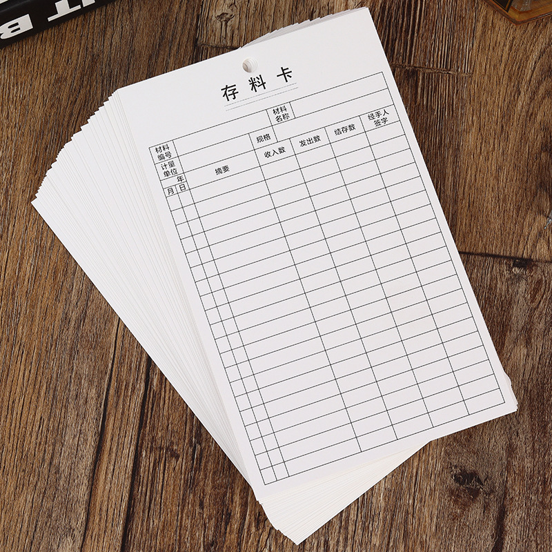 现货加厚白卡铜板纸双面印刷物资收发卡库存卡存料卡打孔定zhi 投诉