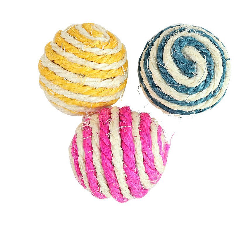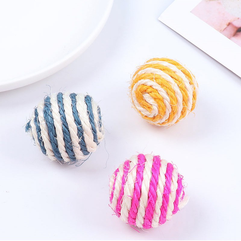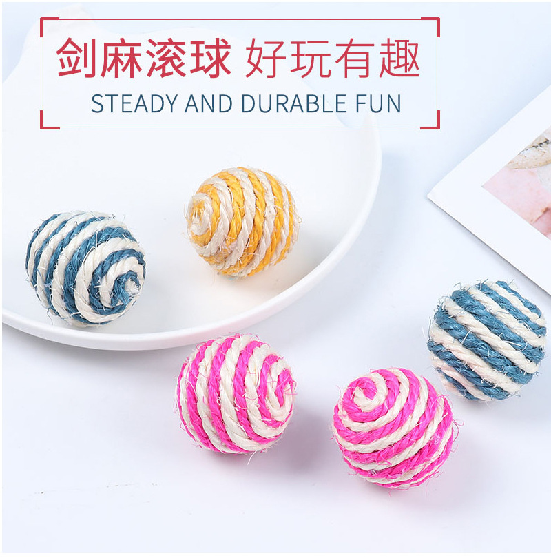 宠物用品亚马逊爆款4cm带响声剑麻球 互动逗猫球耐抓猫玩具球现货