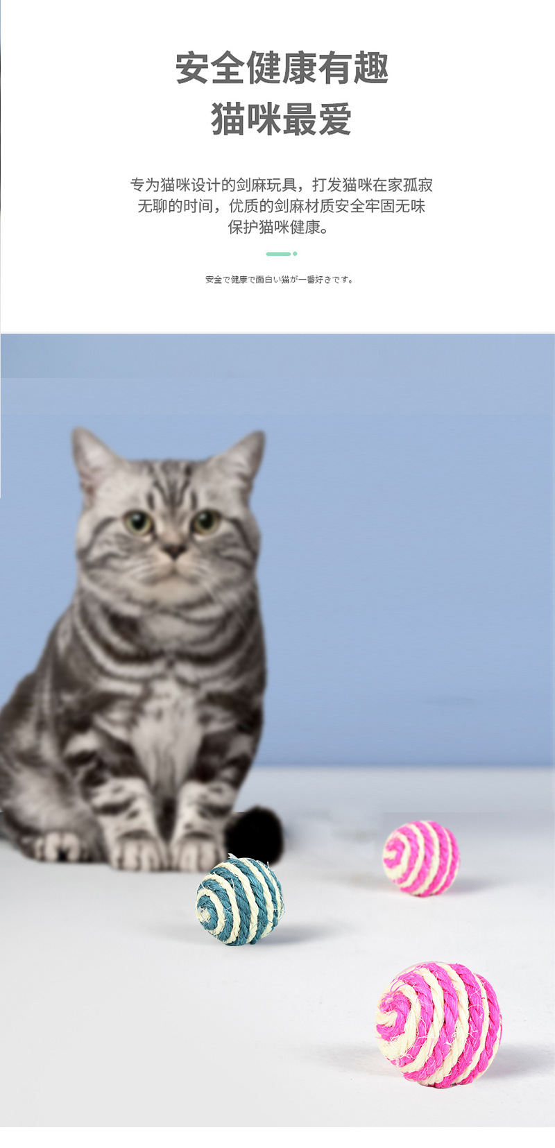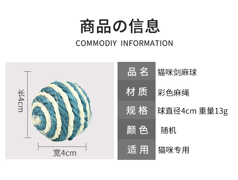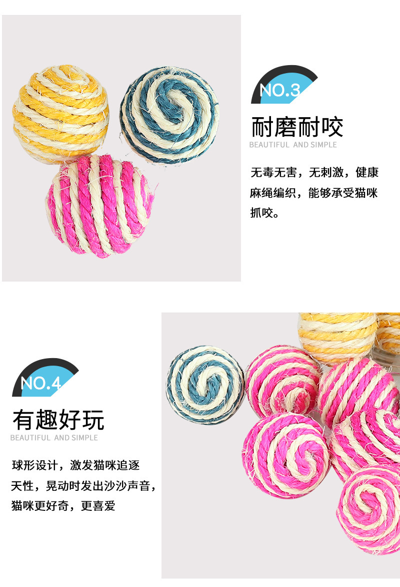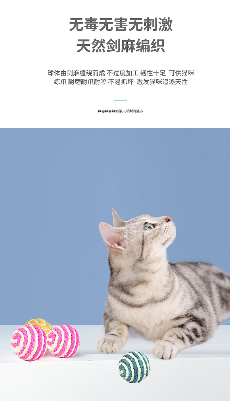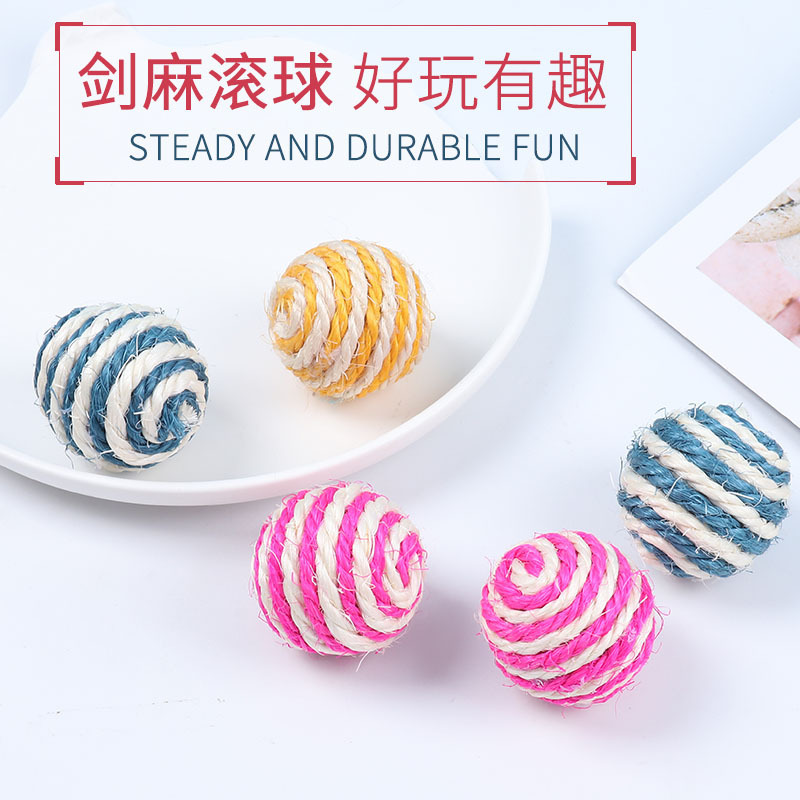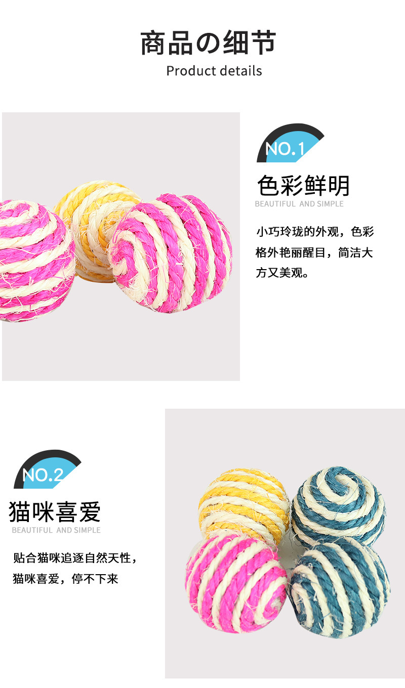 宠物用品亚马逊爆款4cm带响声剑麻球 互动逗猫球耐抓猫玩具球现货 English | 投诉