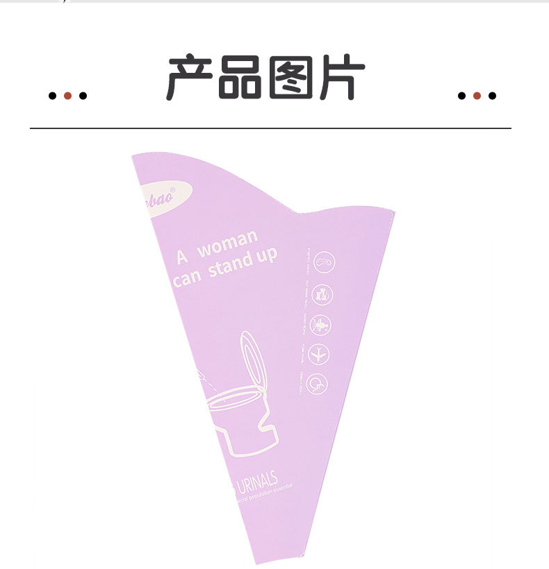 品牌: 嘘乐宝 规格: 10个/包 货号: 001 产品类别: 折叠椅 主要销售地区: 欧洲,南美,东南亚,北美,东北亚 有可授权的自有品牌: 是 是否跨境出口专供货源: 是 一次性折叠小便器: 10个/包 重量: 1.0 kg/套 装箱信息:长宽高:10X10X10cm 装箱重量: 1KG 装箱数量:5pcs