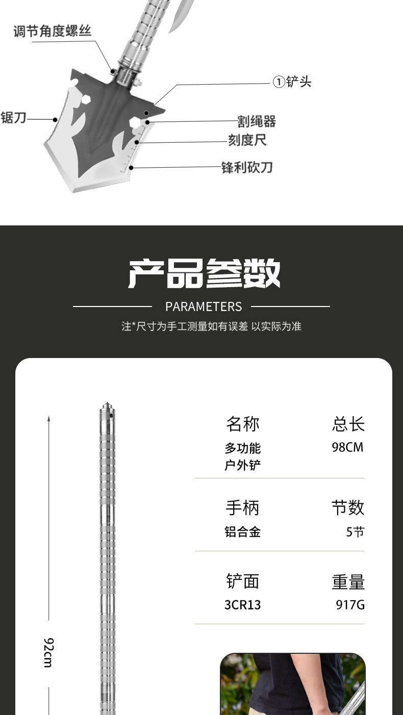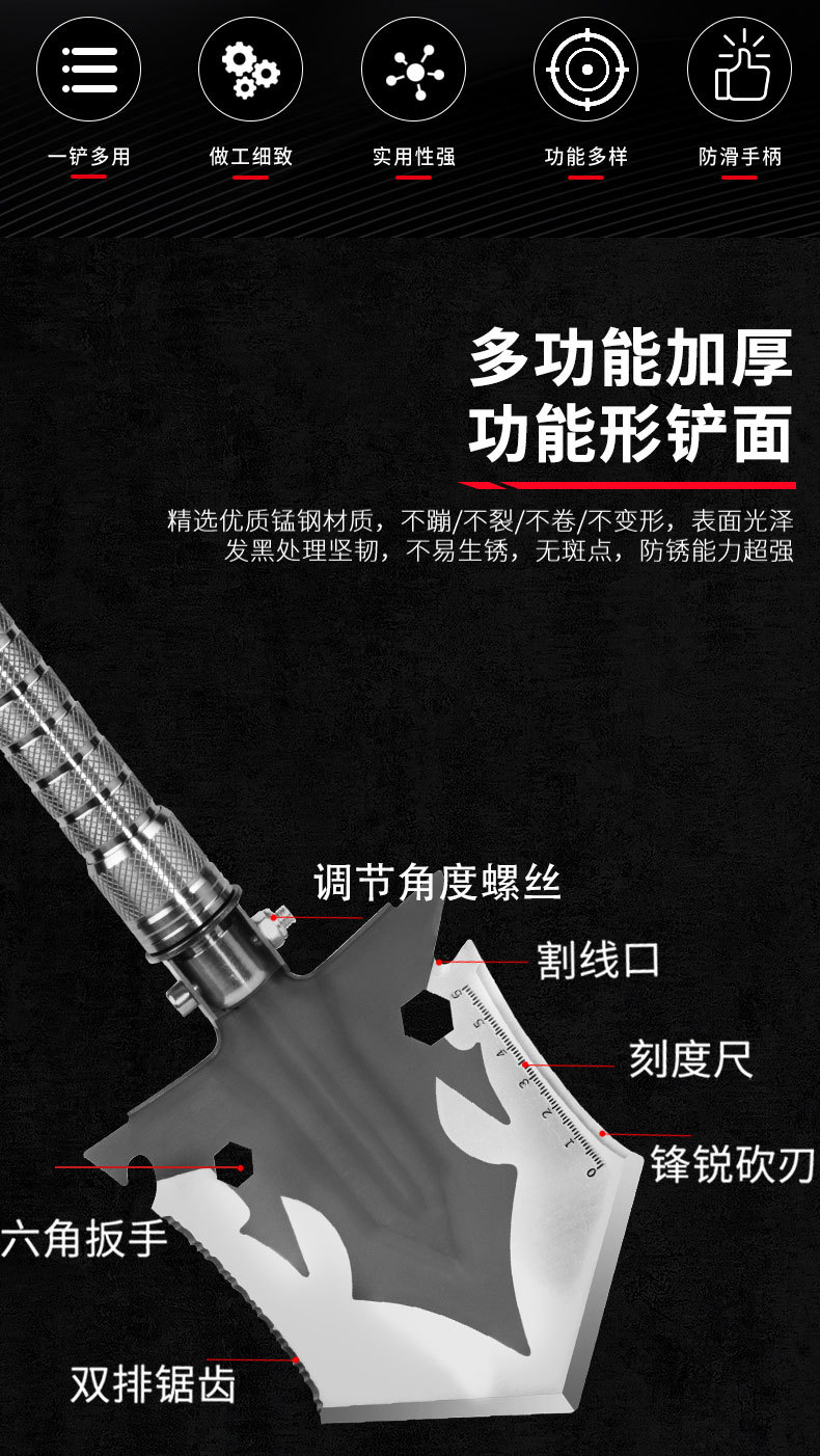 户外兵工铲多功能折叠便携式铲子野营钓鱼挖土工兵铲车载求生装备 投诉