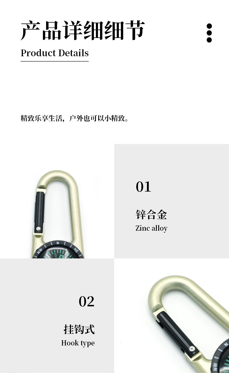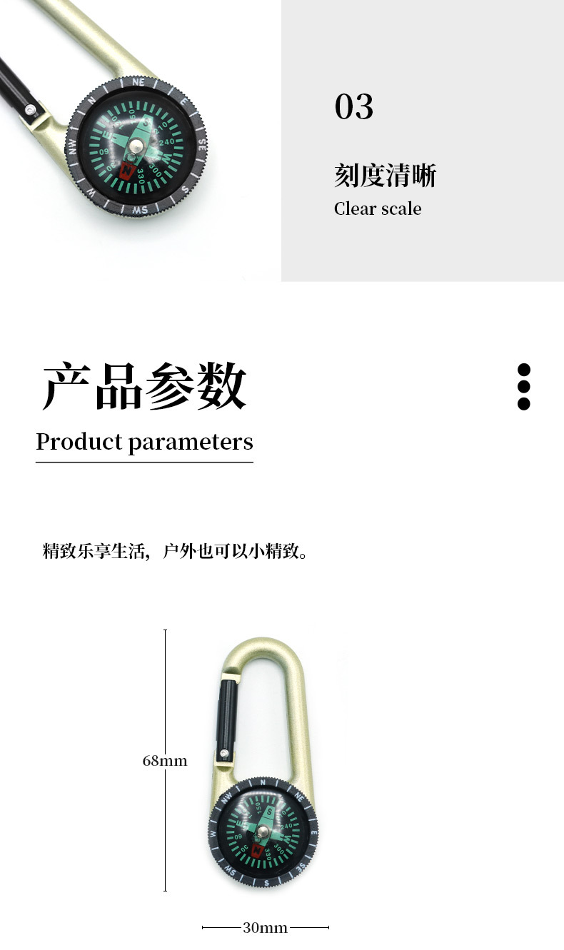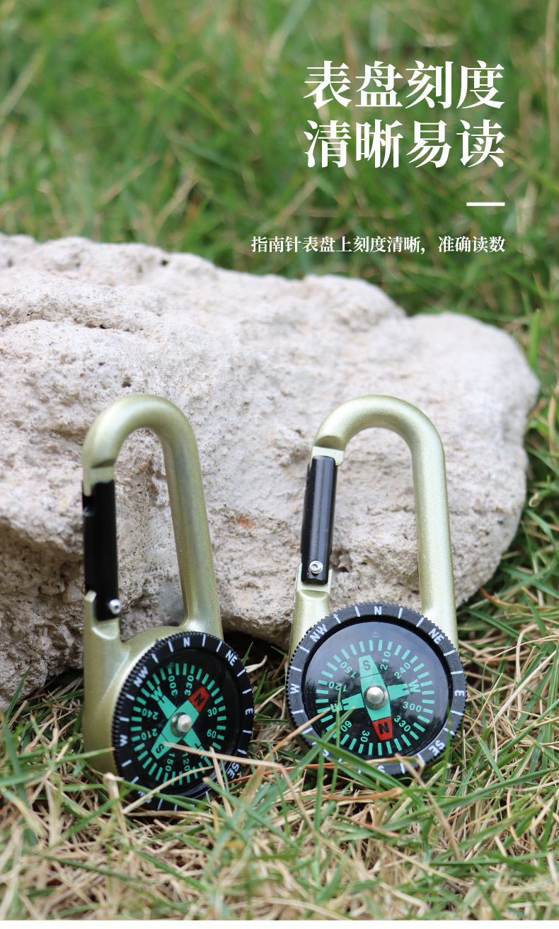 户外战术求生装备多功能指南针指北针合金登山扣钥匙扣罗盘快挂 投诉