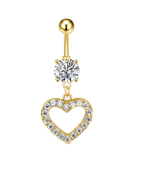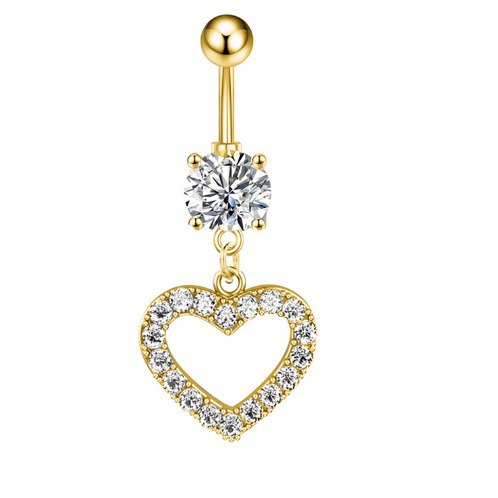 跨境电商亚马逊热销镂空心形锆石肚脐环不锈钢肚脐钉穿刺饰品