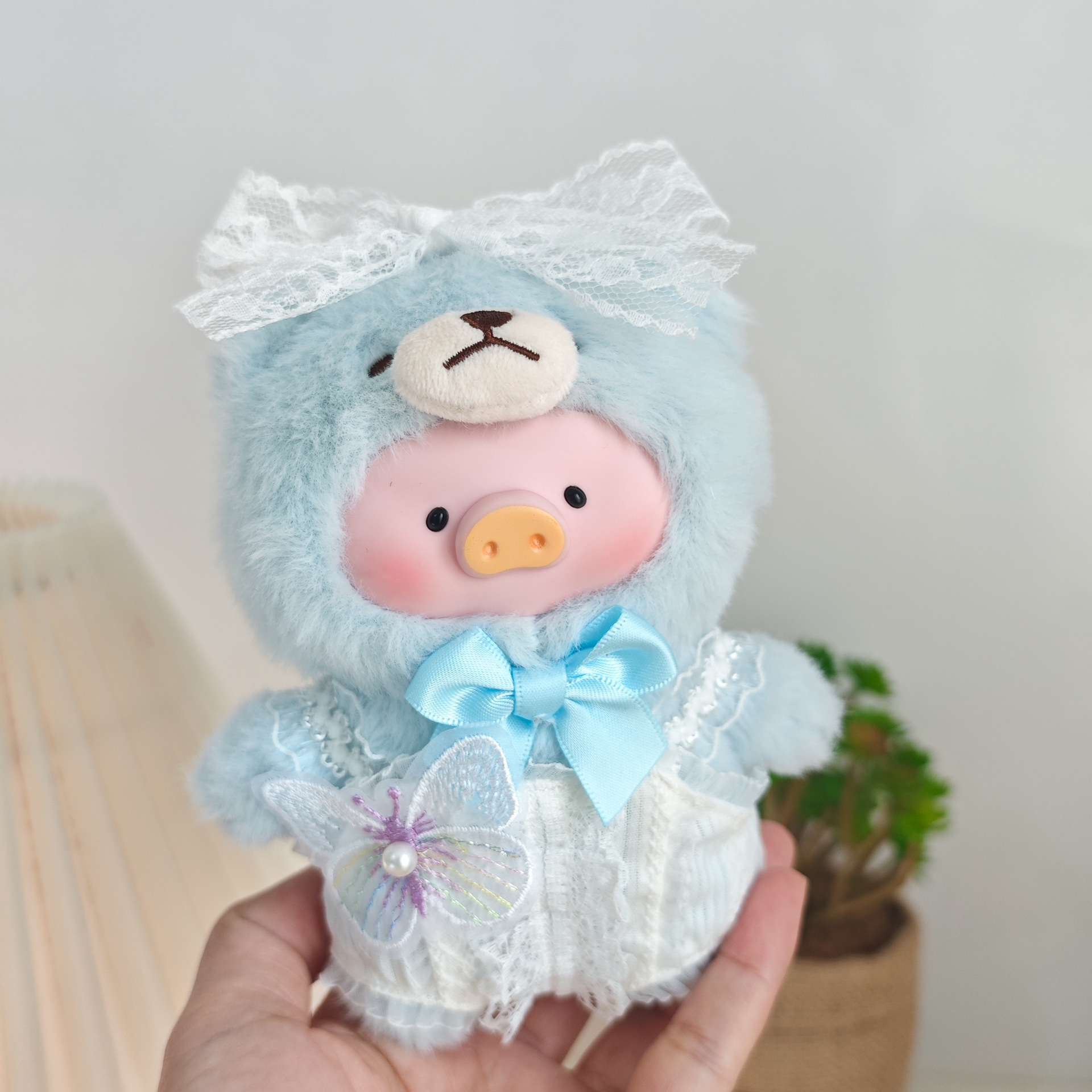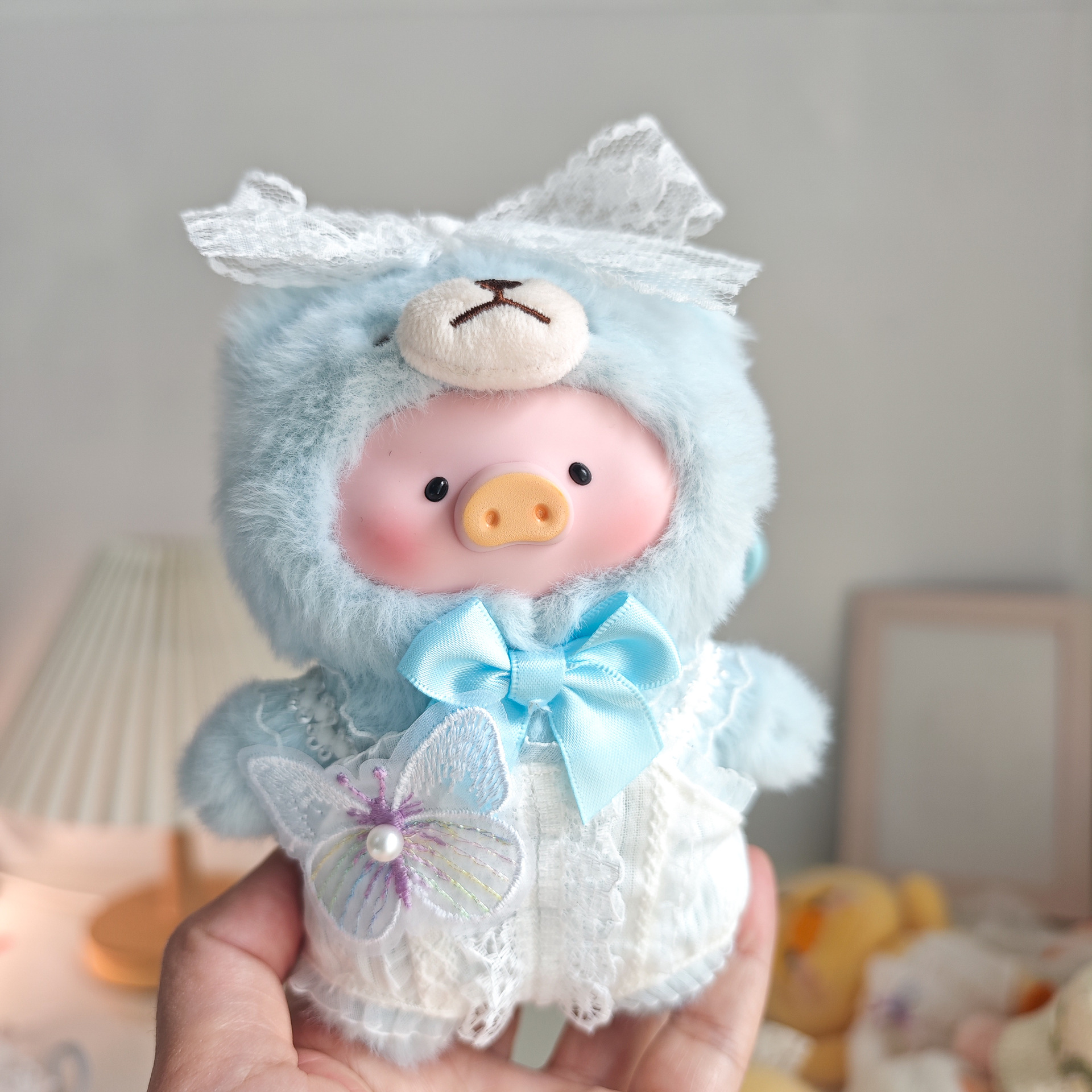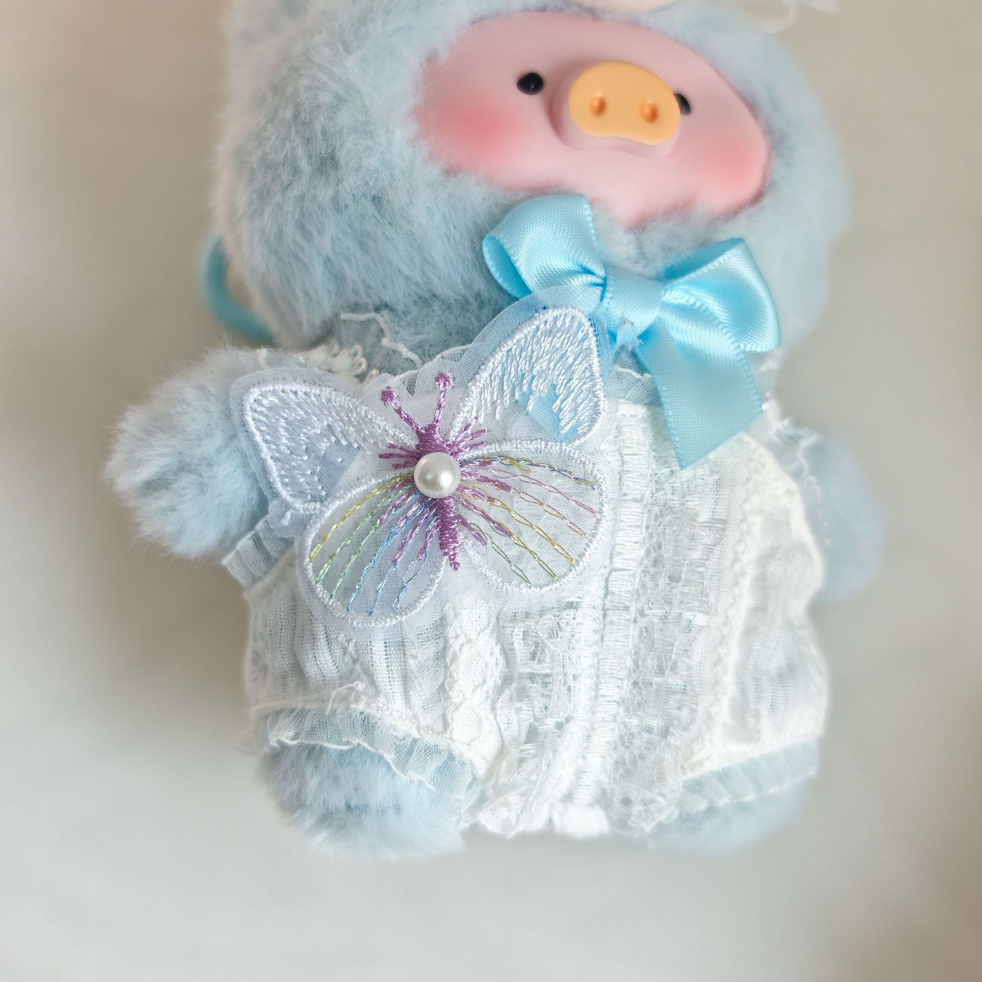 娃衣服LuLu猪挂件娃衣搪胶盲盒清凉夏季白色蝴蝶结蕾丝花边连体衣 English | 投诉