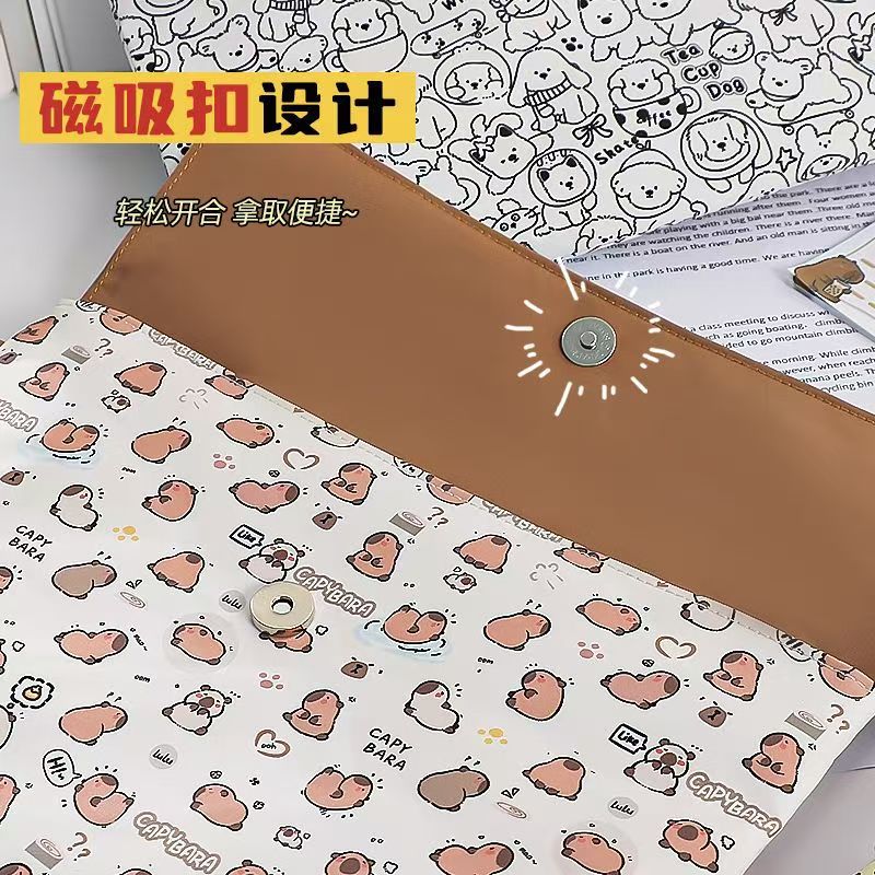 新款卡皮巴拉文件袋小学生卡通高颜值大容量拉链式试卷收纳袋 English | 投诉