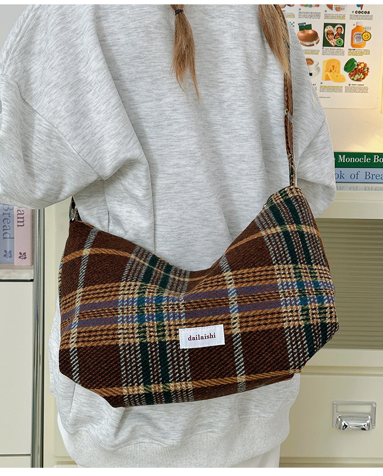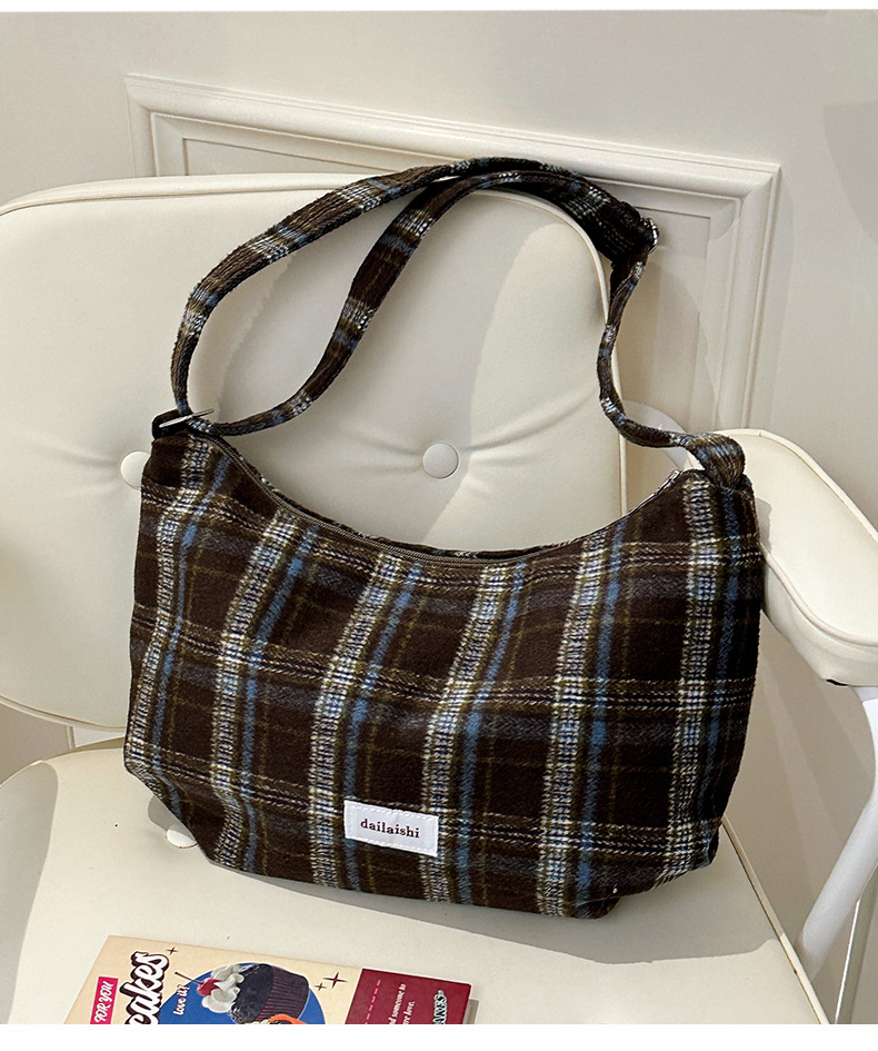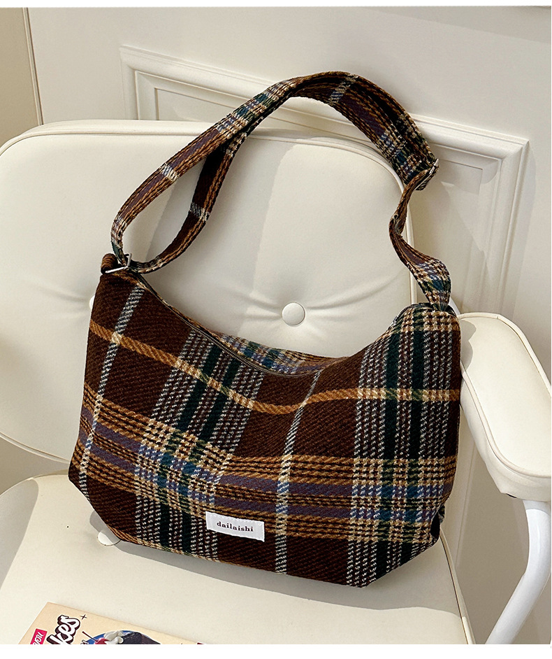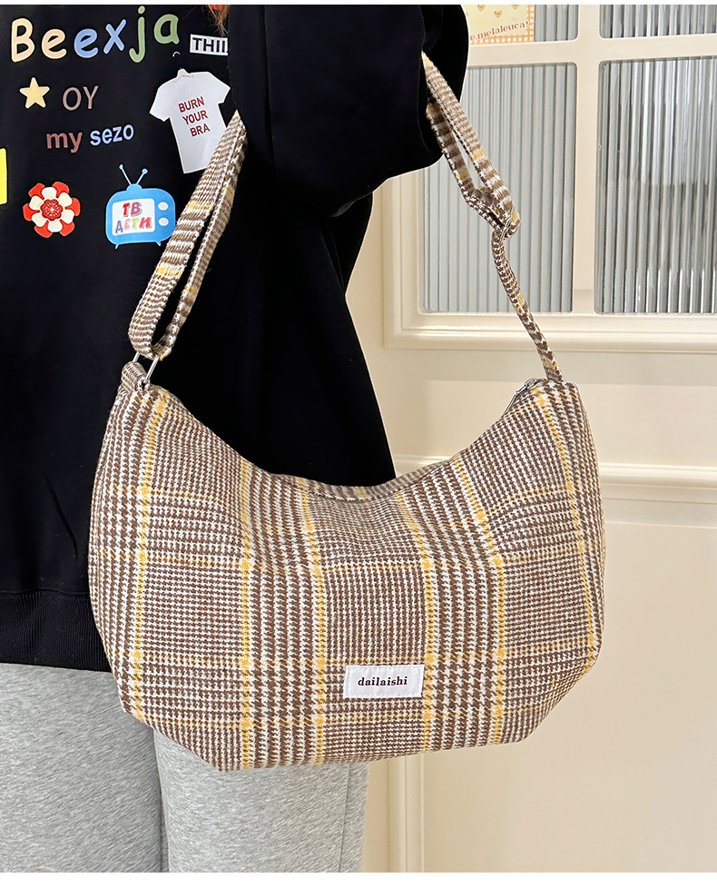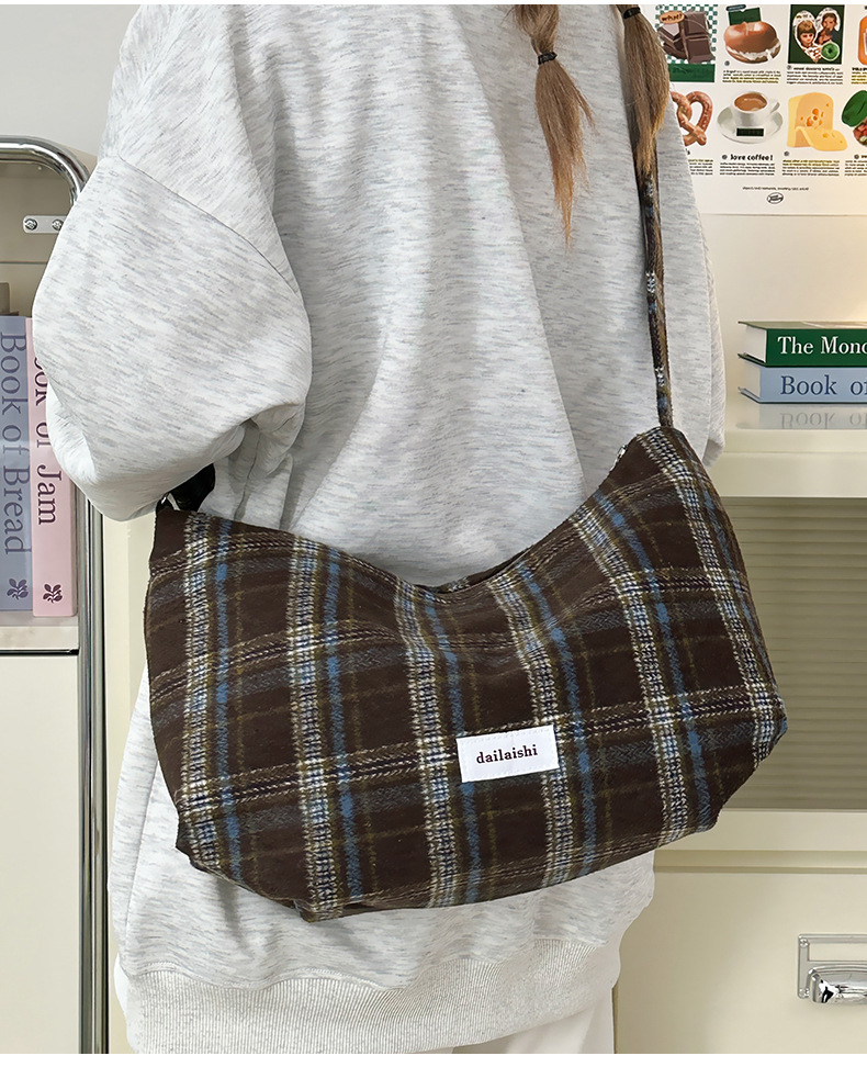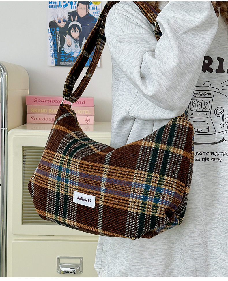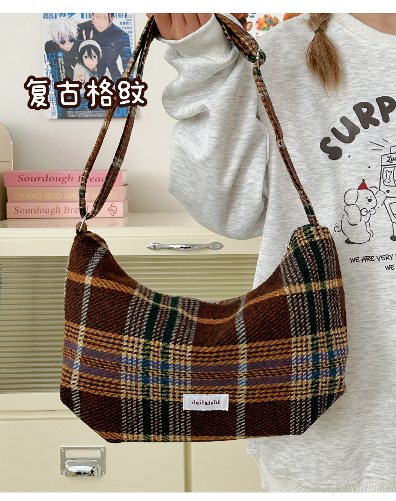 时尚韩版格子斜挎包个性百搭通勤饺子包大容量复古文艺学生单肩包 English | 投诉