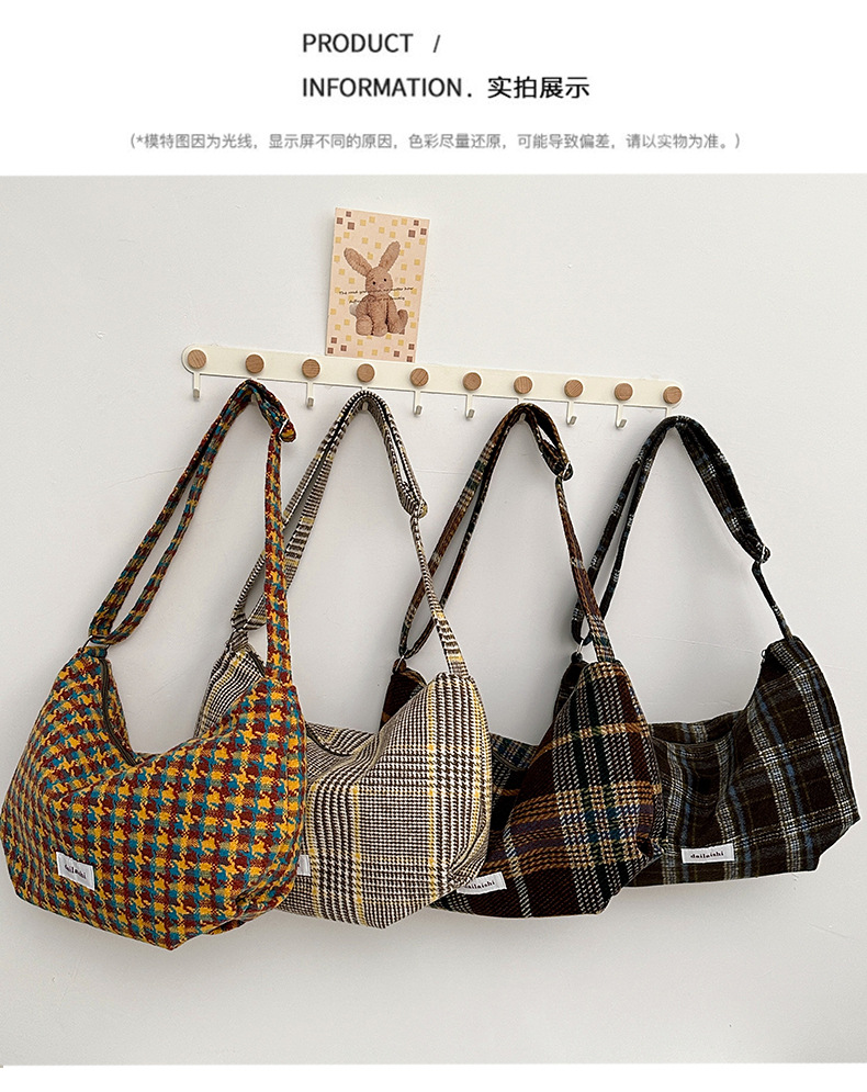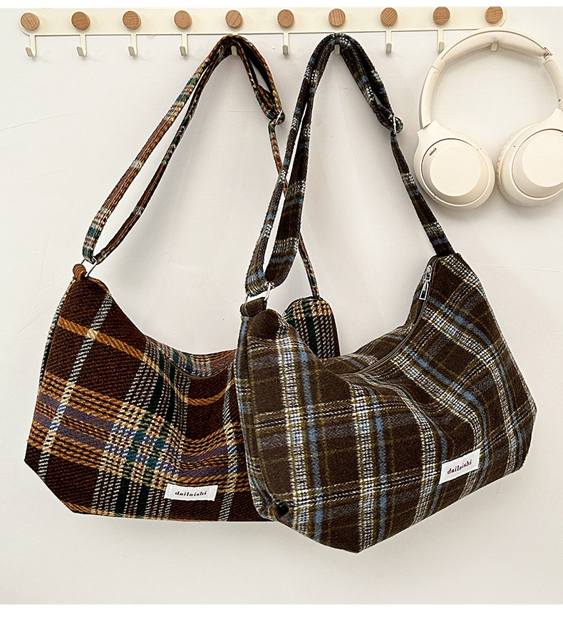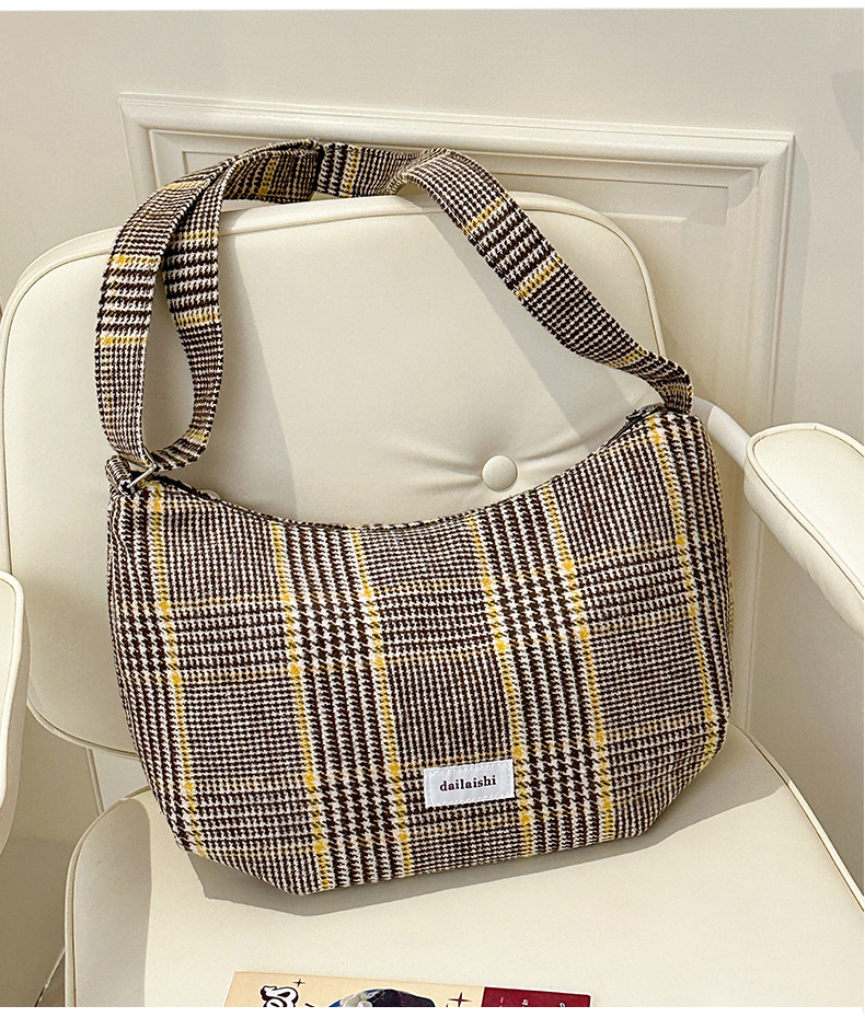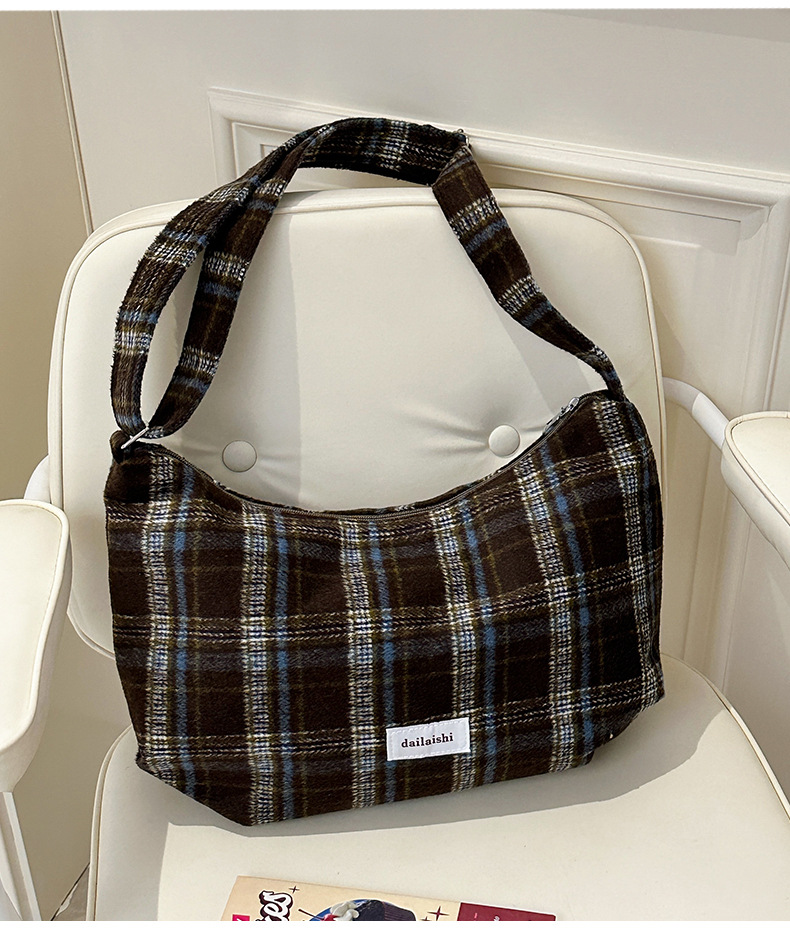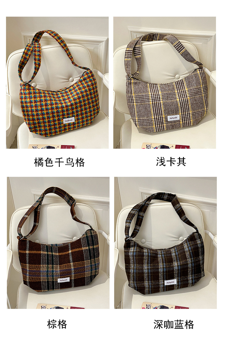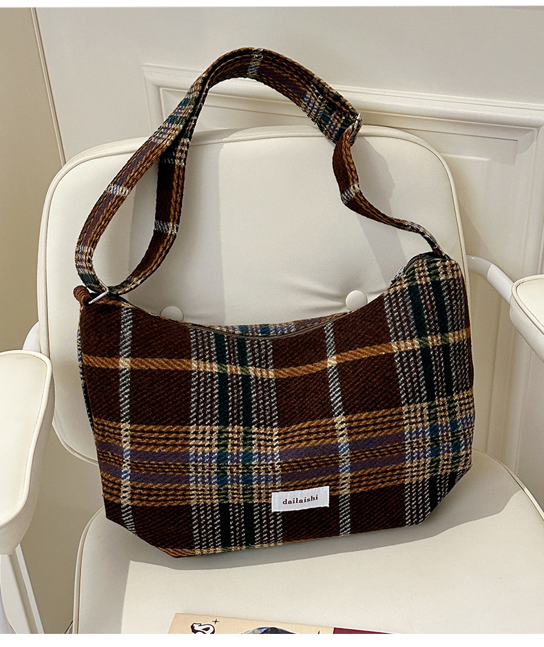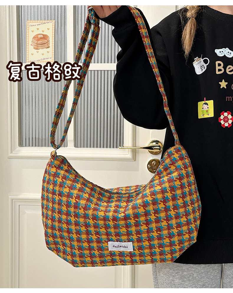 时尚韩版格子斜挎包个性百搭通勤饺子包大容量复古文艺学生单肩包 English | 投诉