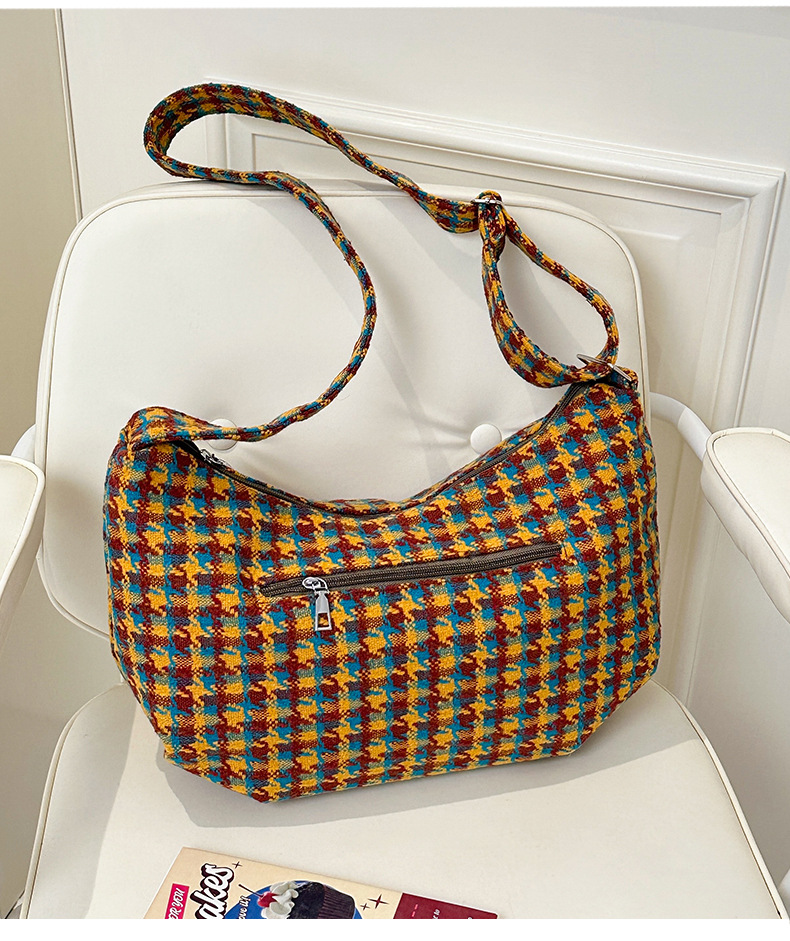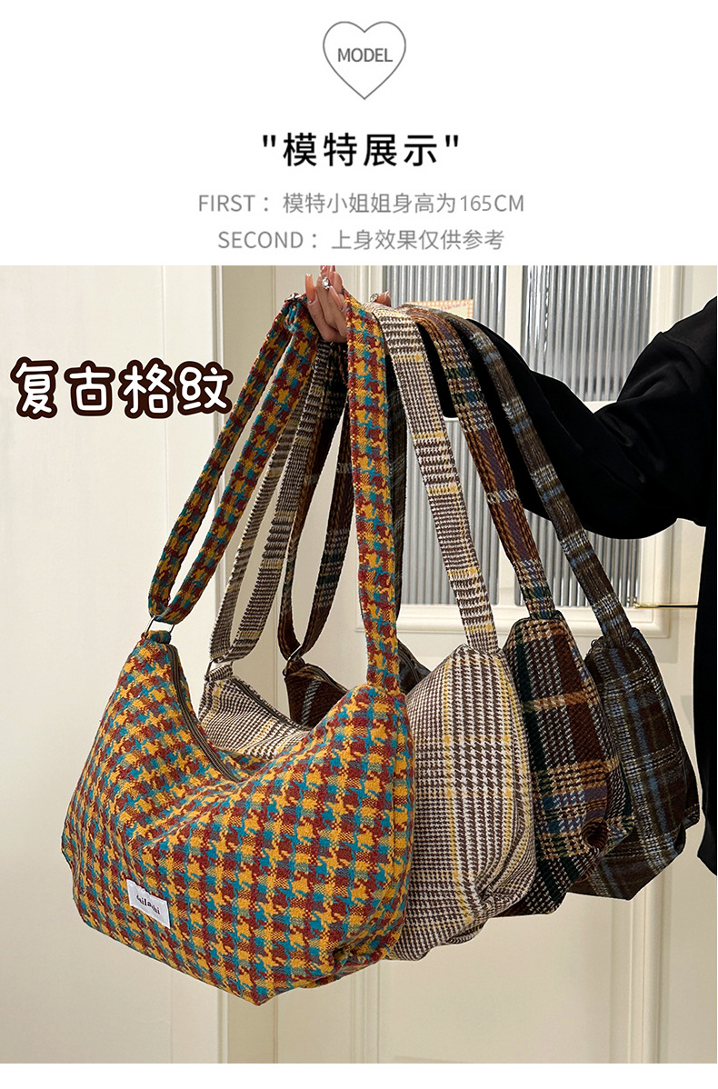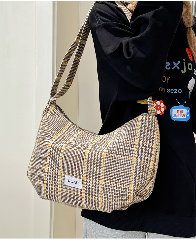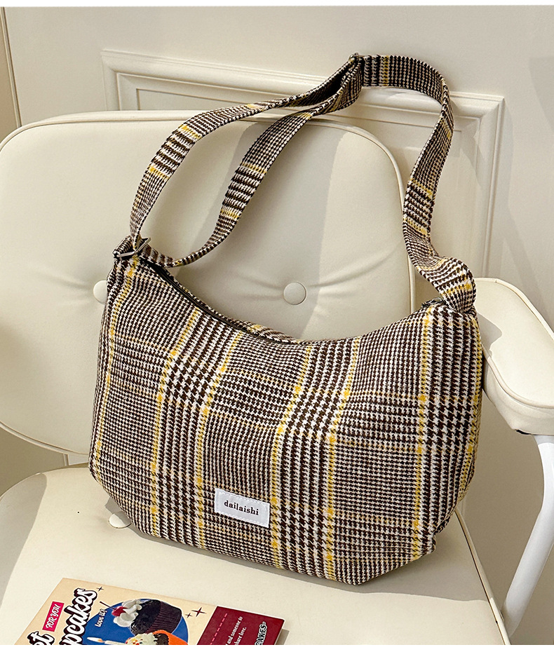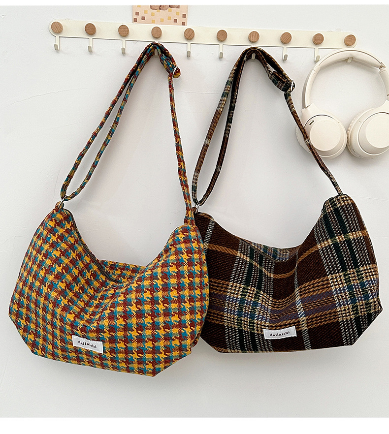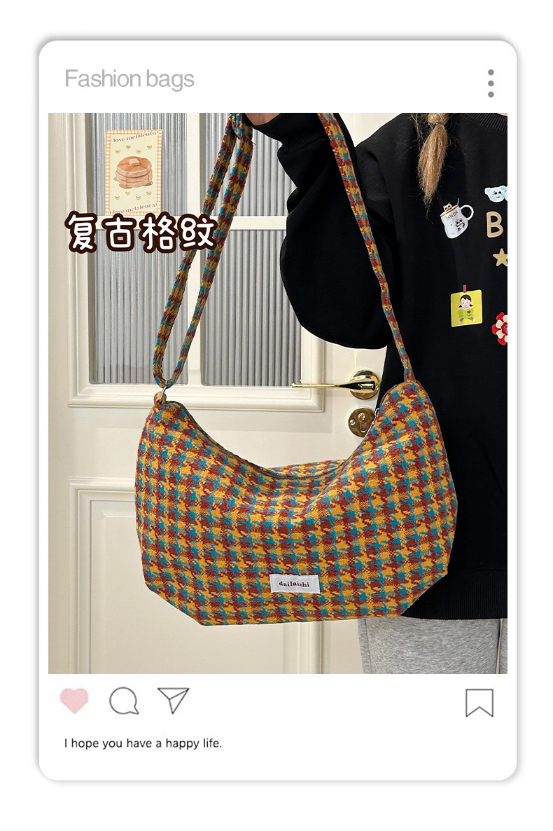 时尚韩版格子斜挎包个性百搭通勤饺子包大容量复古文艺学生单肩包 English | 投诉