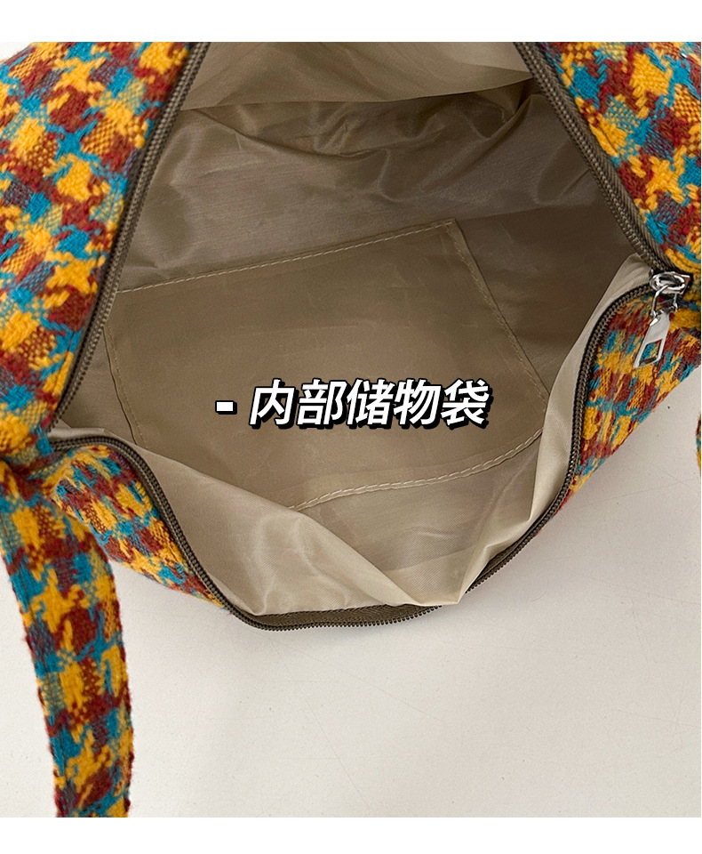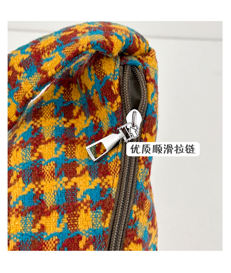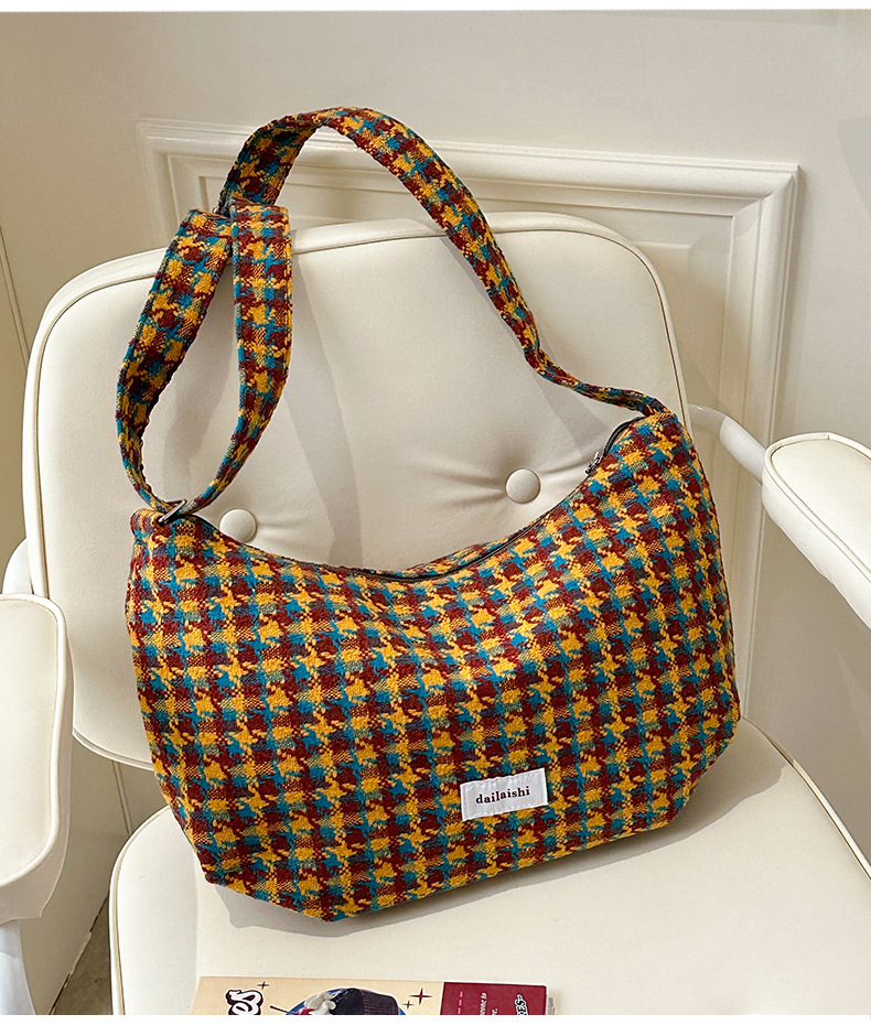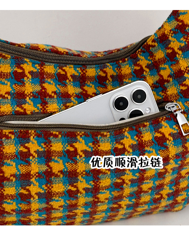 颜色: 橘色千鸟格,深咖蓝格,浅卡其,棕格 风格: 都市简约 货号: DML&245 材质: 涤纶 箱包潮流款式: 饺子包 箱包大小: 大 流行元素: 车缝线,格纹 上市年份季节: 2025年春季 里料质地: 涤纶 箱包形状: 其他
