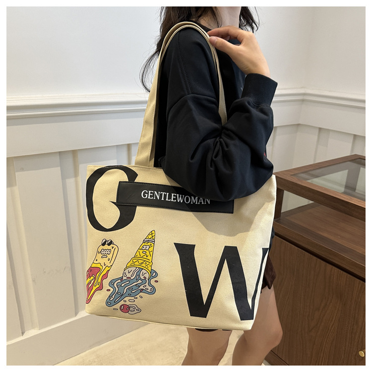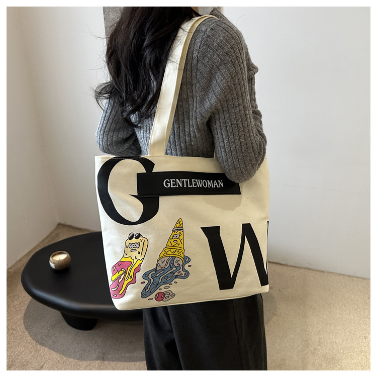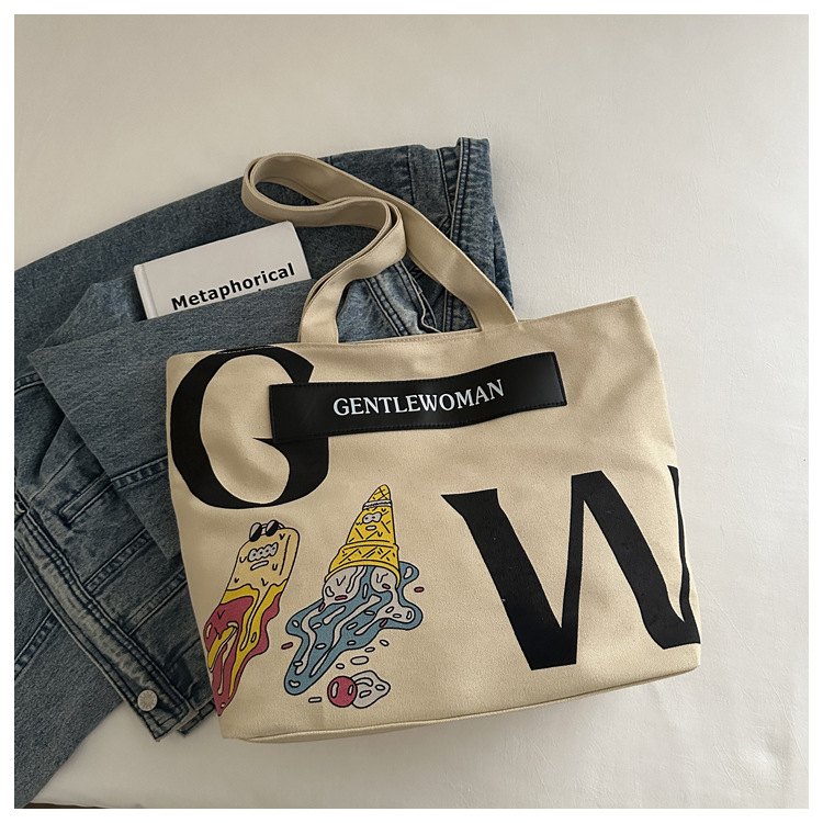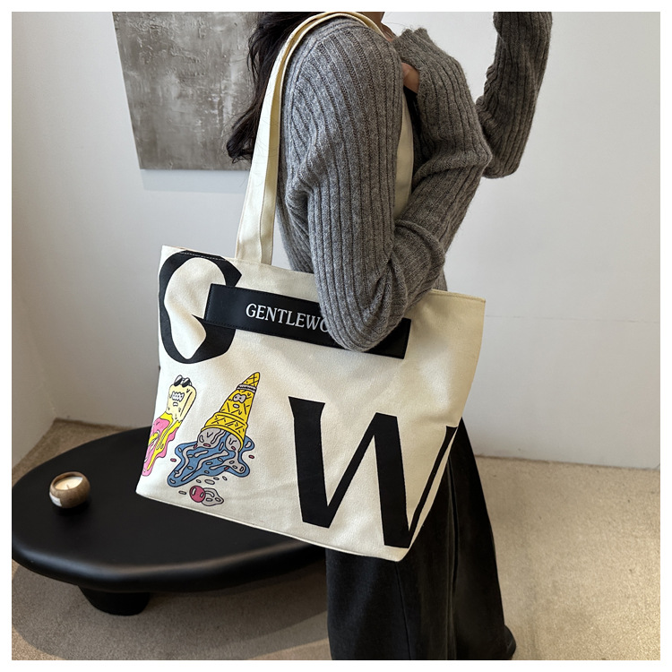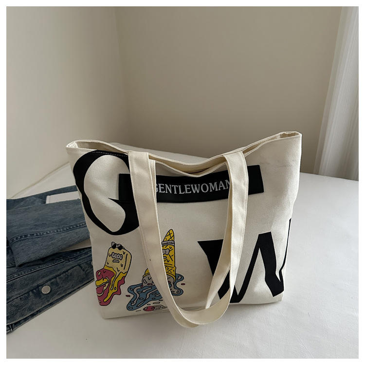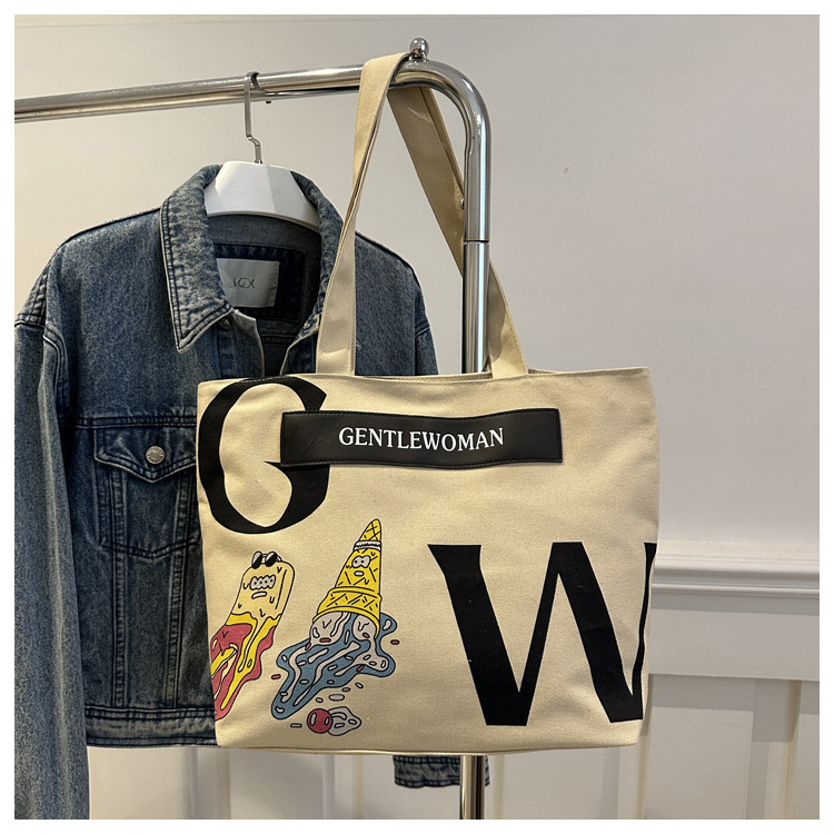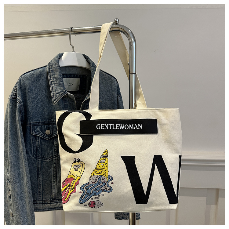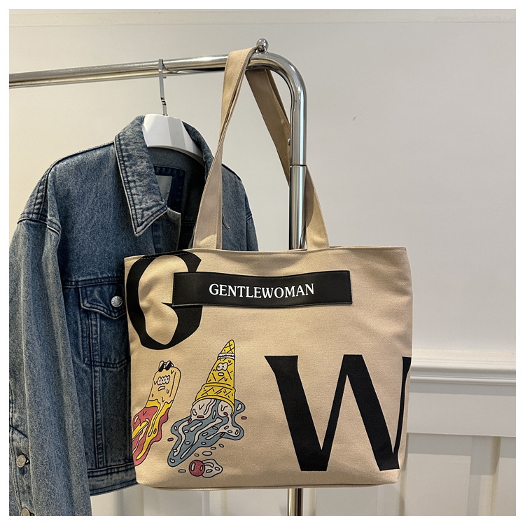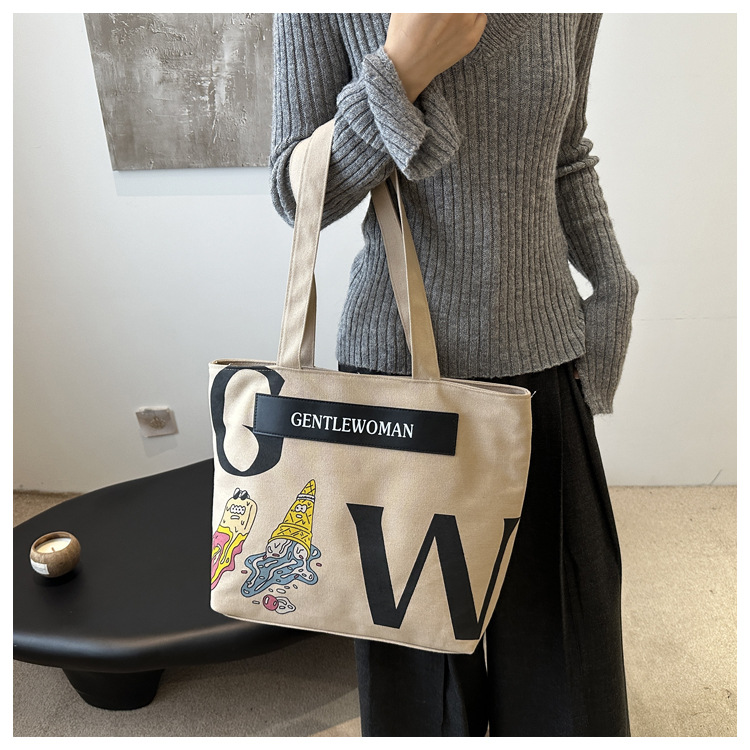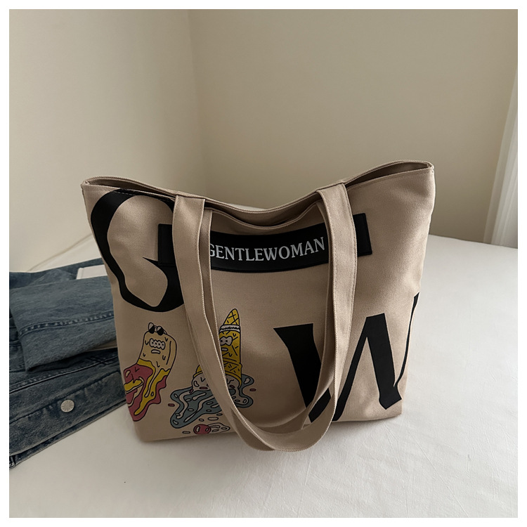 大容量字母帆布包女潮流休闲新款单肩托特包大学生上课通勤手提袋 English | 投诉