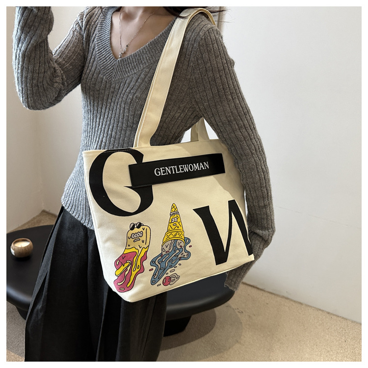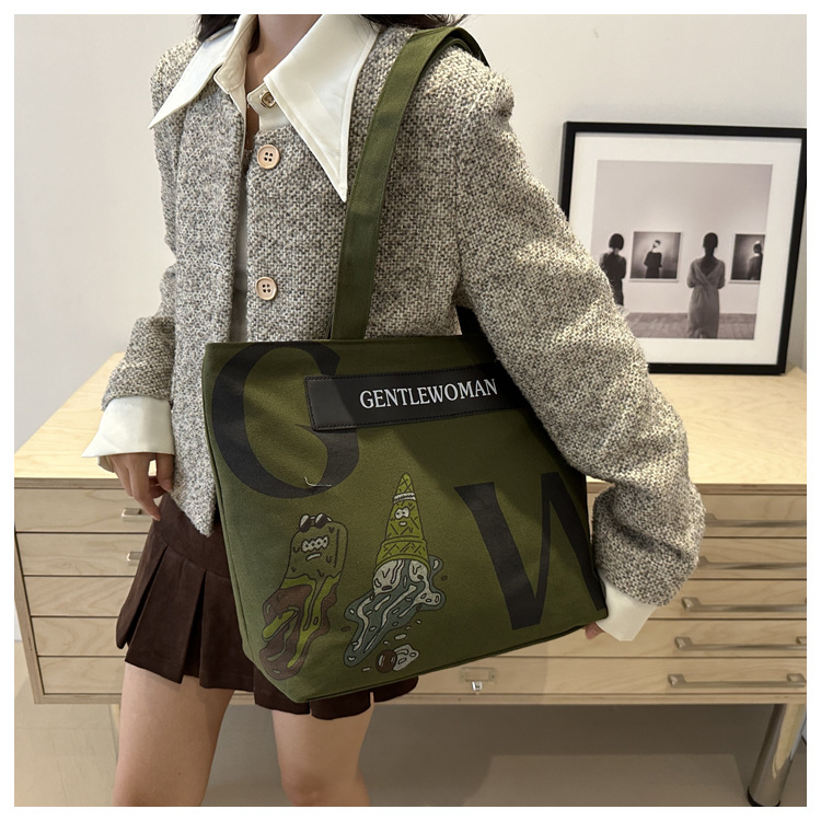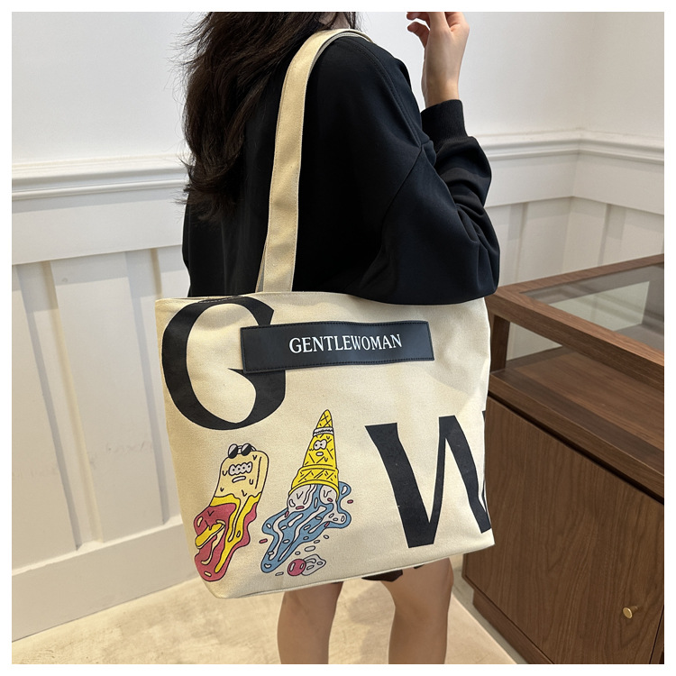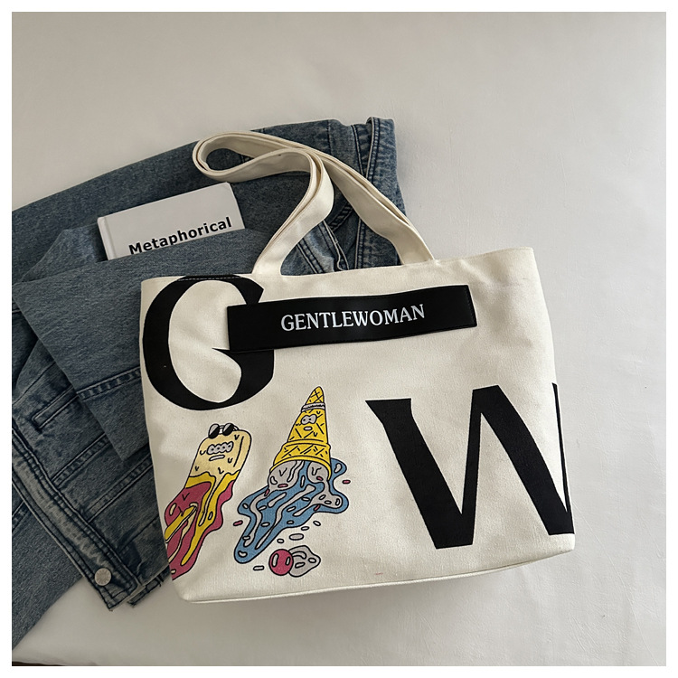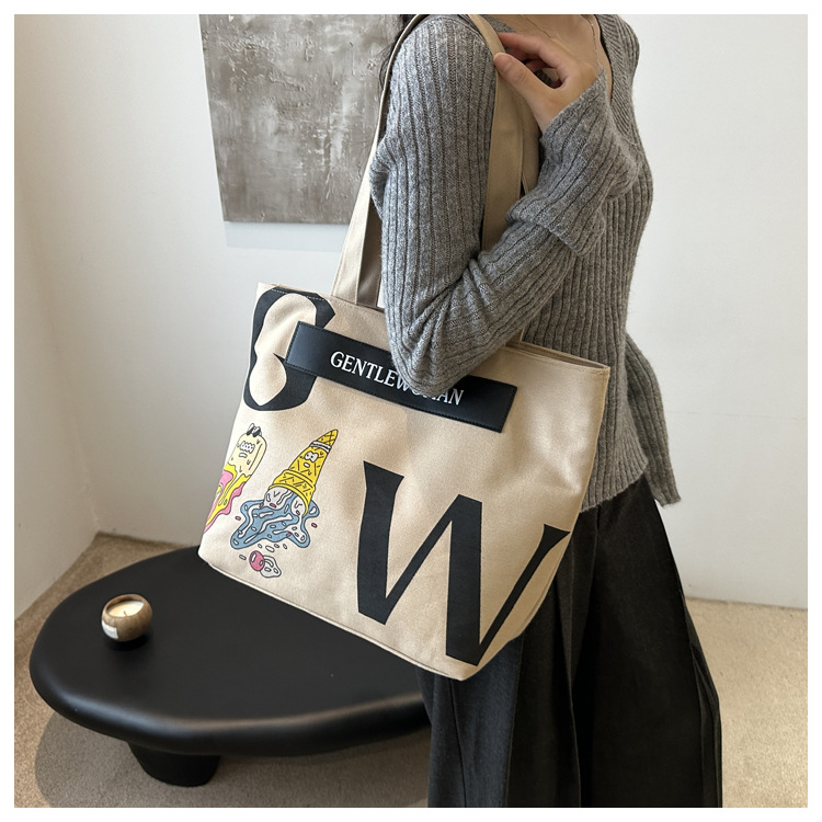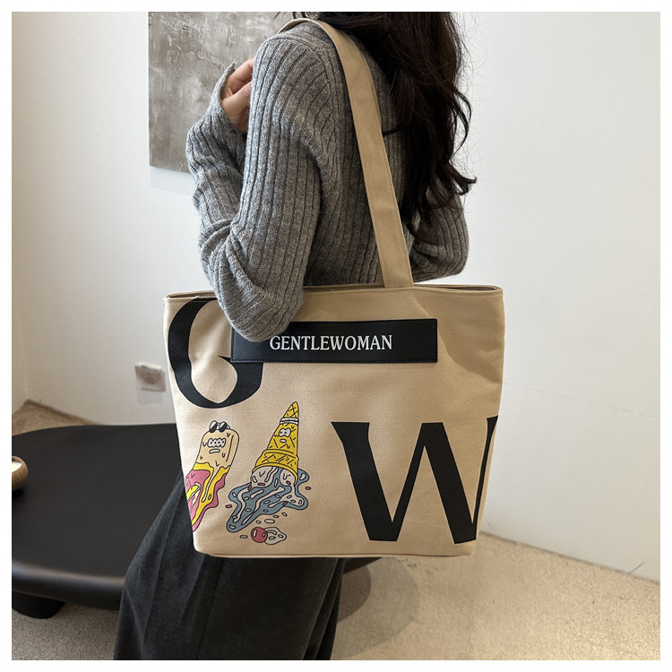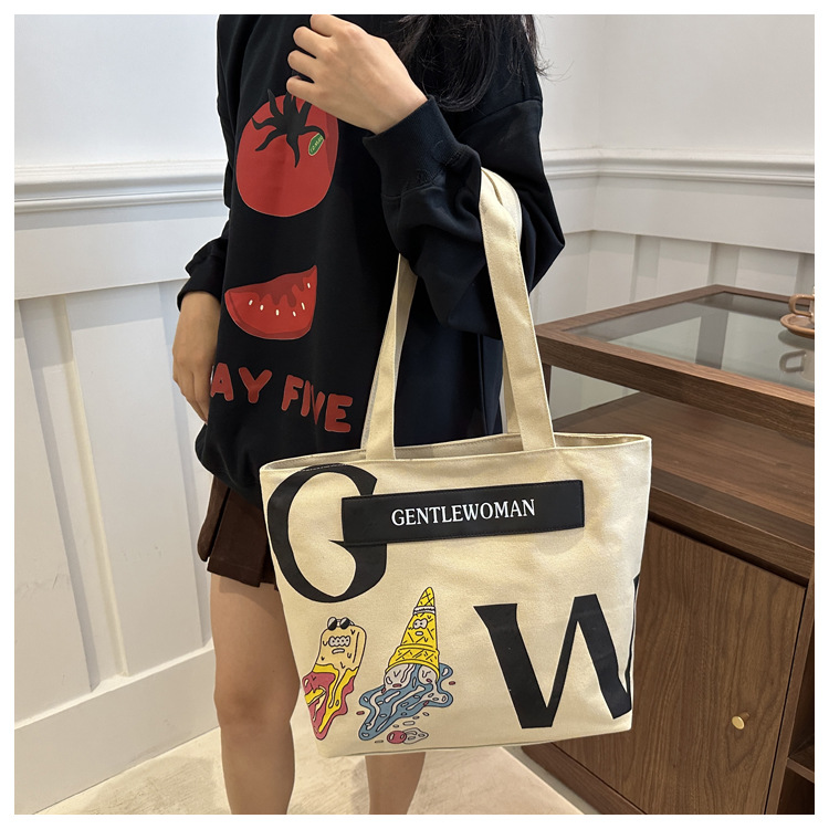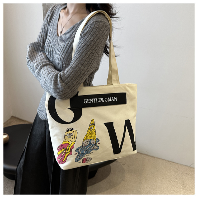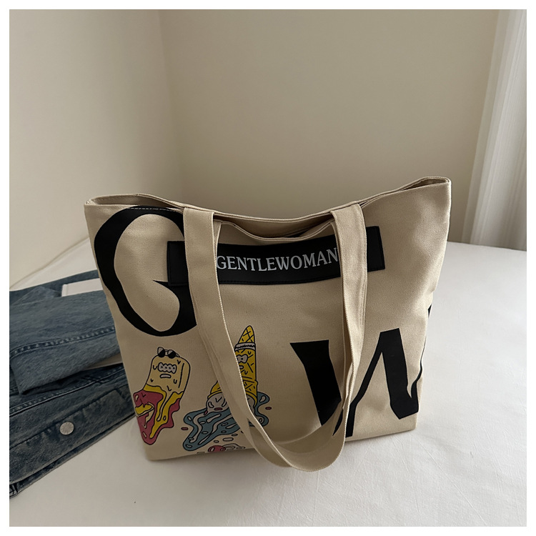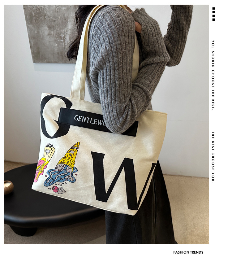 大容量字母帆布包女潮流休闲新款单肩托特包大学生上课通勤手提袋 English | 投诉