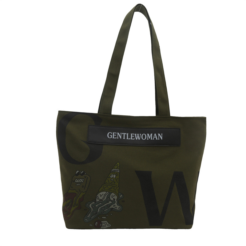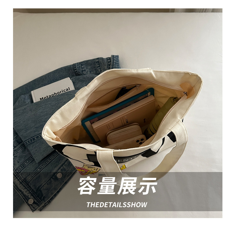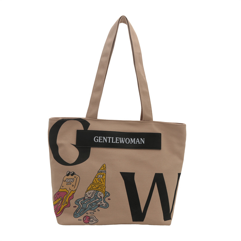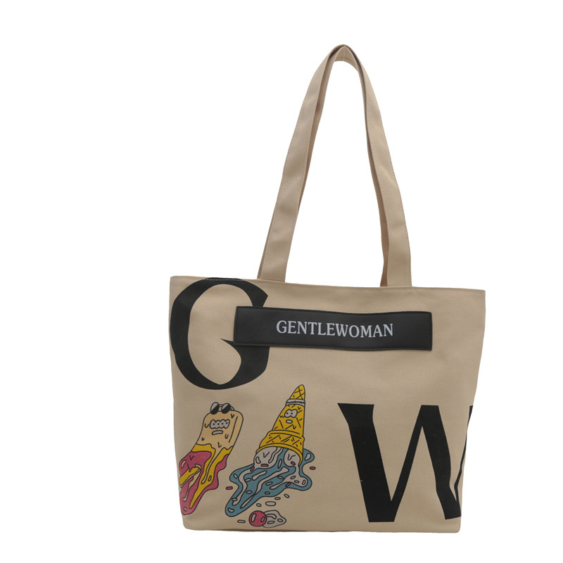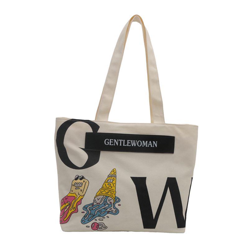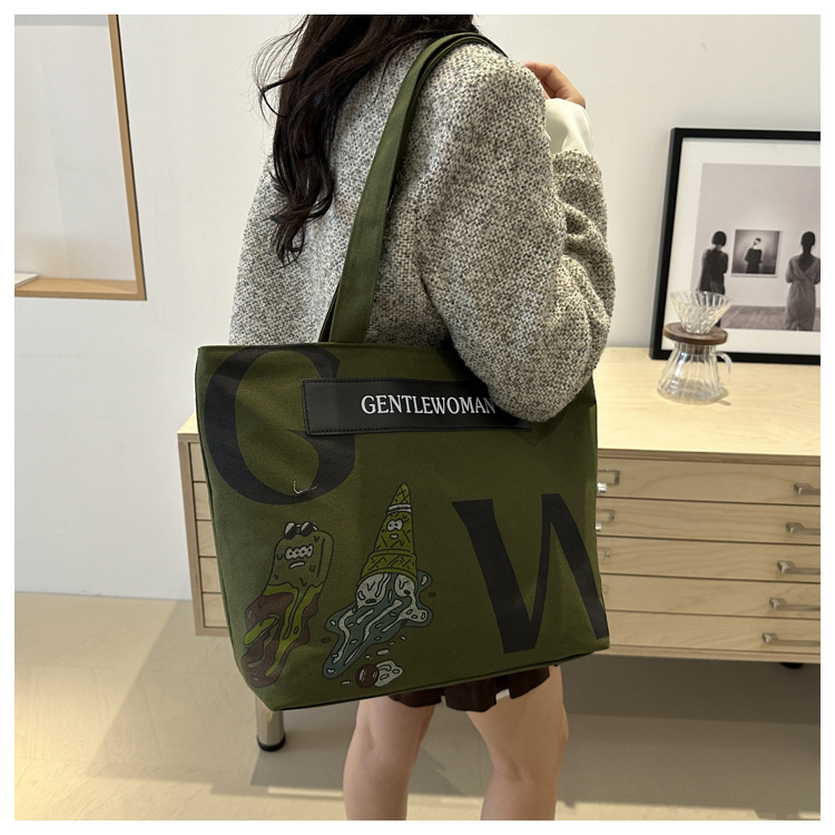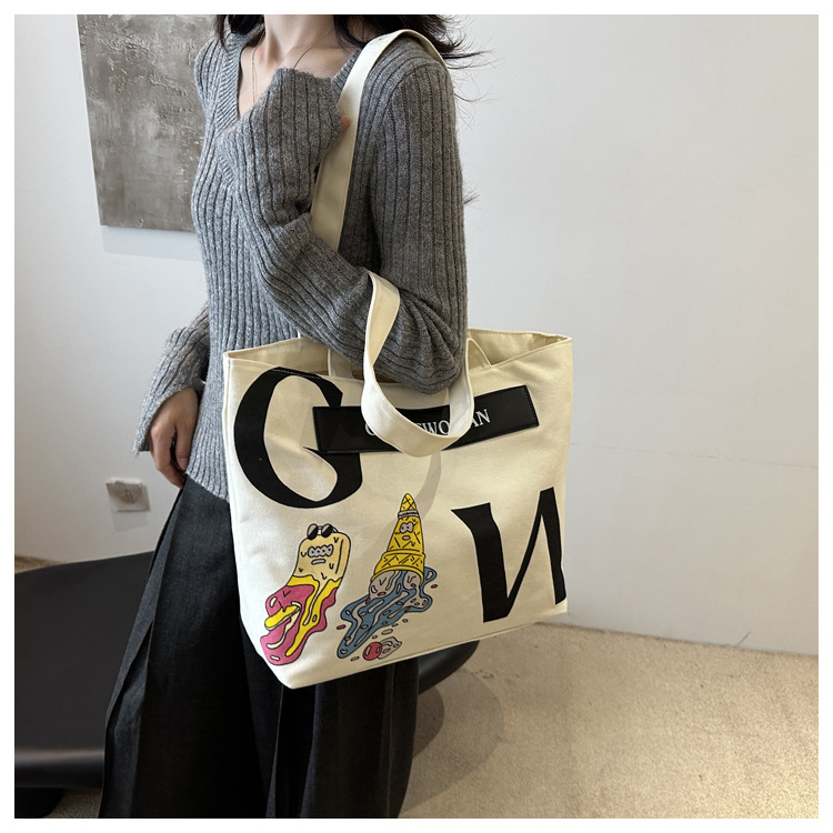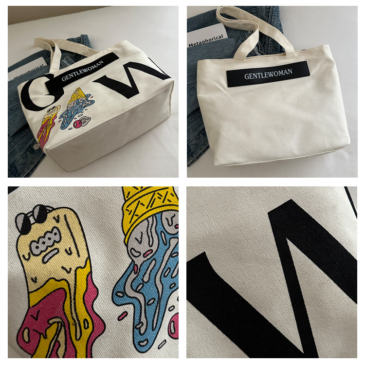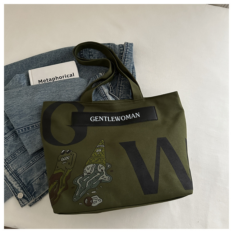 大容量字母帆布包女潮流休闲新款单肩托特包大学生上课通勤手提袋 English | 投诉