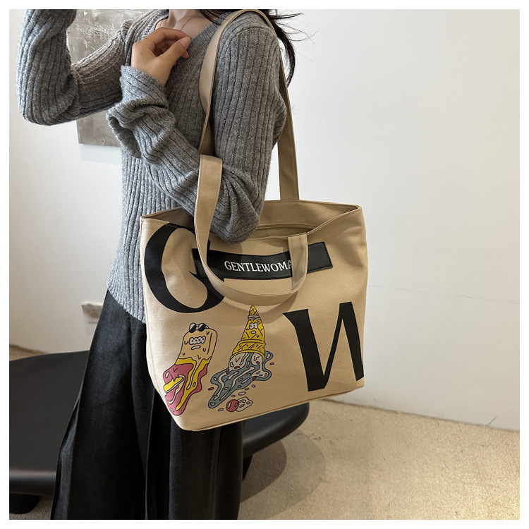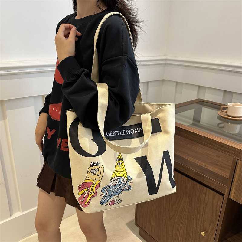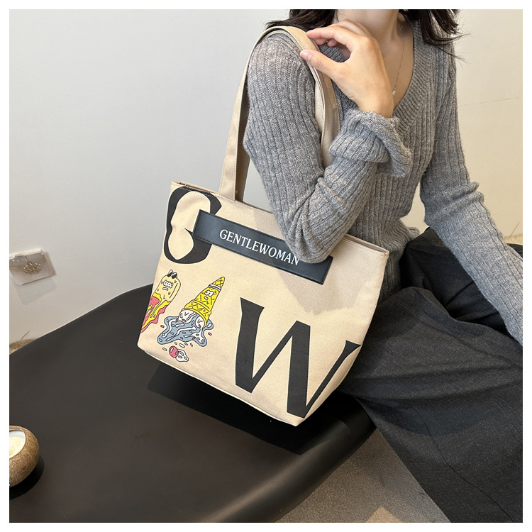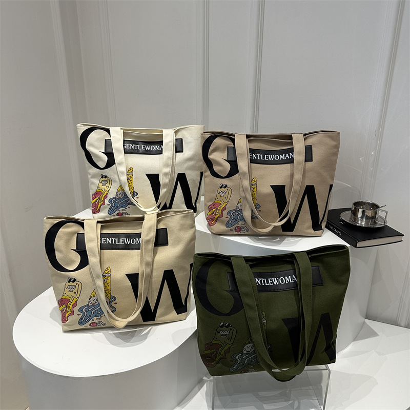 大容量字母帆布包女潮流休闲新款单肩托特包大学生上课通勤手提袋
