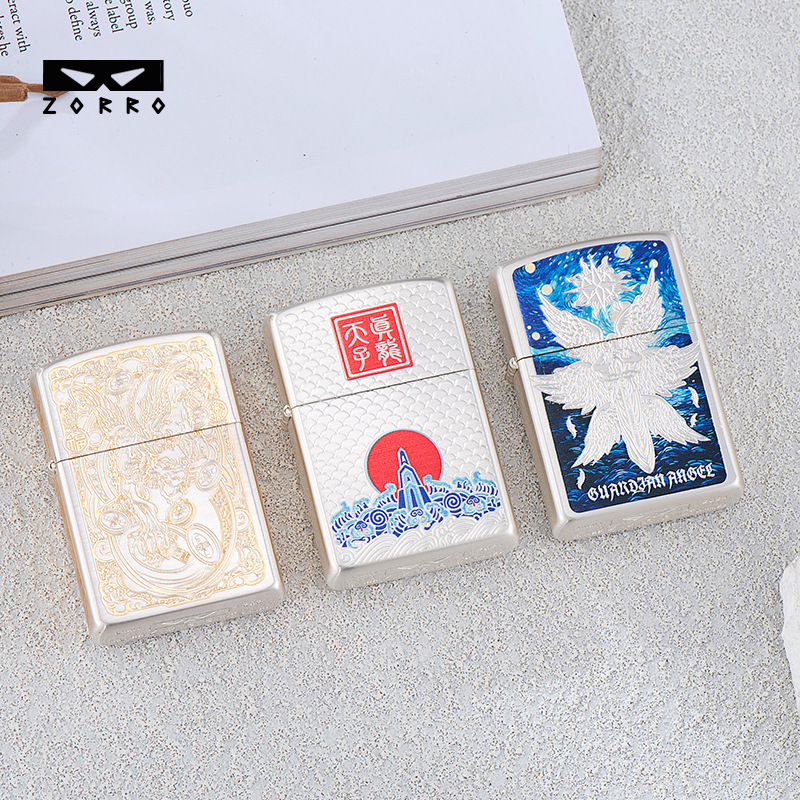 ZORRO牌高档打火机,采用加厚纯铜外壳打造,其精湛的工艺和精美的设计使其在质量、性能和艺术性上都趋于完美,堪比zp。同时也使其被国内众多打火机玩家公认为“专为打火机玩家打造的系列玩机”。