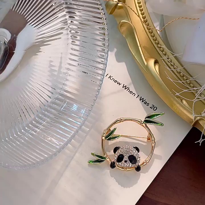 简约可爱熊猫胸针 高档百搭女设计感竹子别针 胸花西装合金装饰品