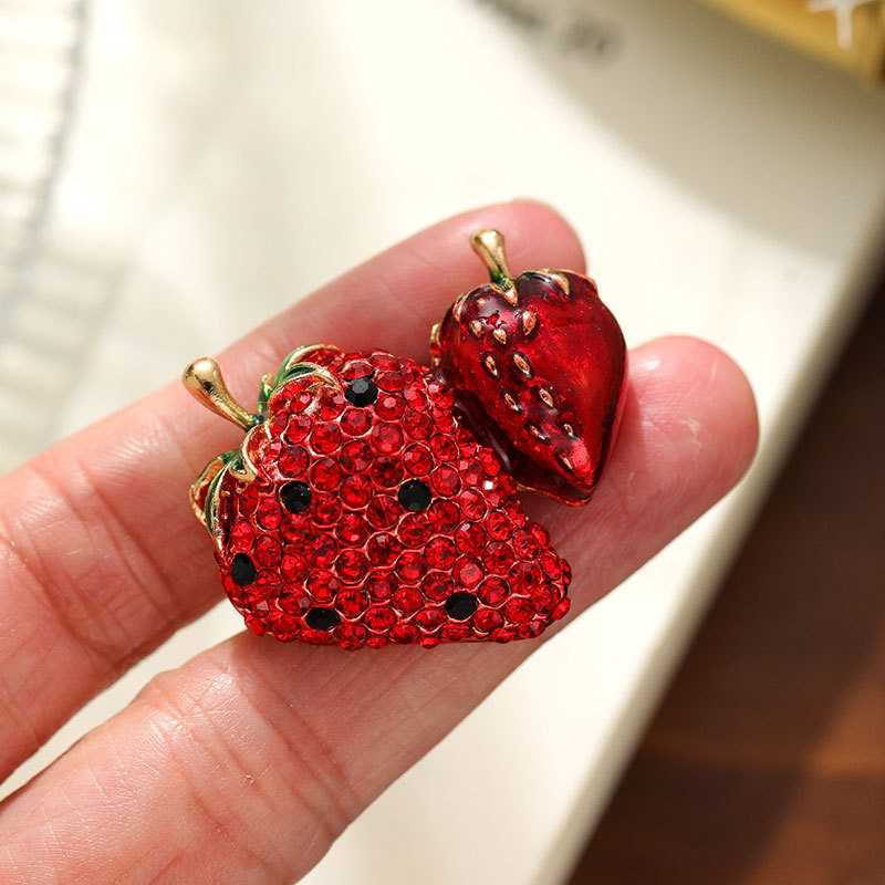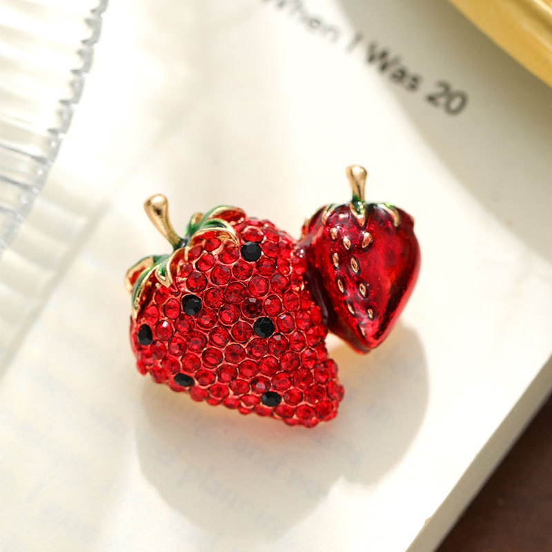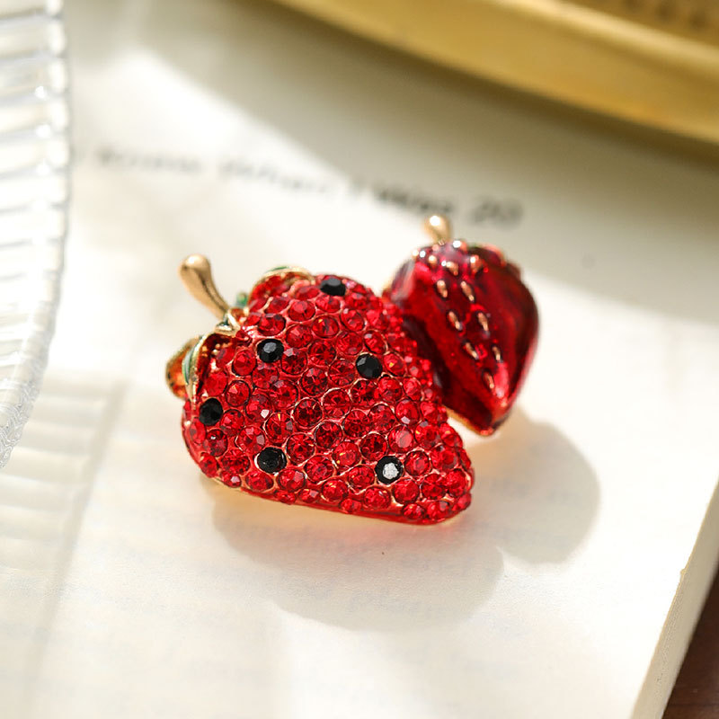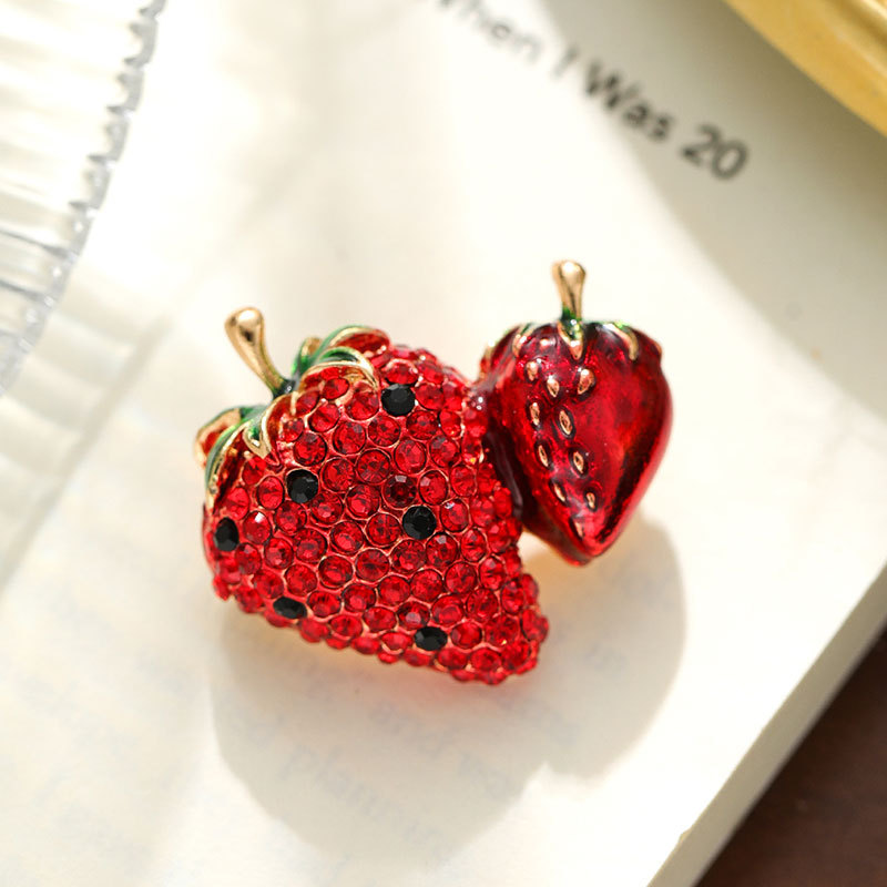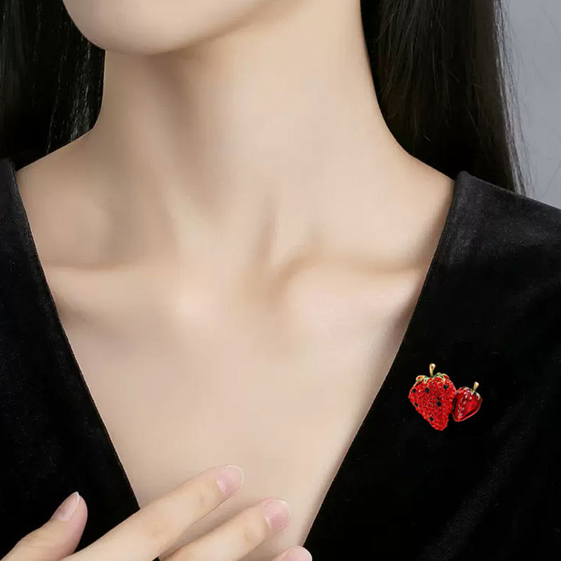 时尚满钻草莓水果 胸针高级感百搭简约胸花合金服装 饰品别针配饰