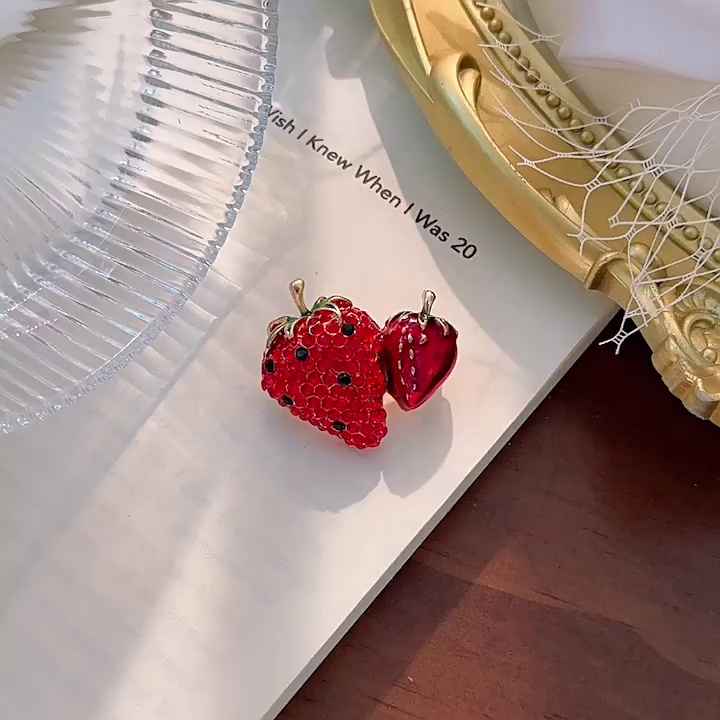 时尚满钻草莓水果 胸针高级感百搭简约胸花合金服装 饰品别针配饰 投诉