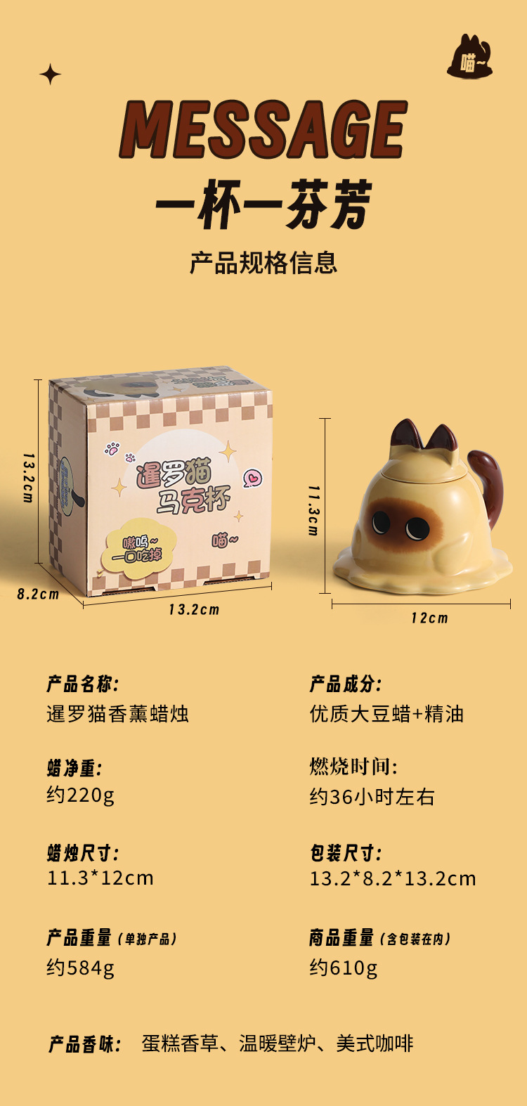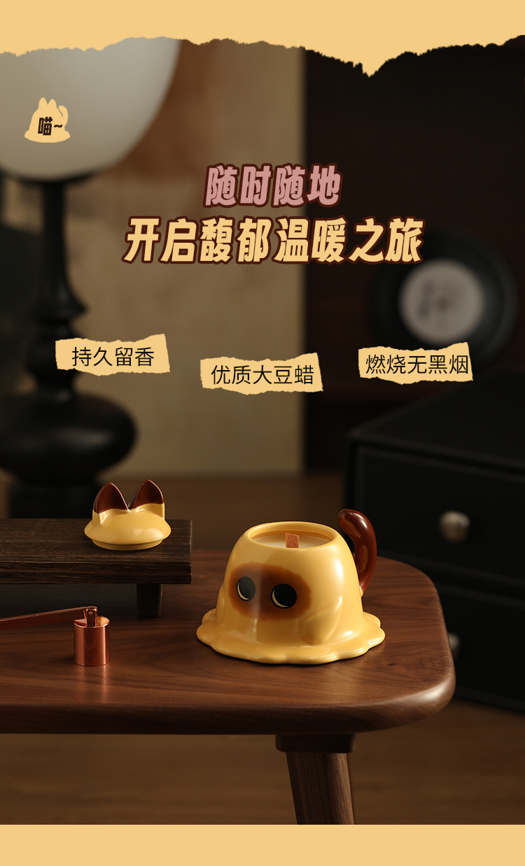 可爱暹罗猫香薰蜡烛大罐礼盒大豆蜡高颜值香氛礼物生日伴手礼摆件 English | 投诉