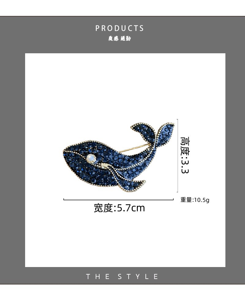 秋季新款蓝色钻鲸鱼胸针高级感动物珍珠胸花配饰气质合金别针女潮 投诉