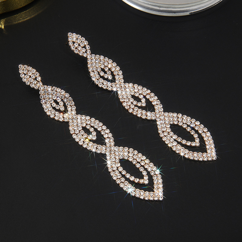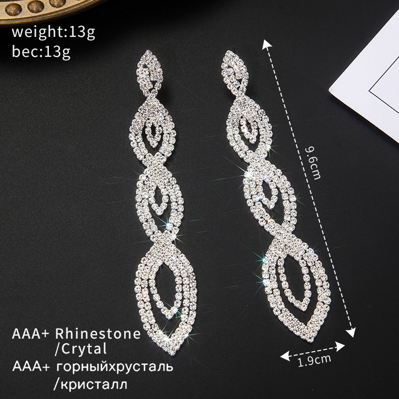 厂家新款欧美水钻长款马眼组合耳环女性夸张爪链舞台气质耳饰E808 English | 投诉