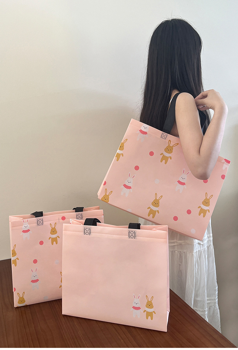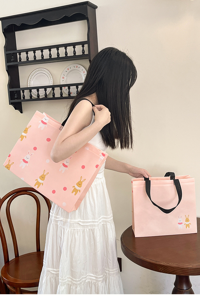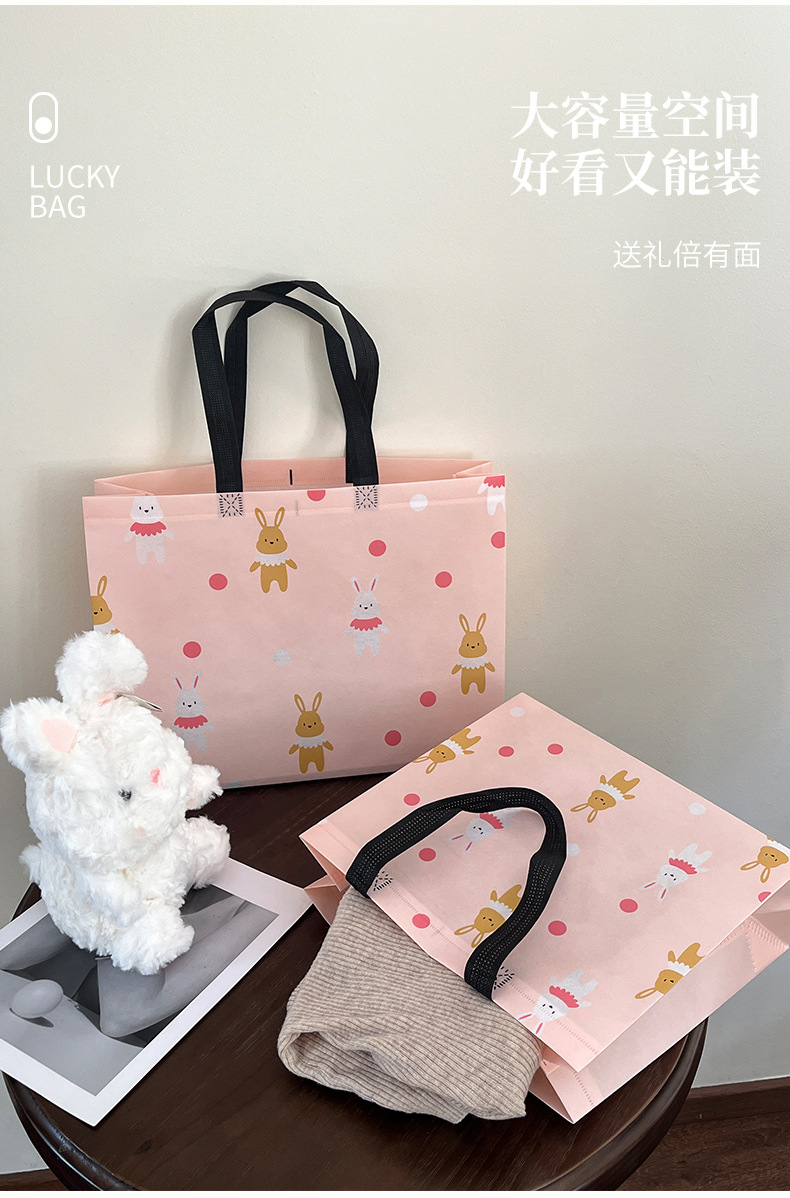 定制可爱兔童装服装店覆膜无纺布袋子购物礼品手提袋女装衣服小熊
