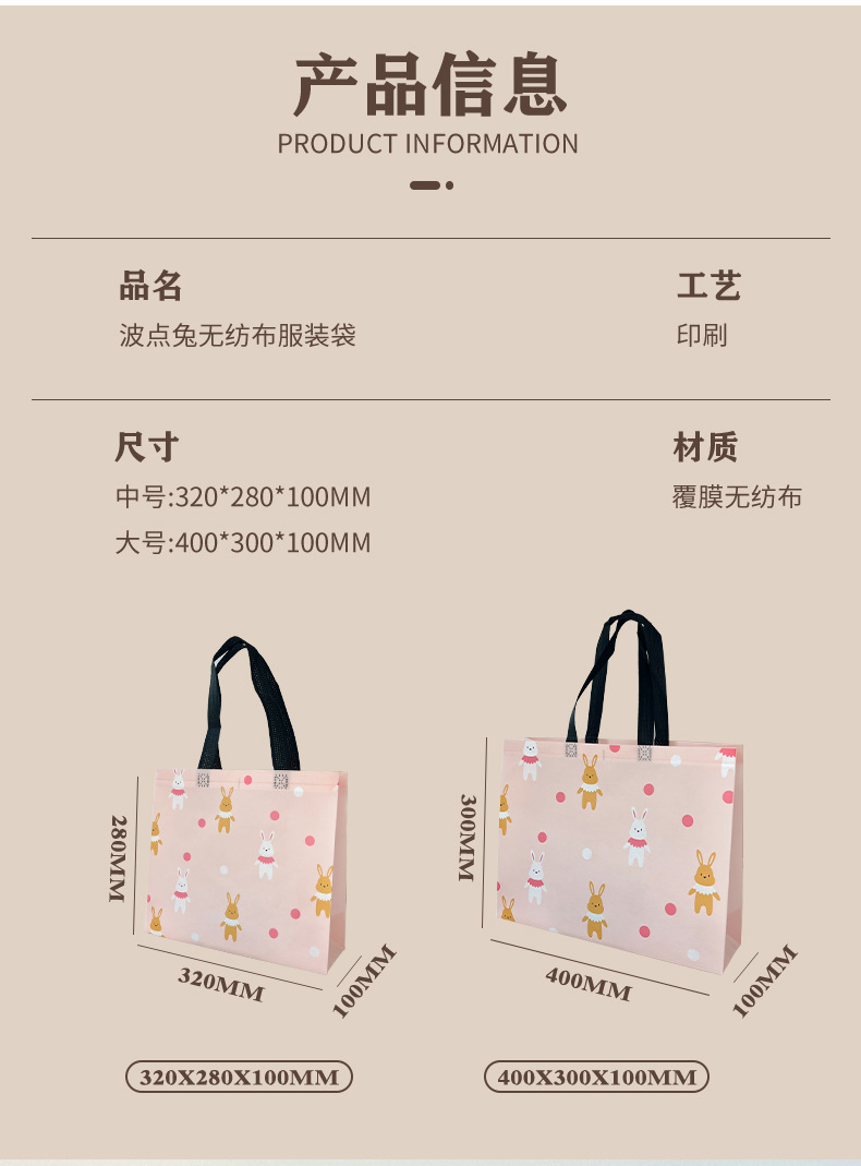定制可爱兔童装服装店覆膜无纺布袋子购物礼品手提袋女装衣服小熊 投诉