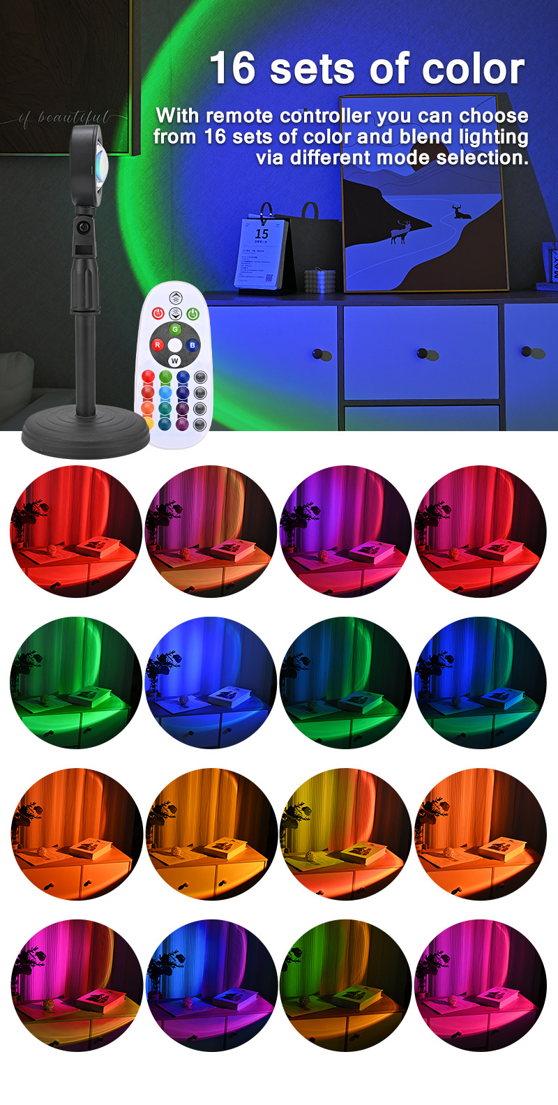 夕阳灯氛围灯可伸缩支架创意落日灯app遥控智能调光卧室小夜灯 English | 投诉