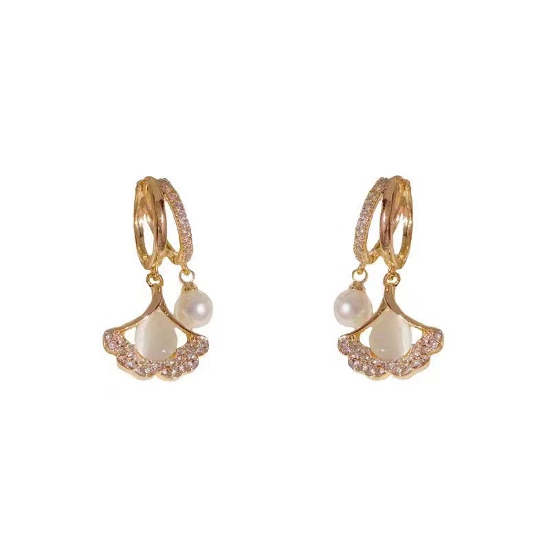 爆款猫眼石银杏叶耳扣时尚气质百搭耳环耳饰品时尚百搭小众耳坠女 English | 投诉