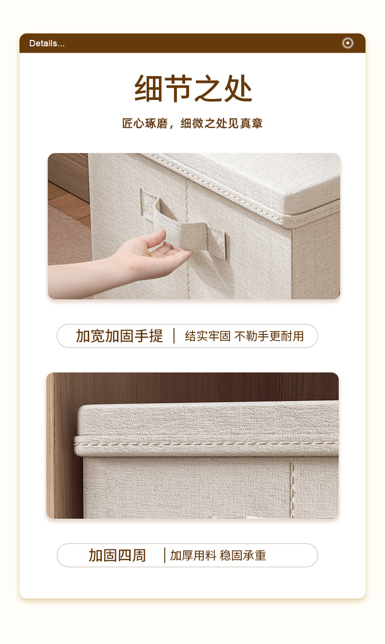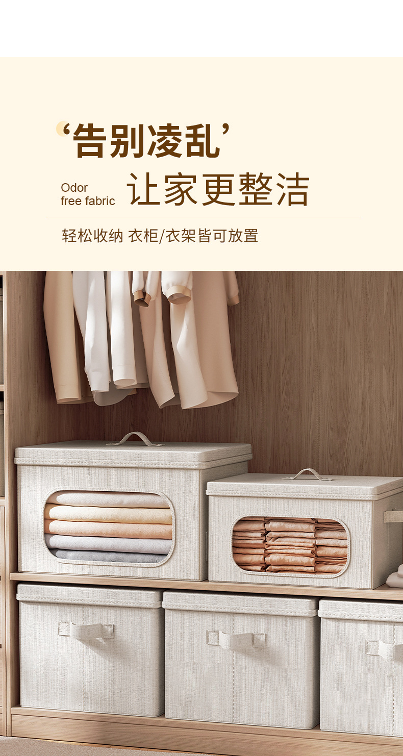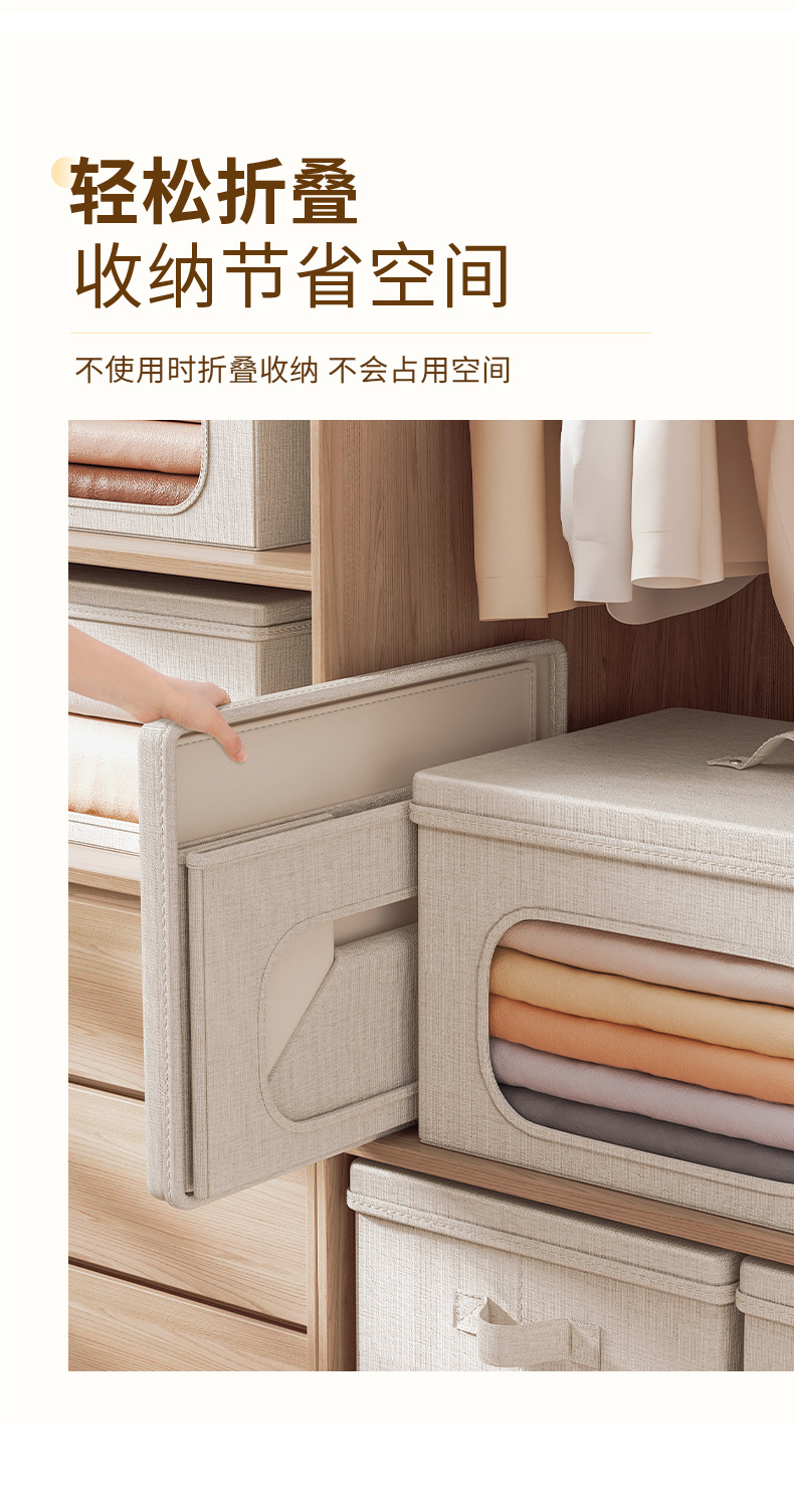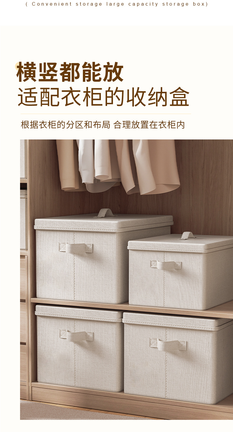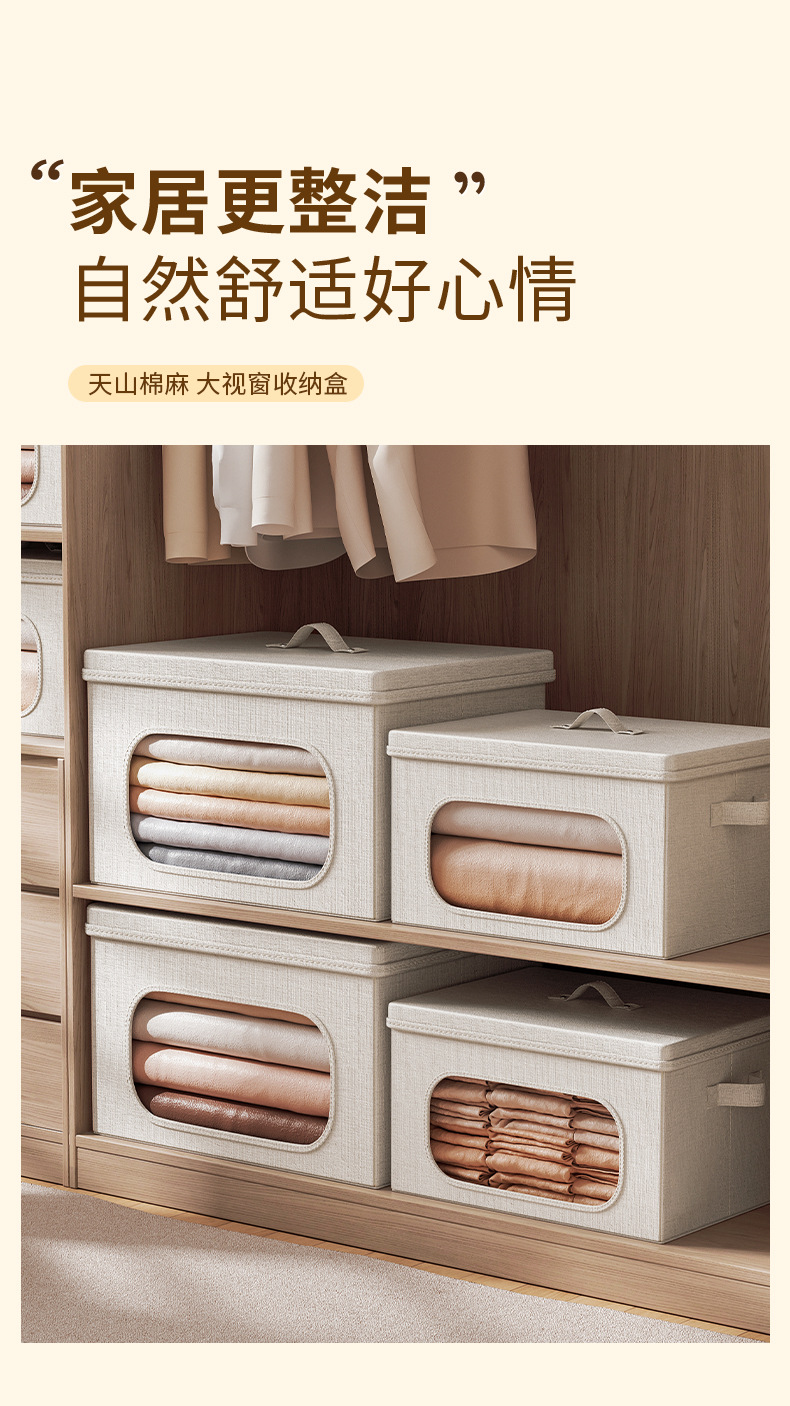 天山棉麻带盖收纳箱家用大容量衣服收纳整理箱衣柜衣物折叠储物筐