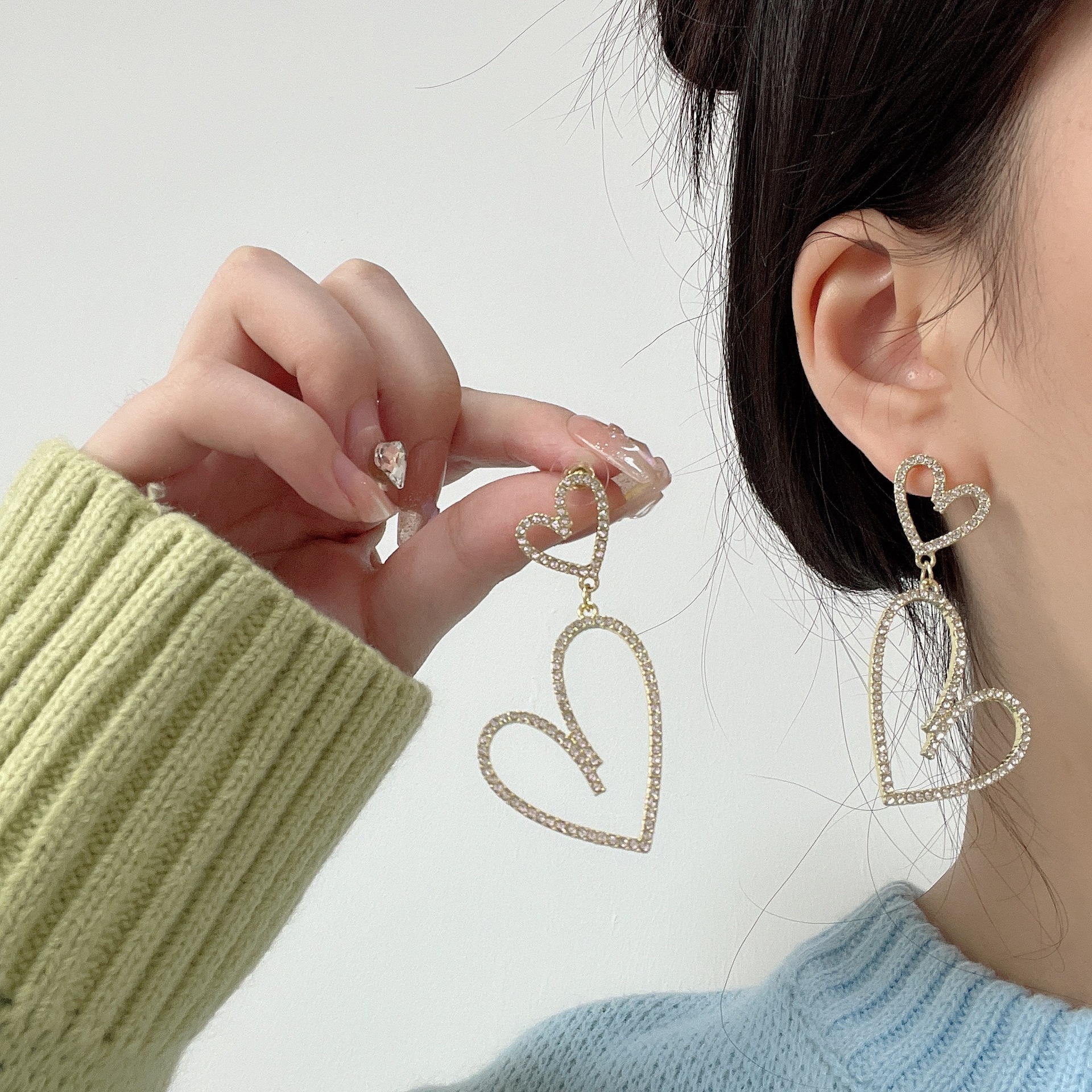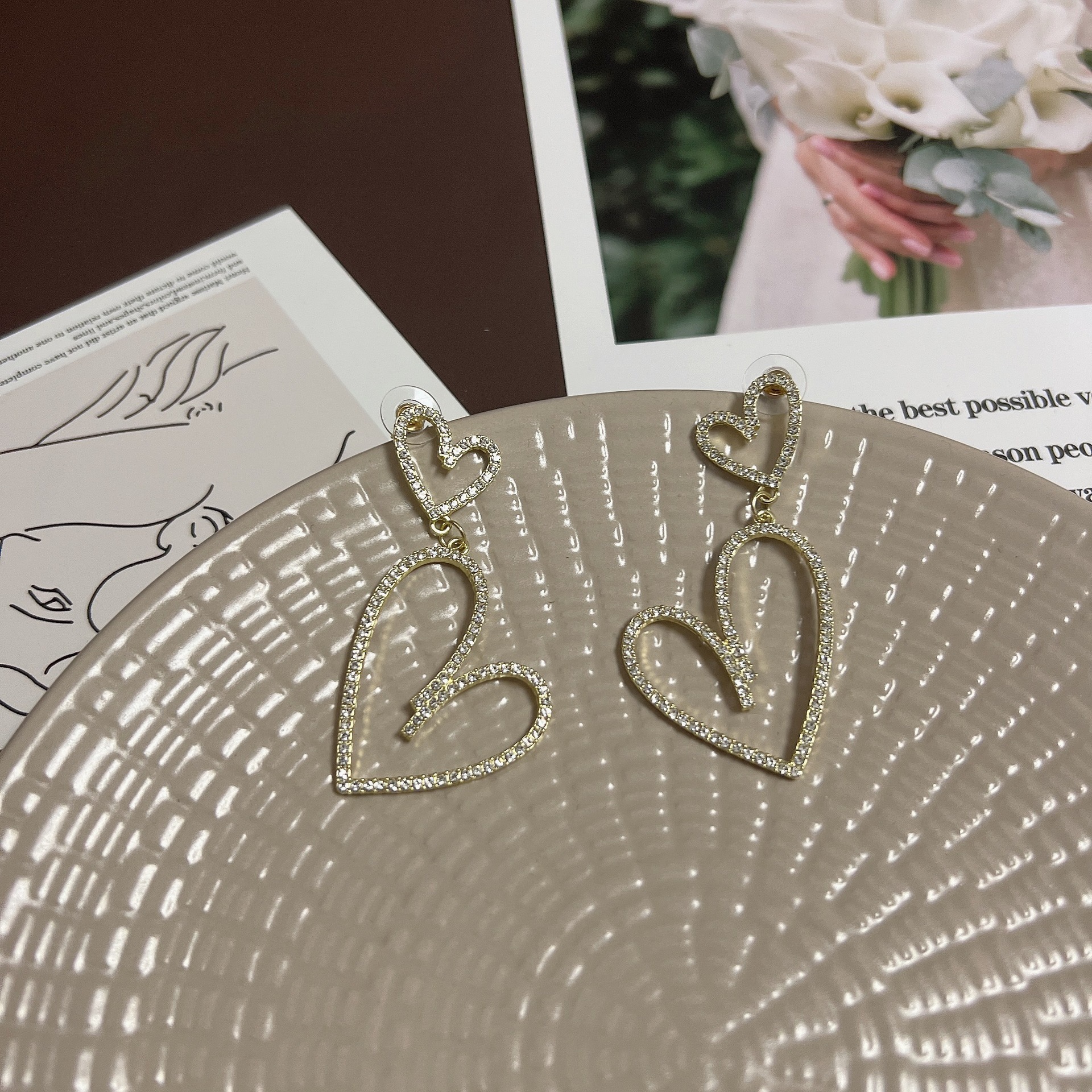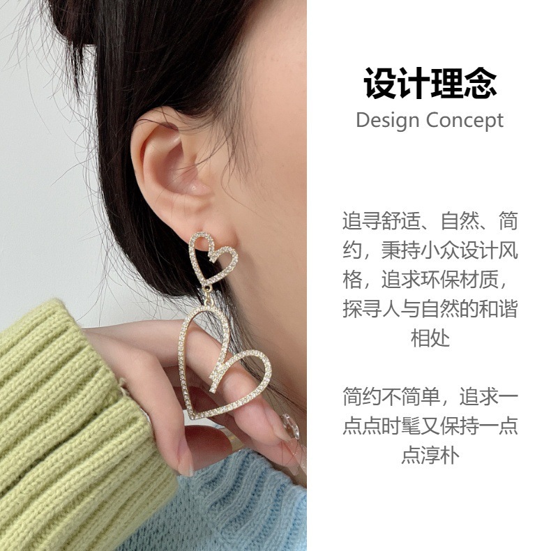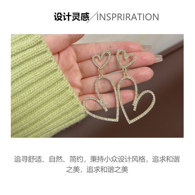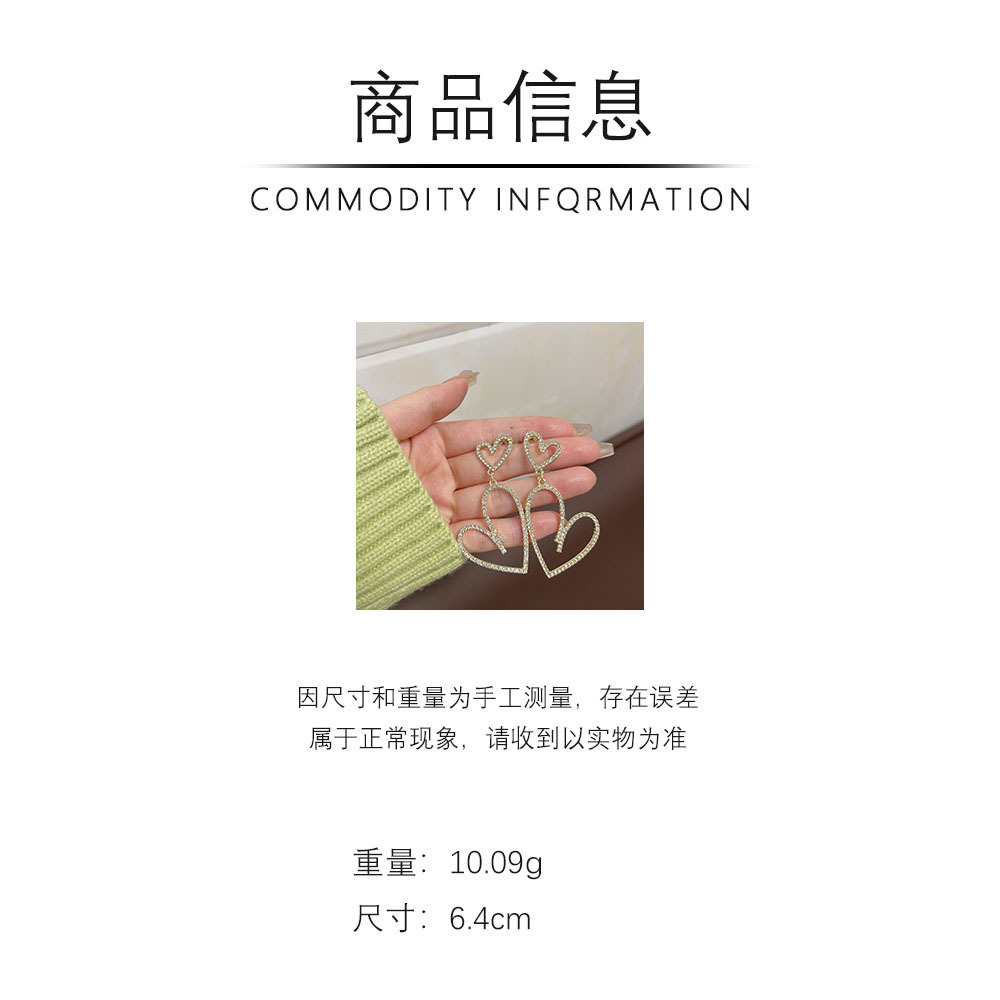 潮流超闪网红高级感水钻耳钉欧美大气时尚夸张满钻镂空爱心耳环女 English | 投诉