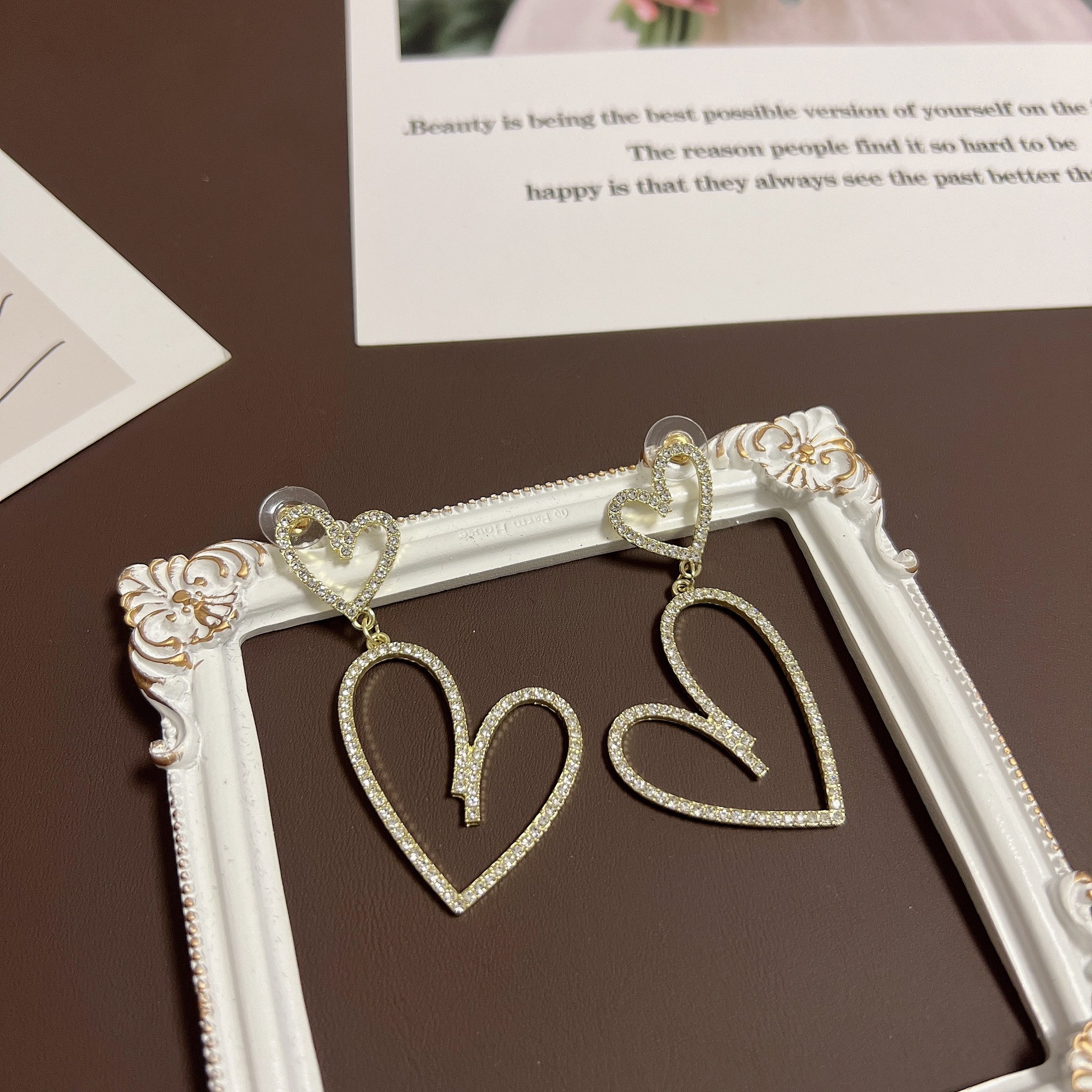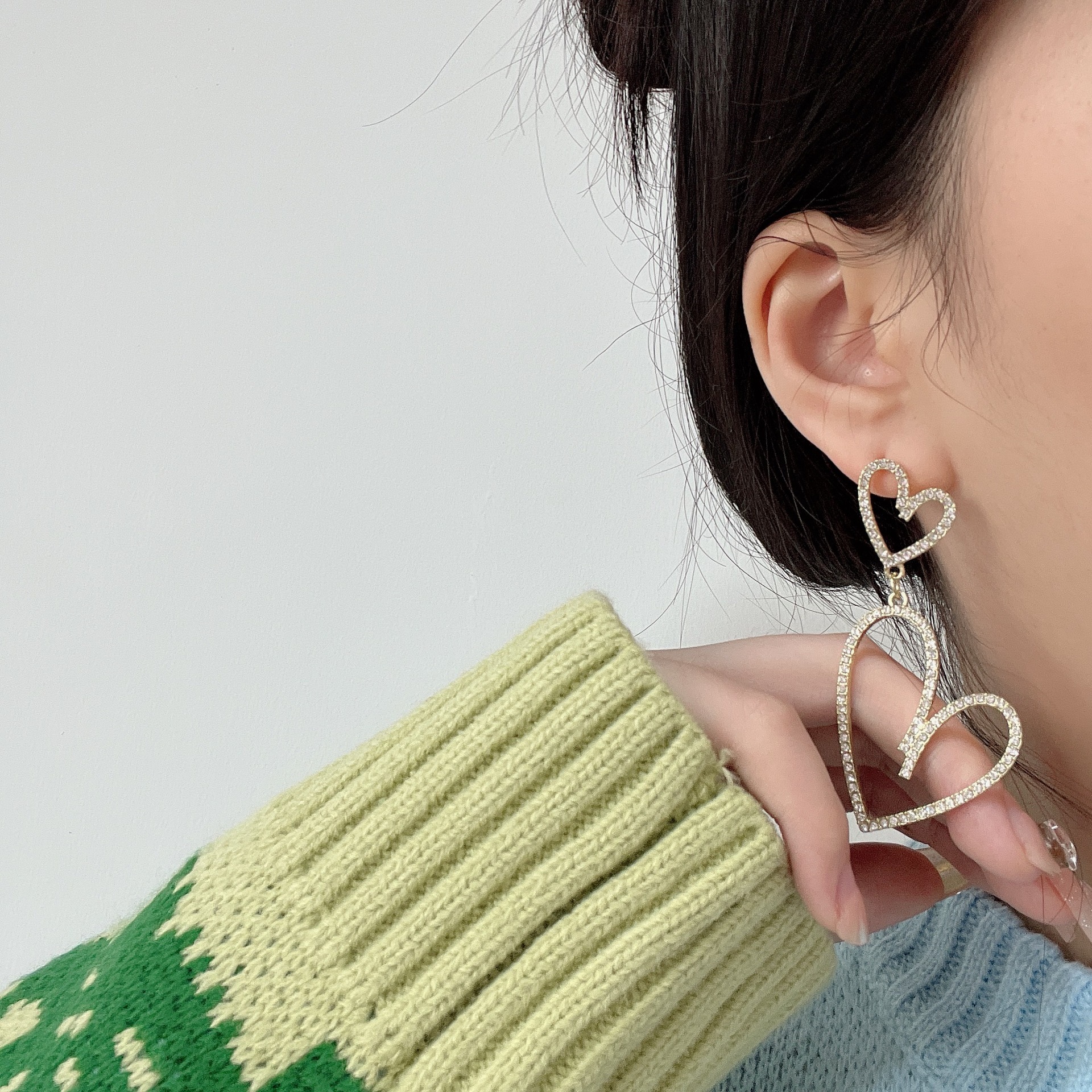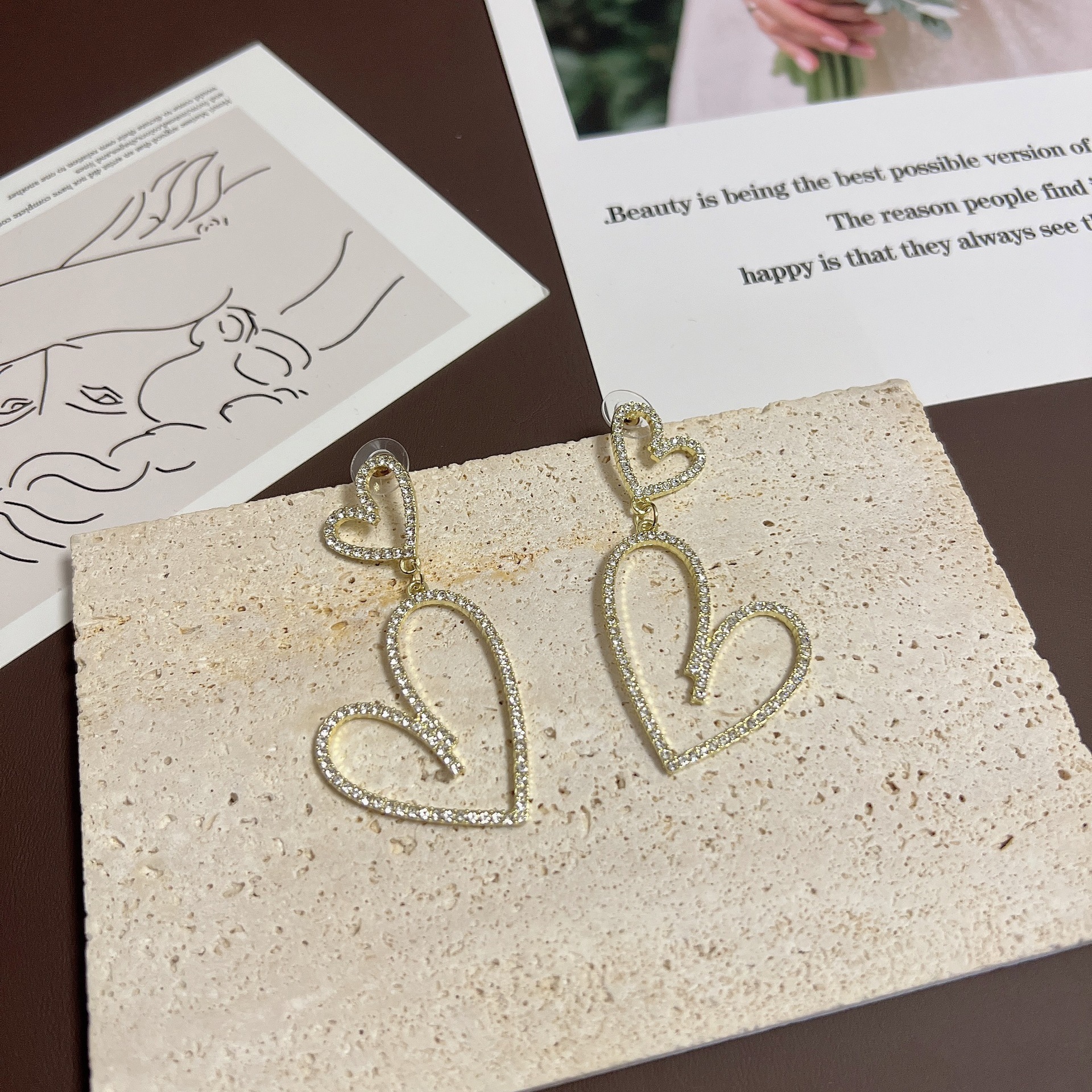 潮流超闪网红高级感水钻耳钉欧美大气时尚夸张满钻镂空爱心耳环女 English | 投诉