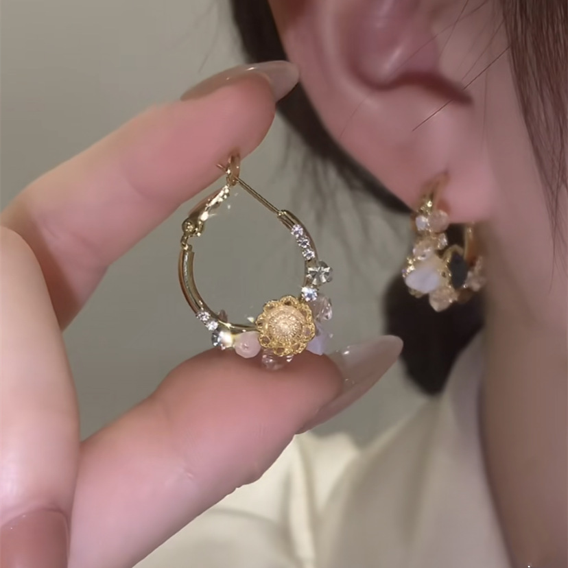 抖音同款花环耳圈轻奢花朵耳环法式海蓝香槟耳钉耳饰两面可戴 English | 投诉