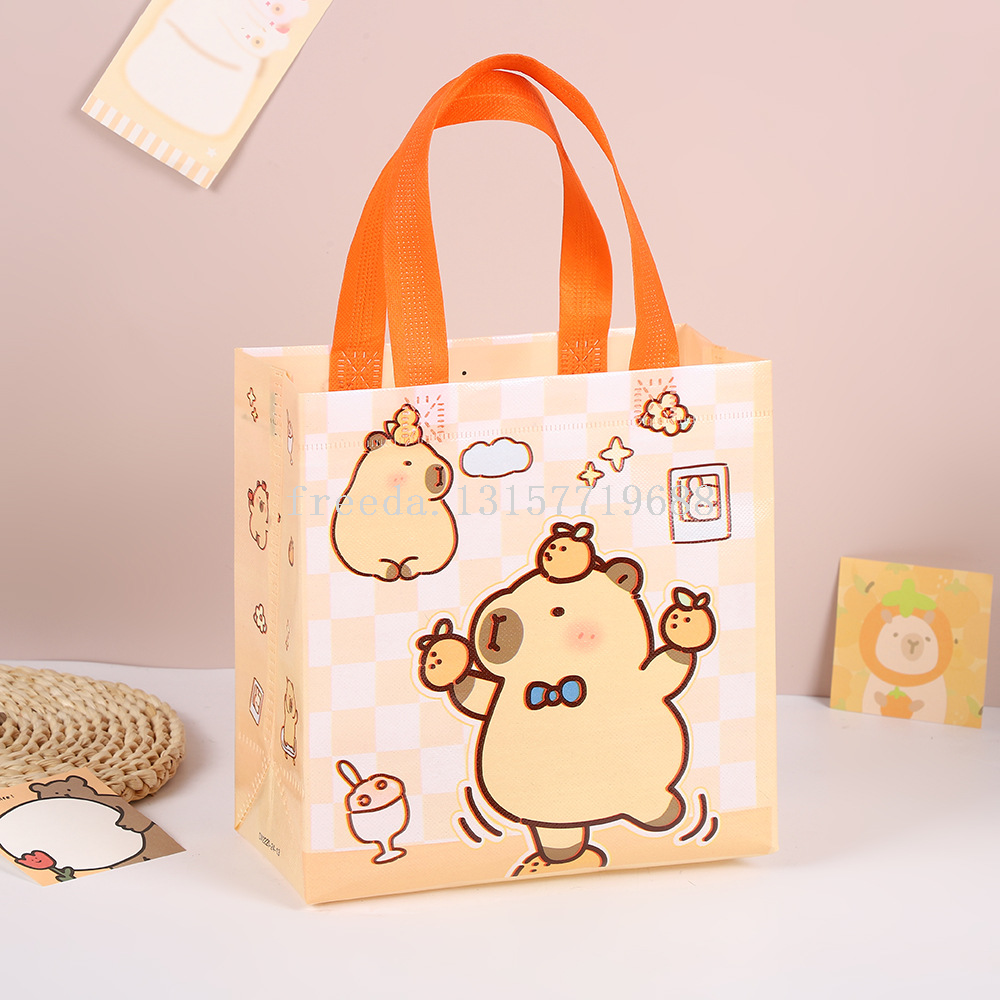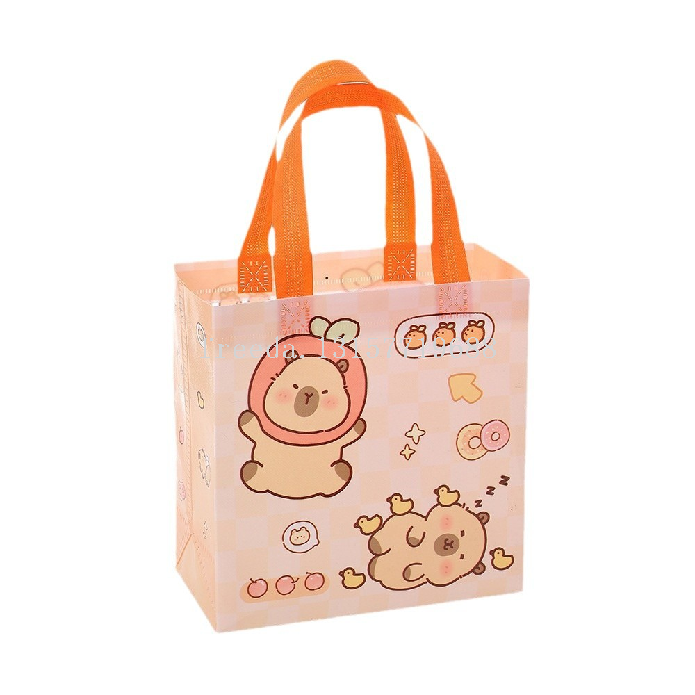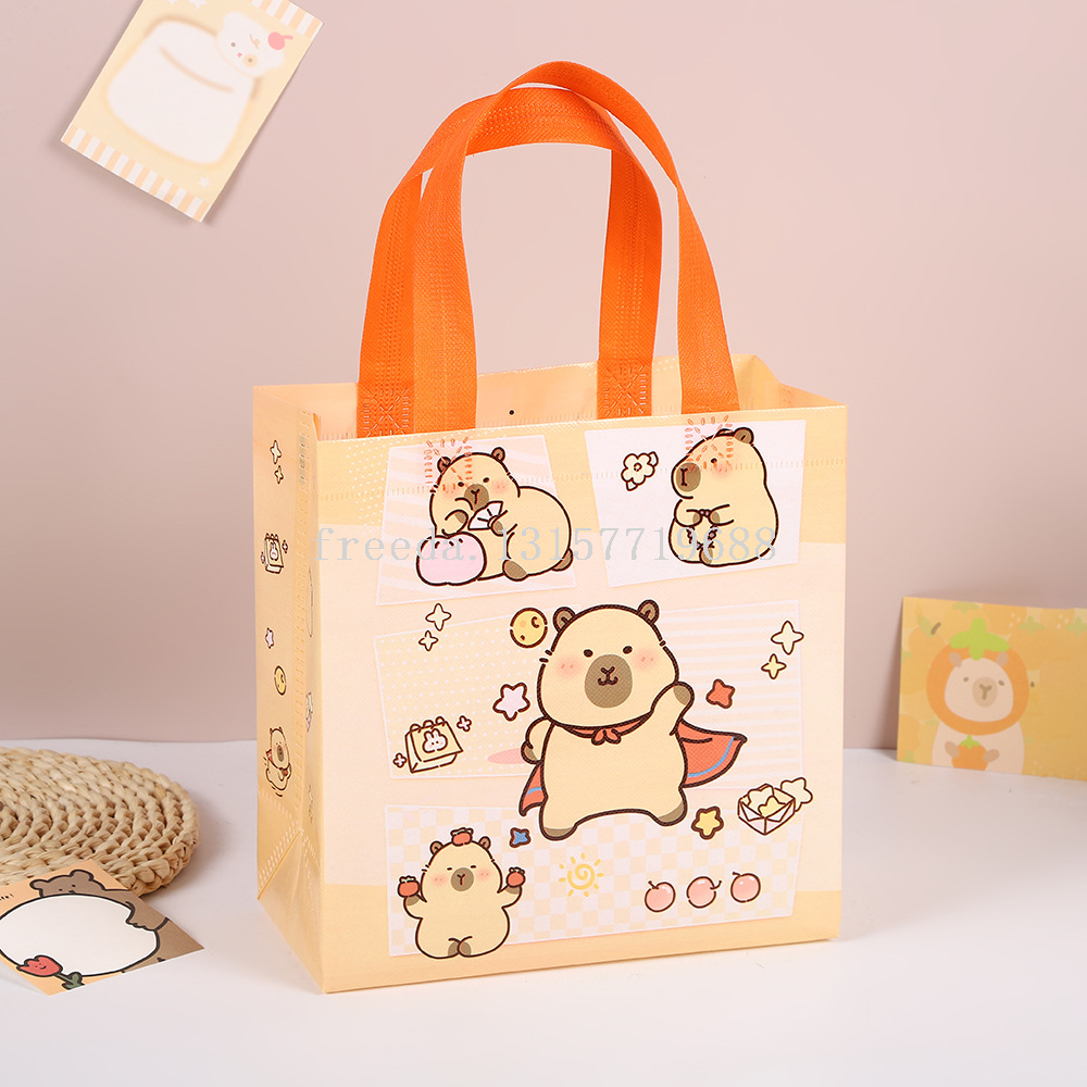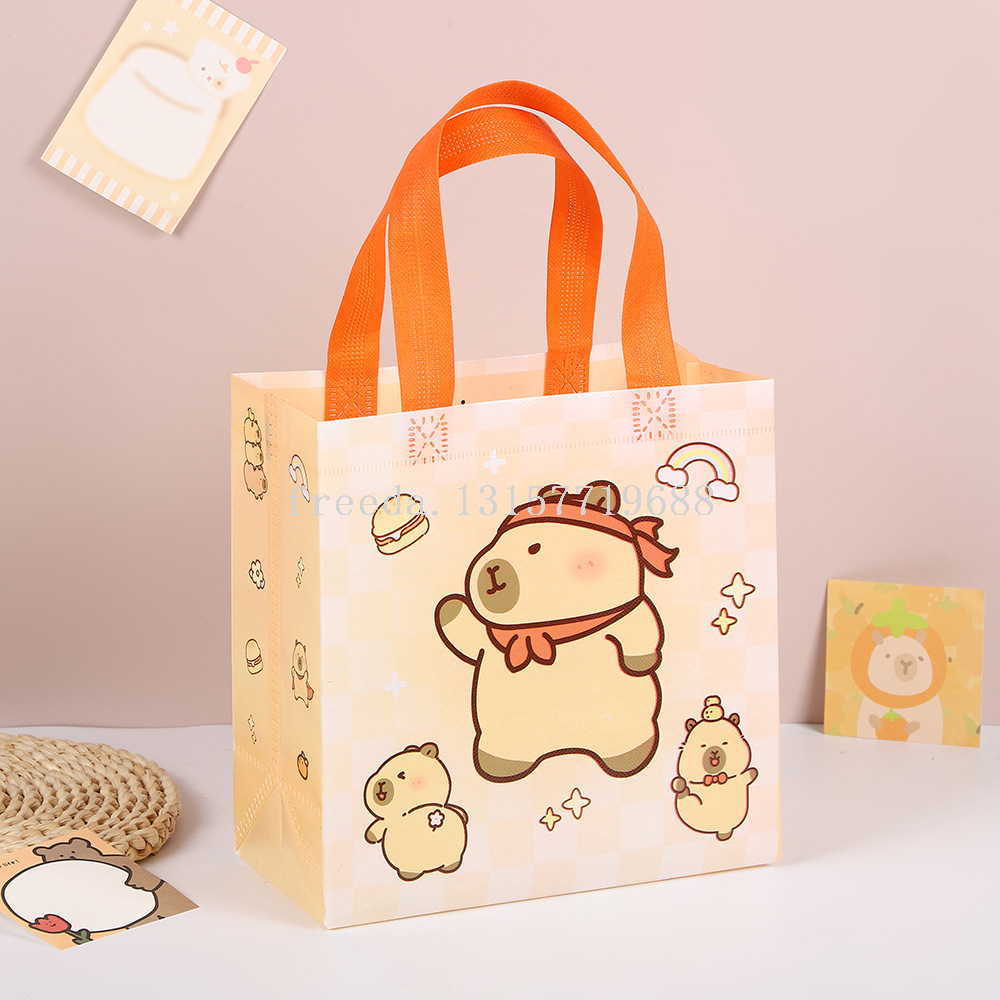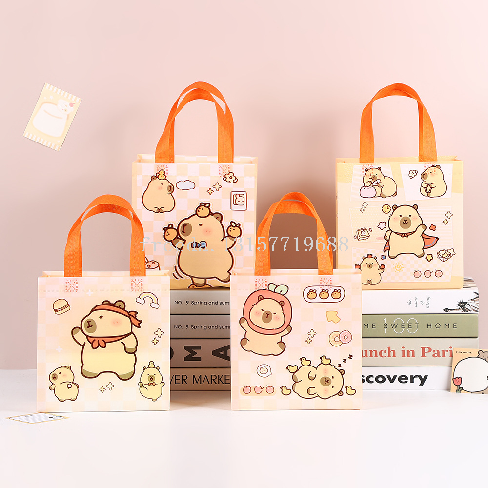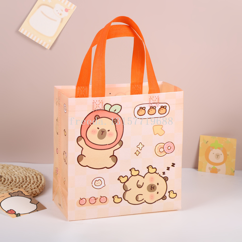 跨境新款卡皮巴拉卡通可爱无纺布袋手提儿童防水礼品包装购物袋子 English | 投诉