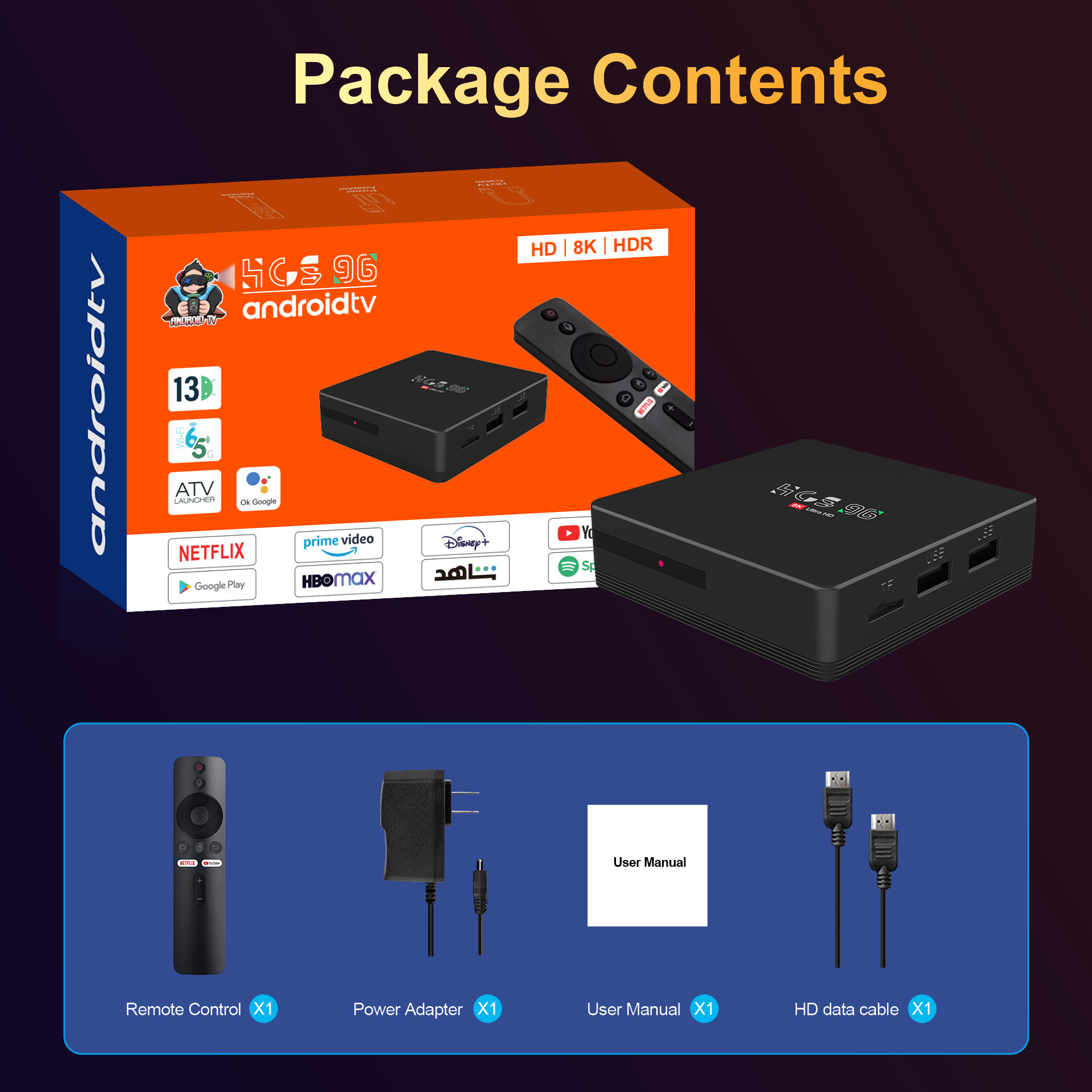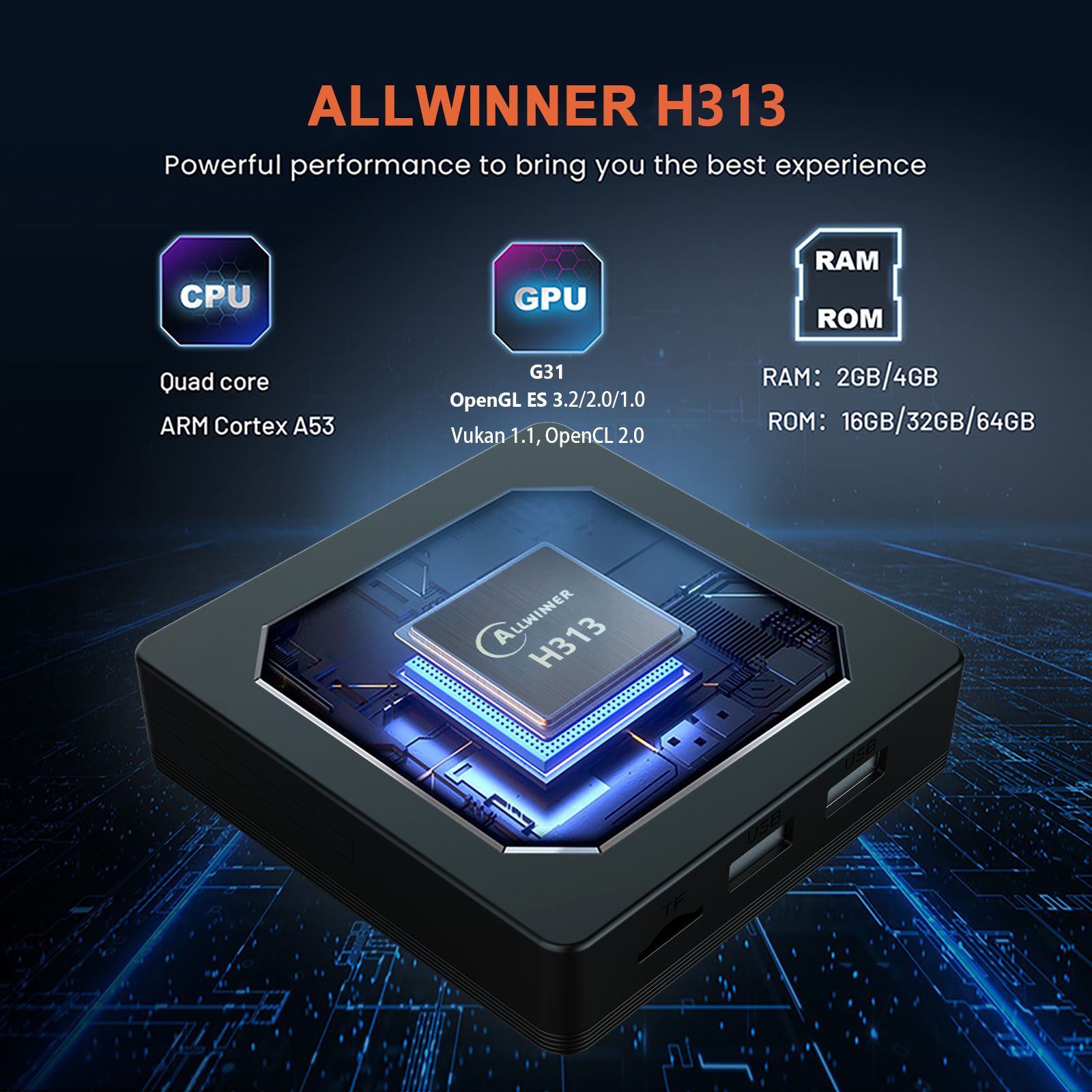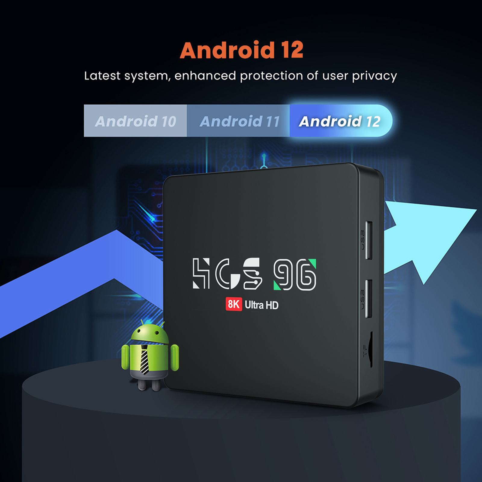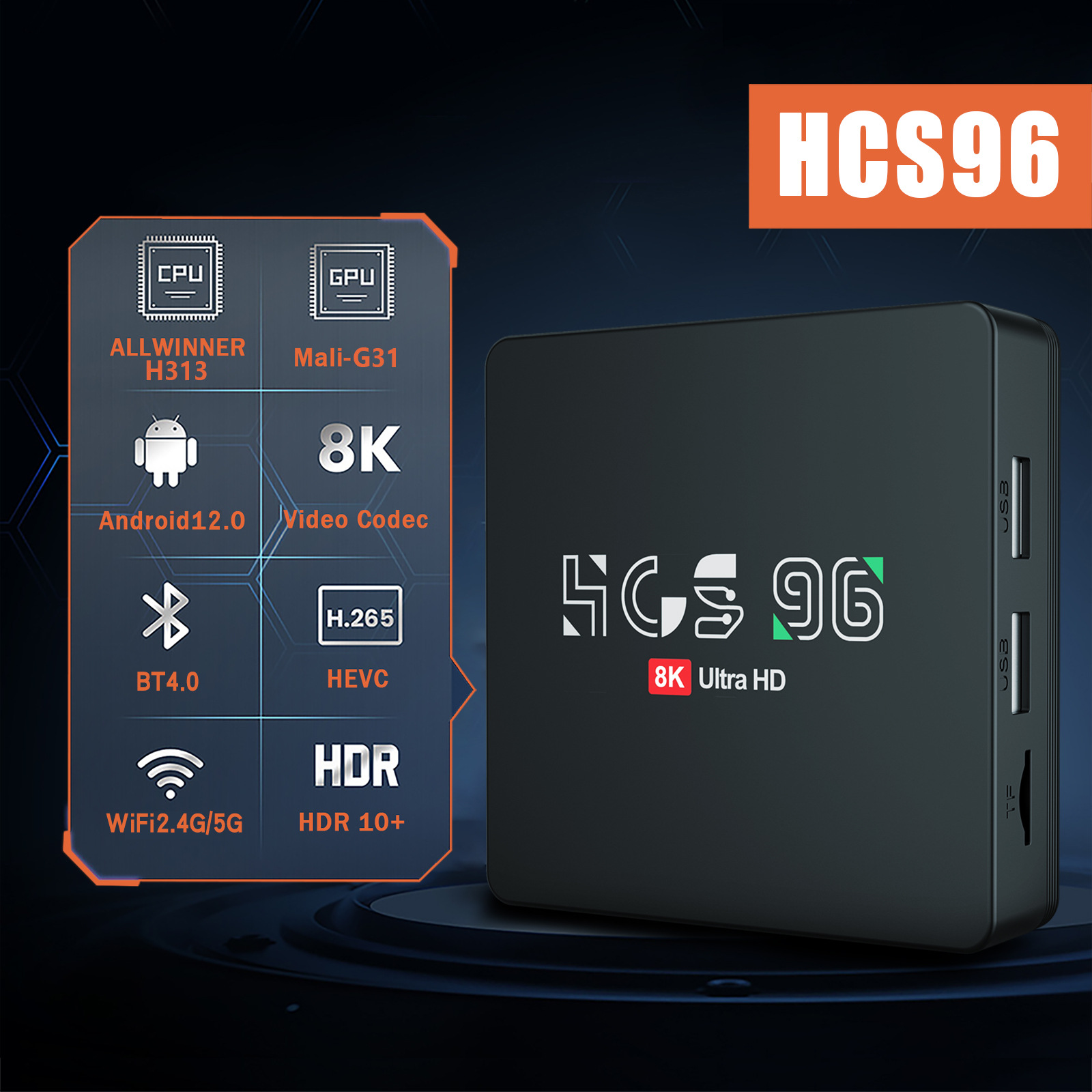 HCS96安卓网络机顶盒定制全志H313双WIFI蓝牙遥控安卓13智能TVBOX